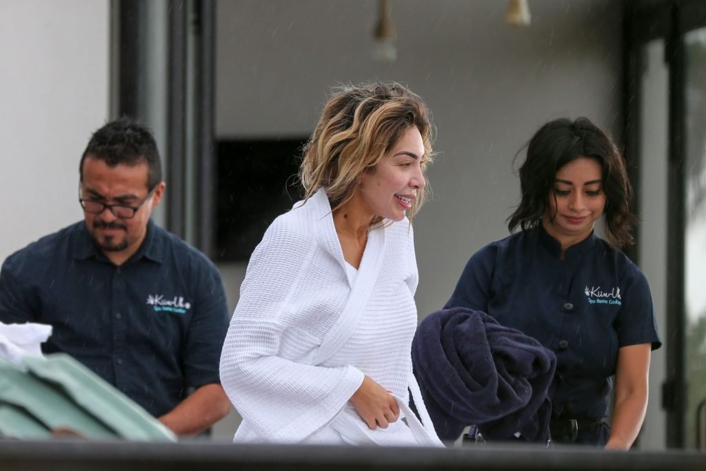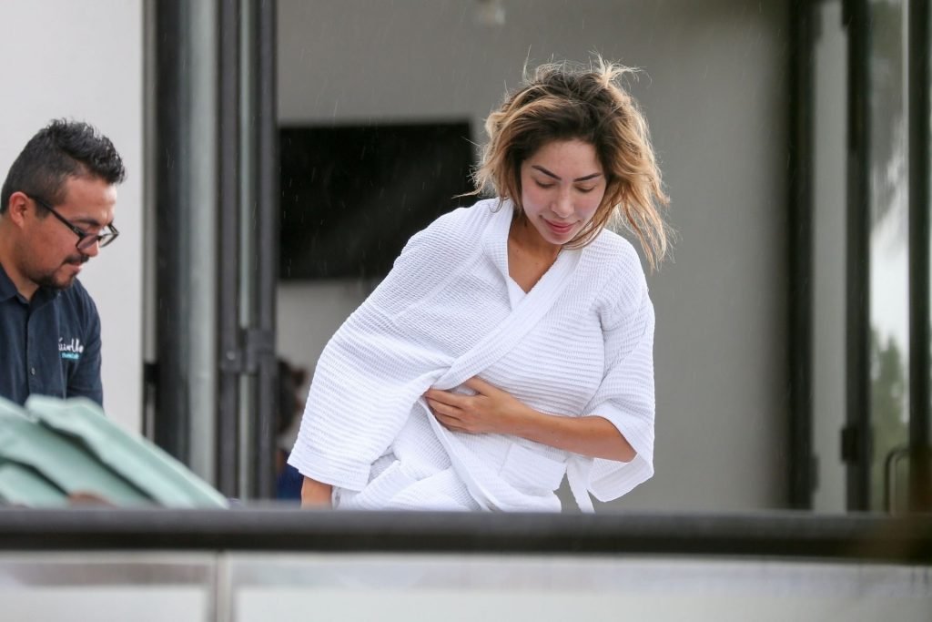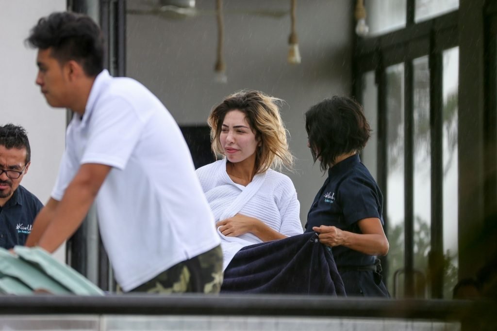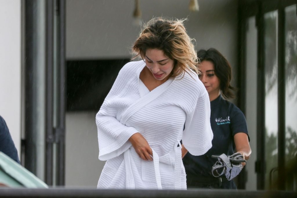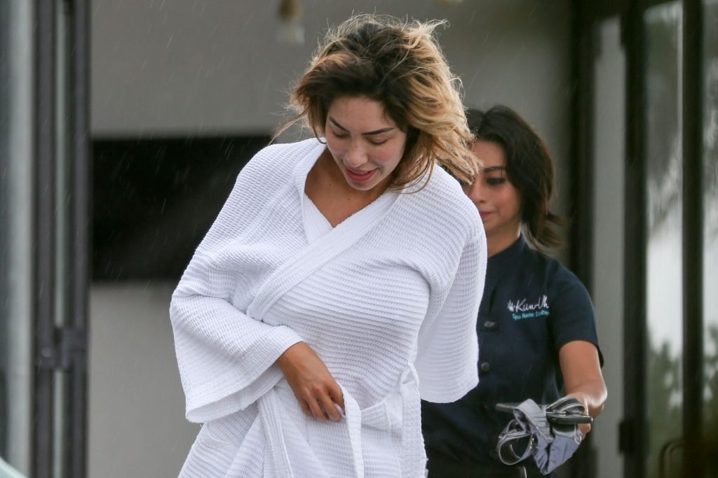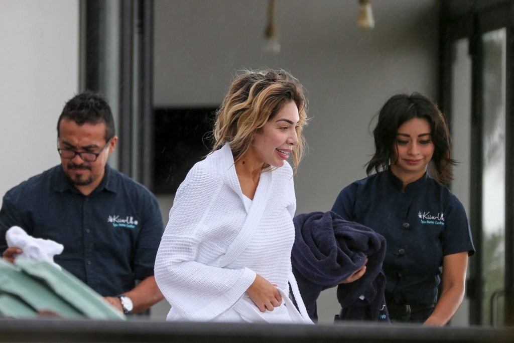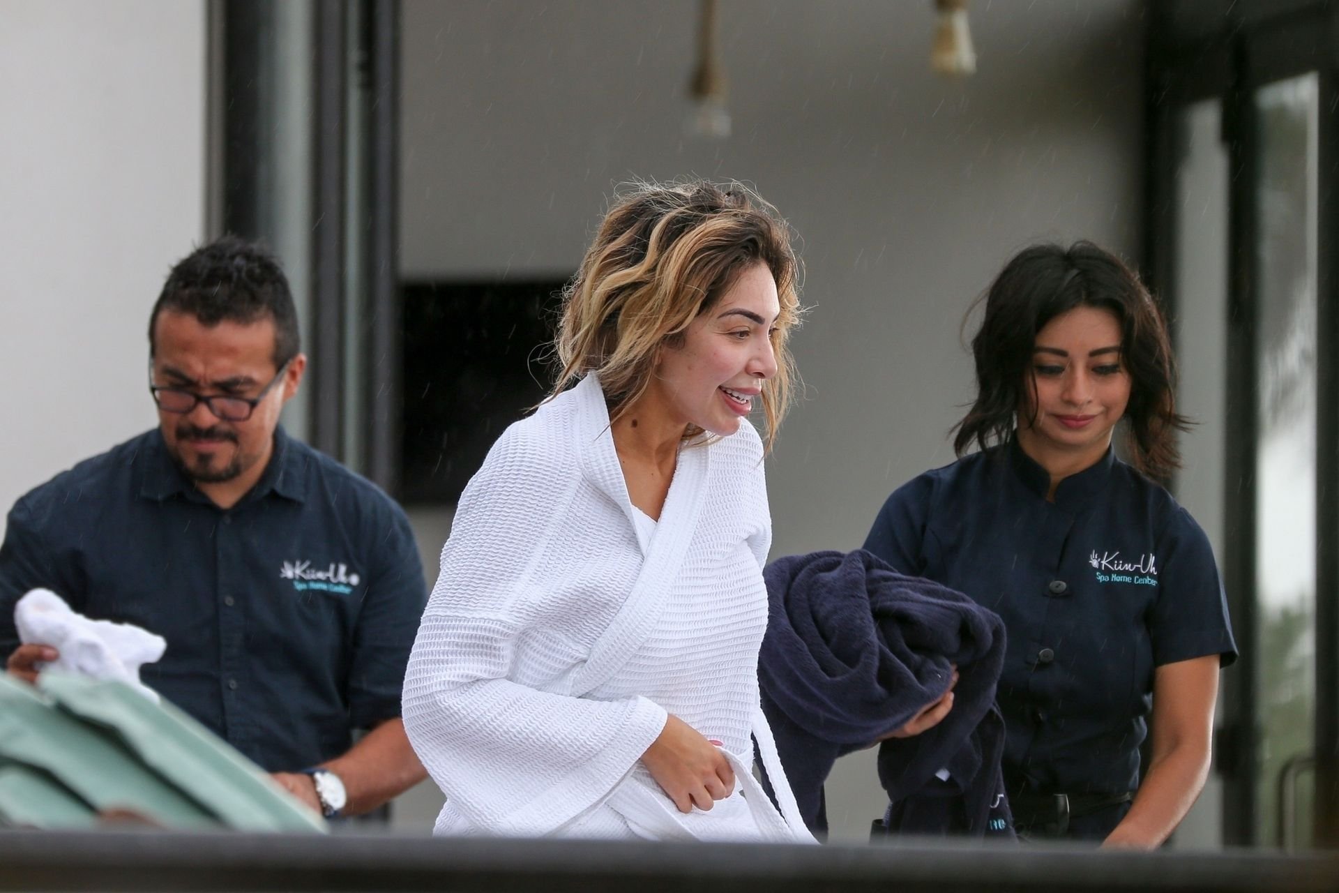 Фарра Абрахам наслаждается отдыхом в Тулуме, Мексика, вместе с подругой, 11.04.2019. Свежая звезда реалити-шоу получала массаж, когда его прервала дождь. Затем Фарра переодевается в прозрачные шорты и топ-бикини, направляясь обратно в свой отель на берегу моря.
