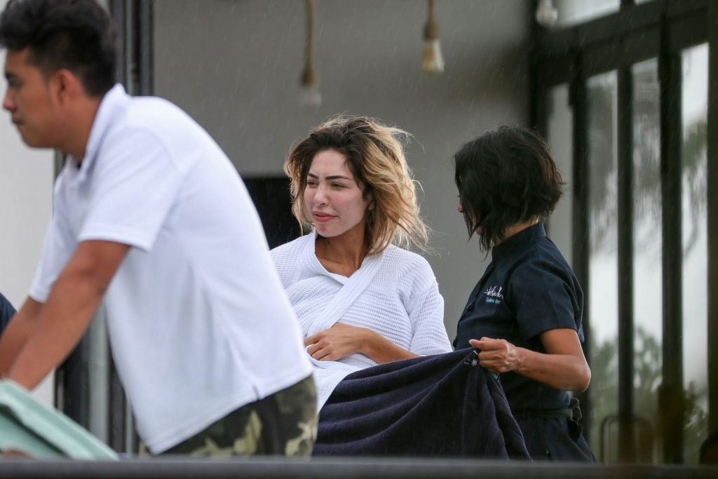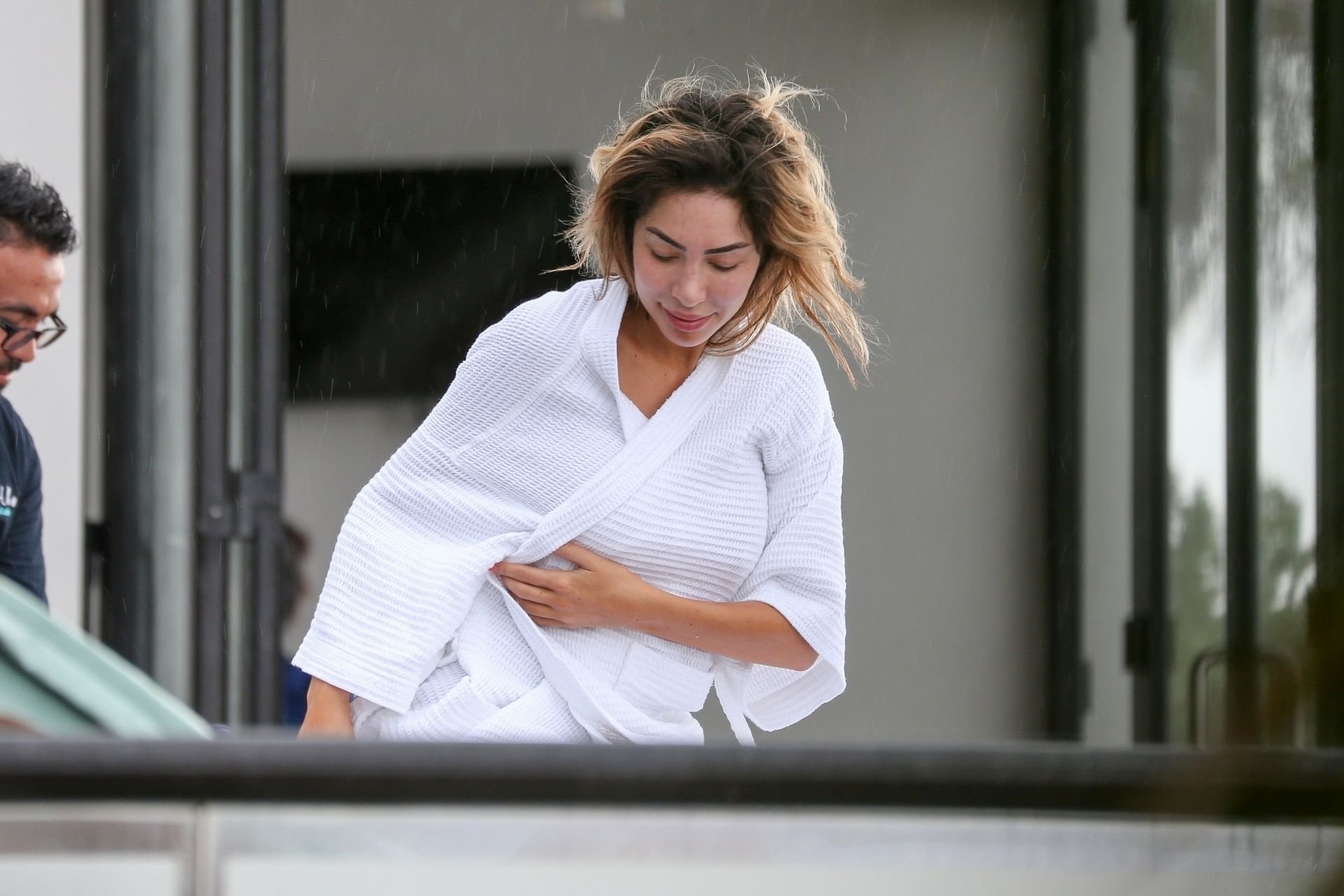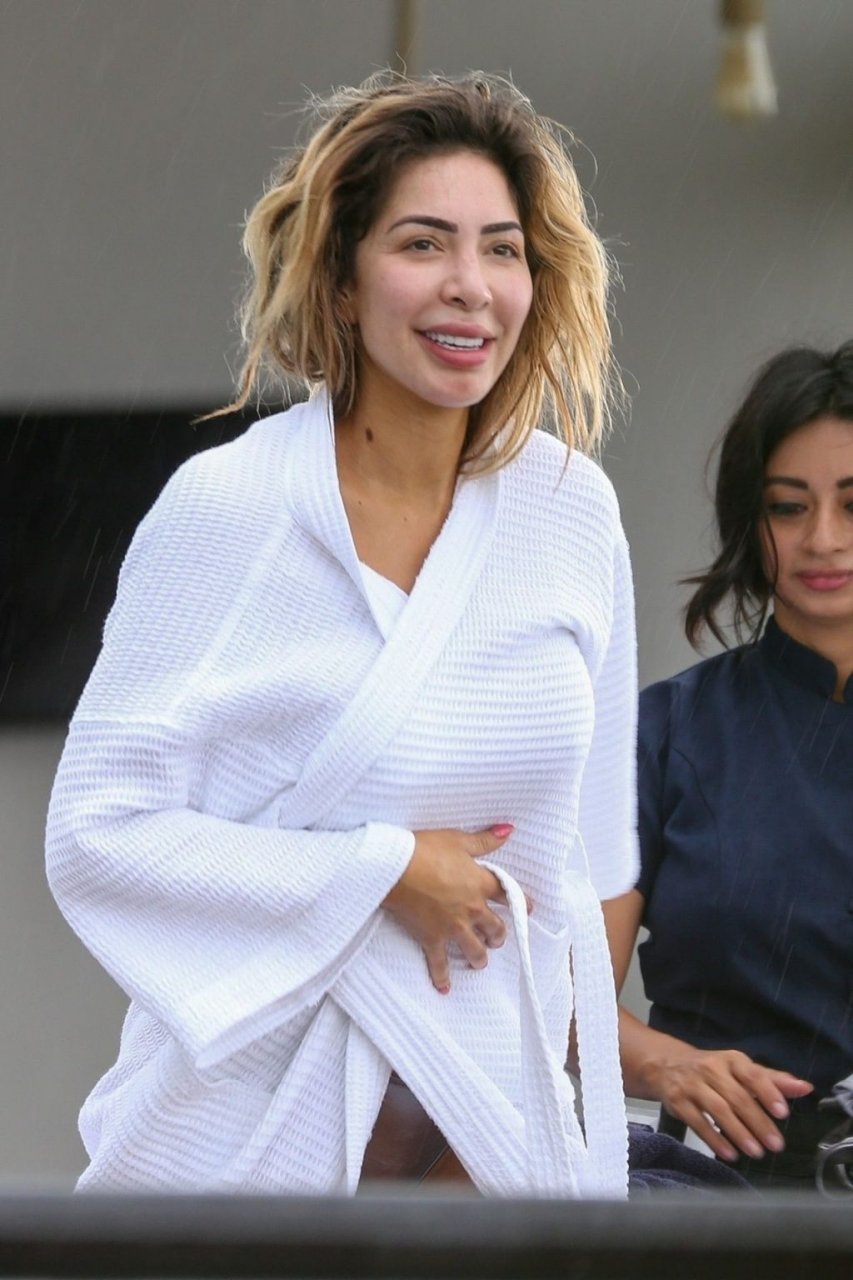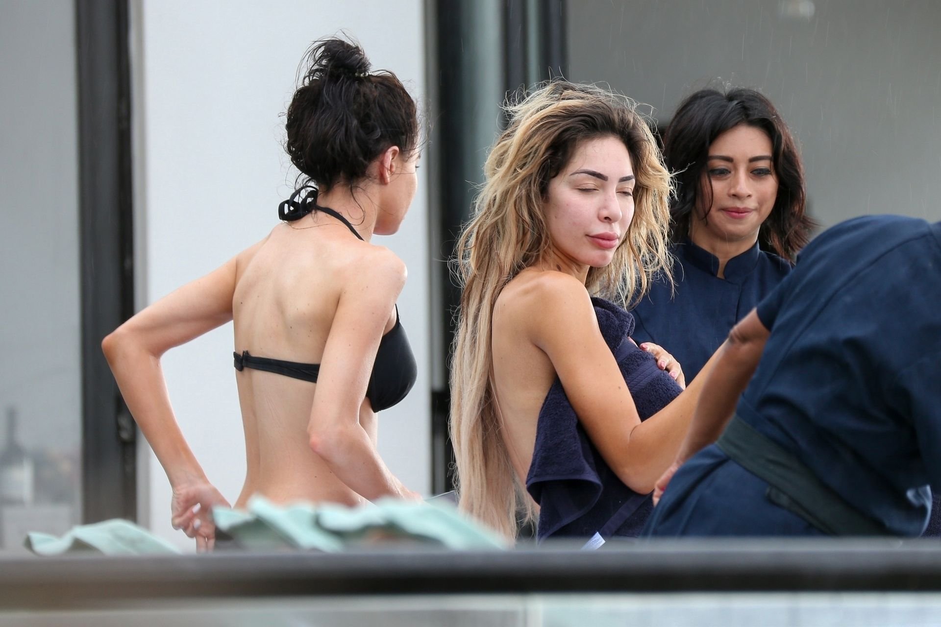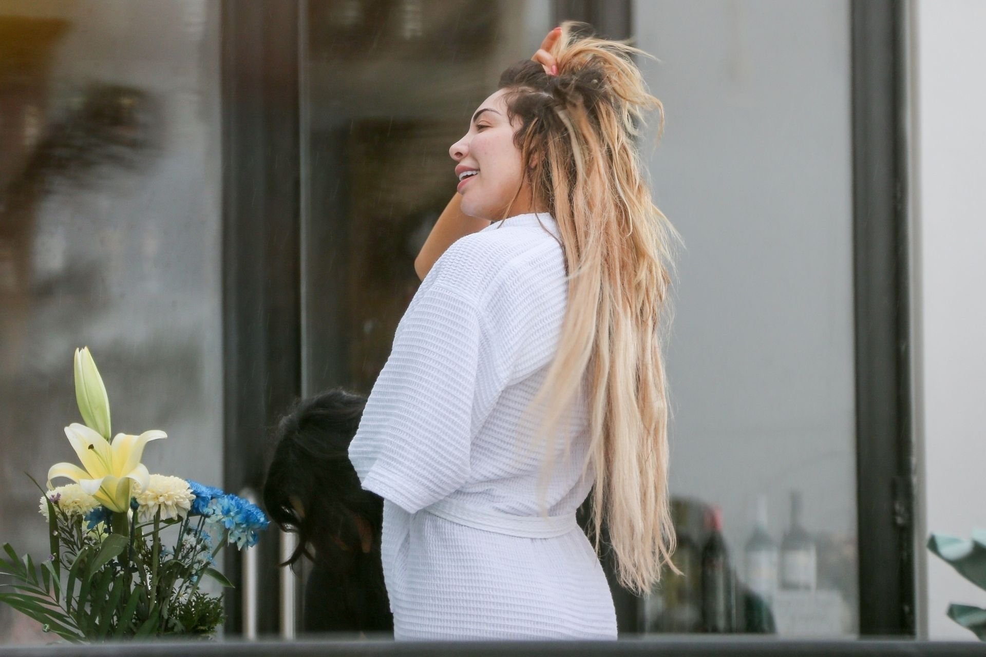 Фарра Абрахам наслаждается отдыхом в Тулуме, Мексика, вместе с подругой, 11.04.2019. Свежая звезда реалити-шоу получала массаж, когда его прервала дождь. Затем Фарра переодевается в прозрачные шорты и топ-бикини, направляясь обратно в свой отель на берегу моря.