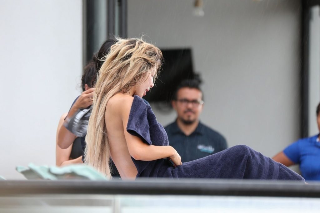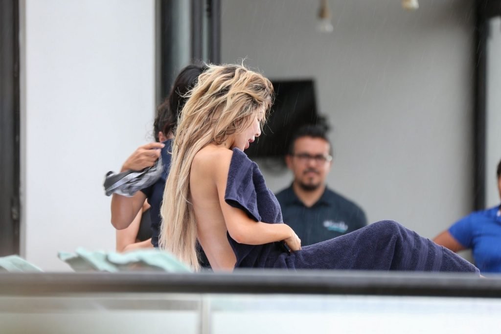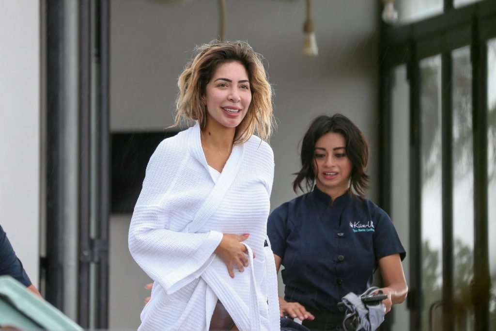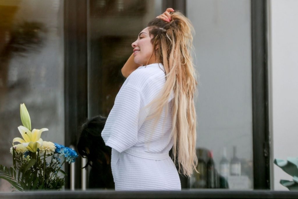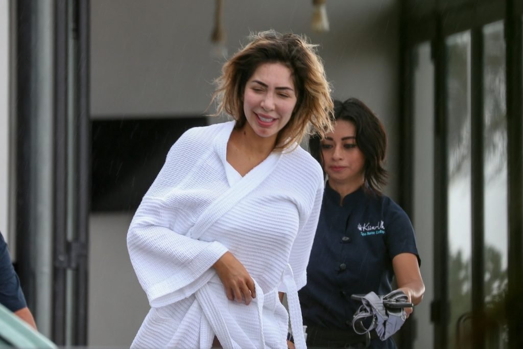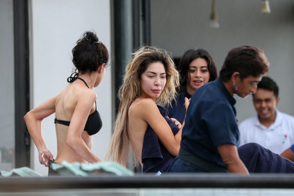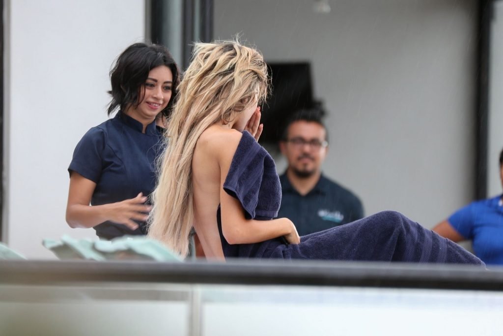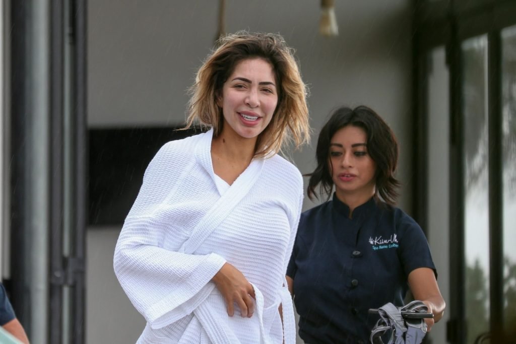 Фарра Абрахам наслаждается отдыхом в Тулуме, Мексика, вместе с подругой, 11.04.2019. Свежая звезда реалити-шоу получала массаж, когда его прервала дождь. Затем Фарра переодевается в прозрачные шорты и топ-бикини, направляясь обратно в свой отель на берегу моря.