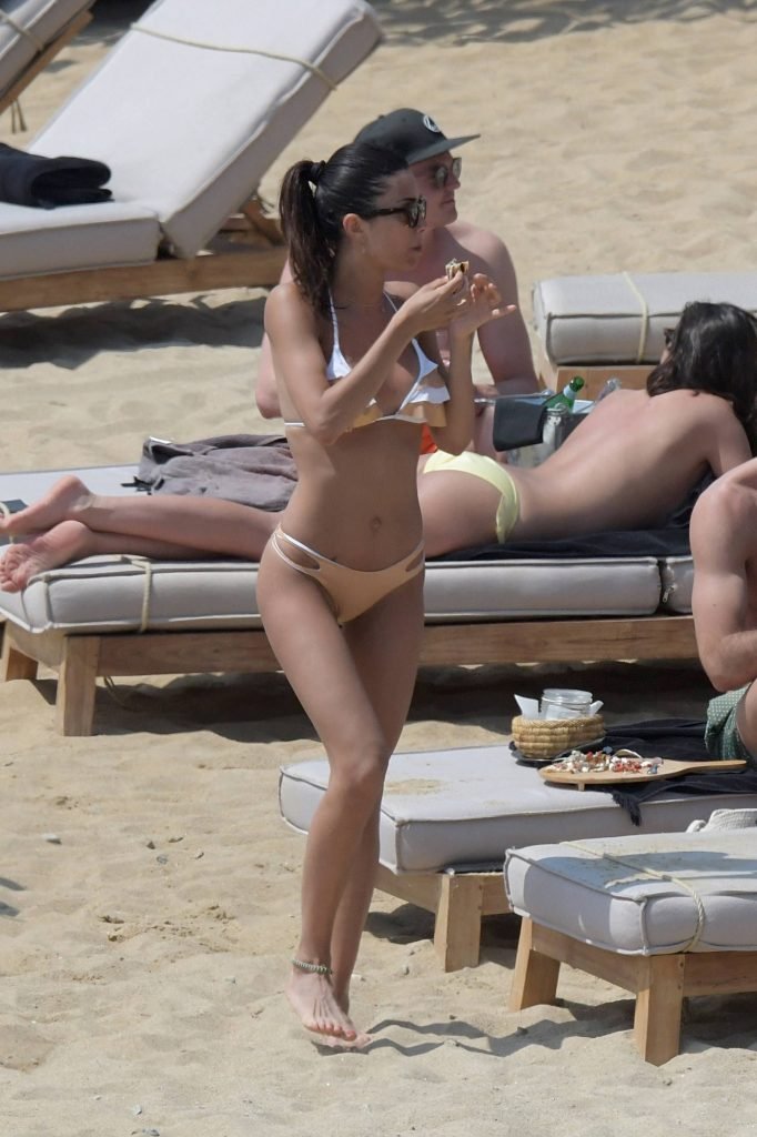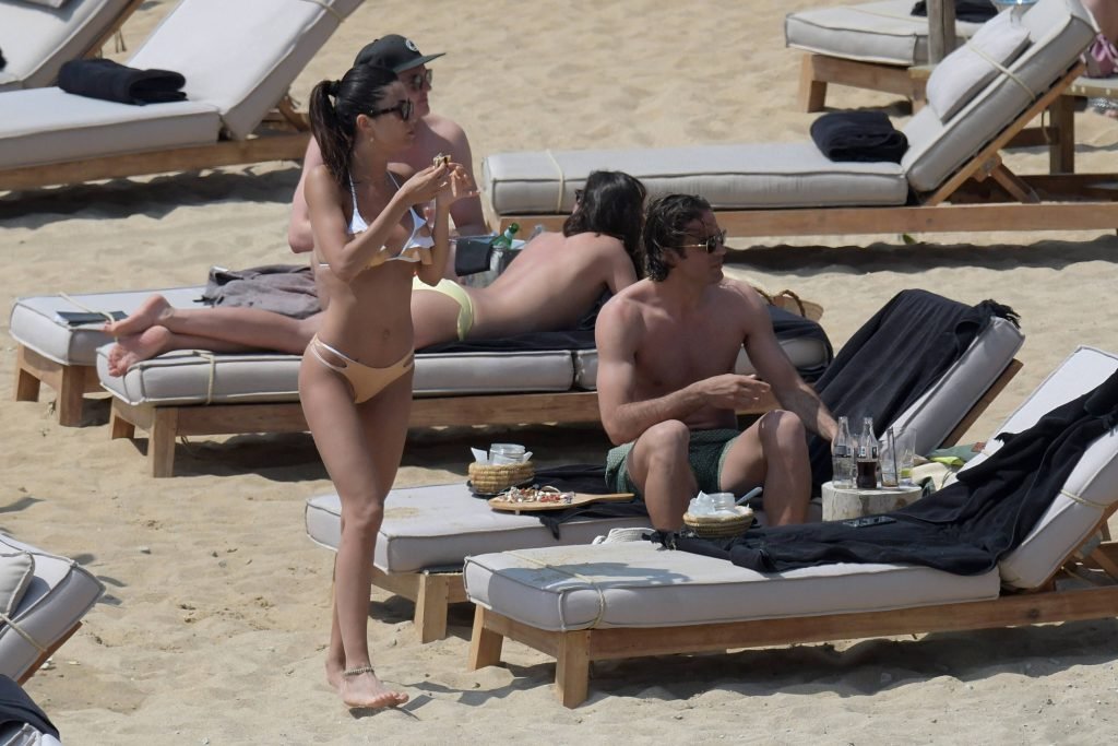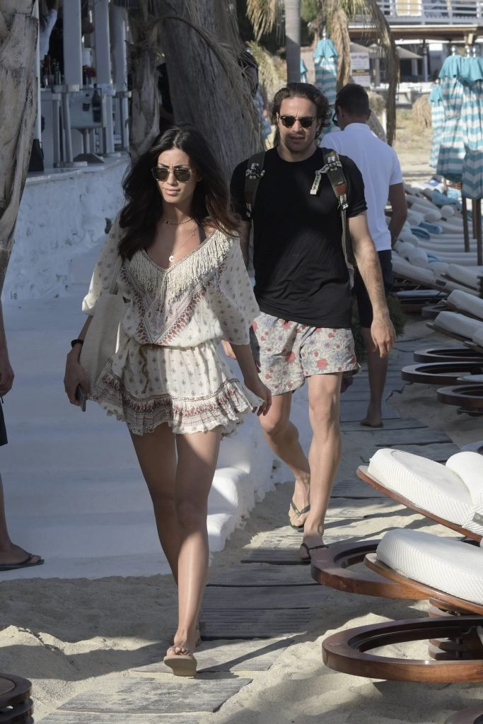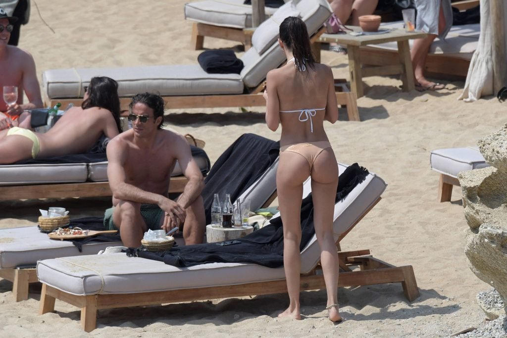 Federica Nargi демонстрирует свое невероятное тело в крошечном нюдовом и белом бикини, наслаждаясь отпуском с Алессандро Мартри на греческом острове Скорпиос, 27.05.2018.