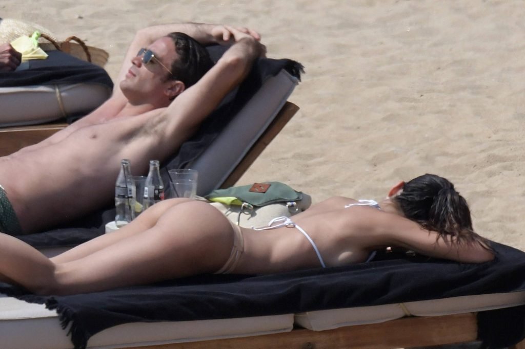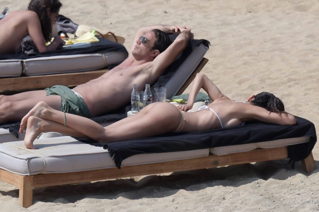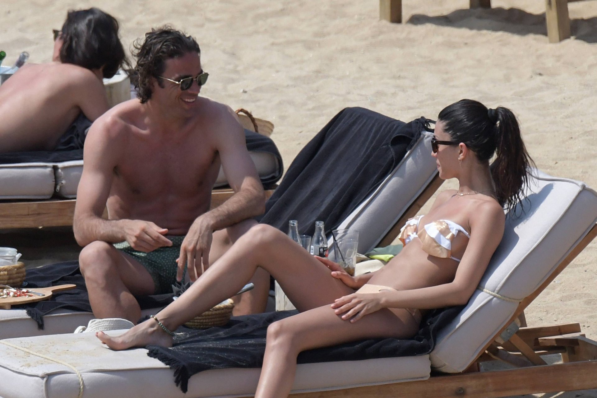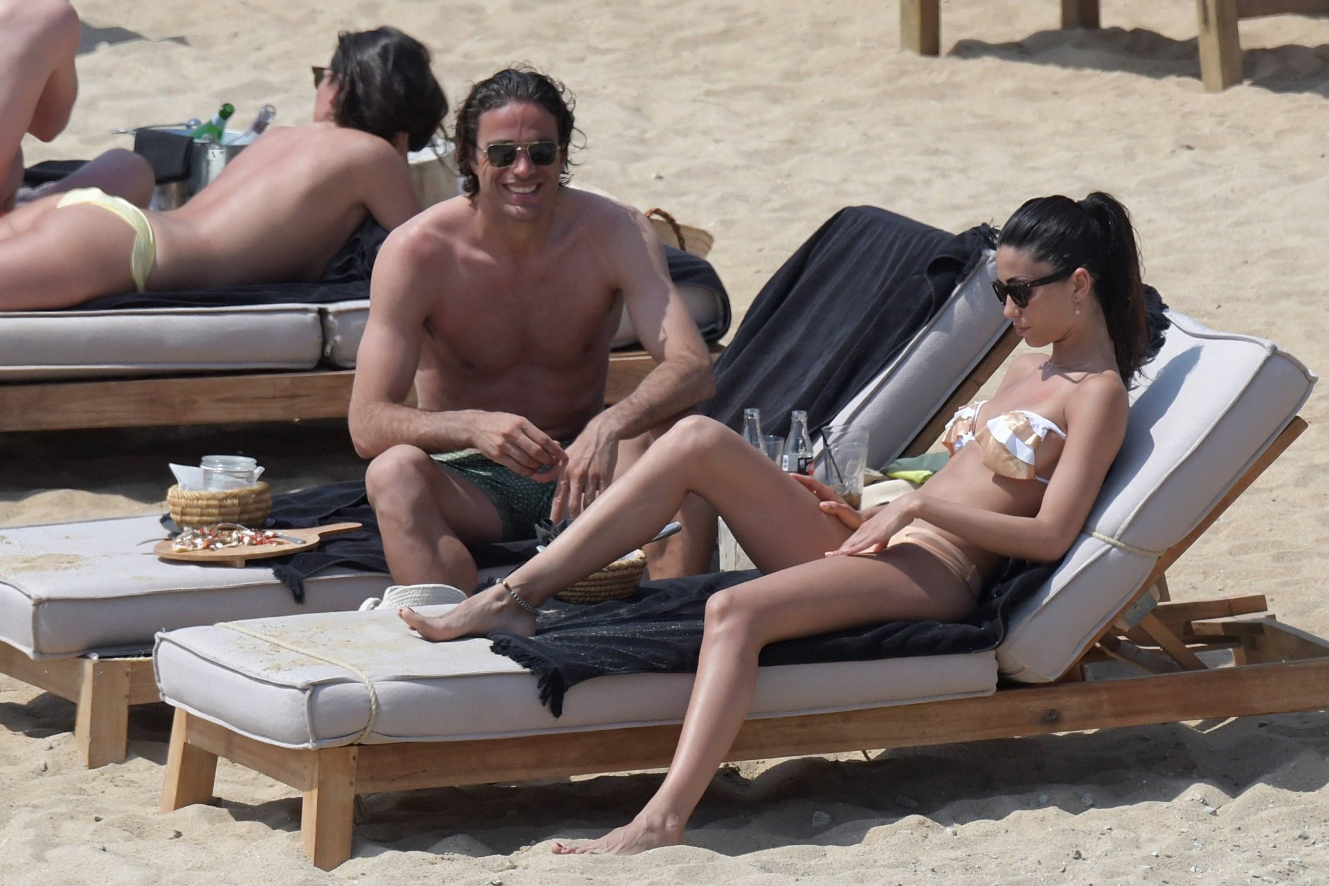 Federica Nargi демонстрирует свое невероятное тело в крошечном нюдовом и белом бикини, наслаждаясь отпуском с Алессандро Мартри на греческом острове Скорпиос, 27.05.2018.