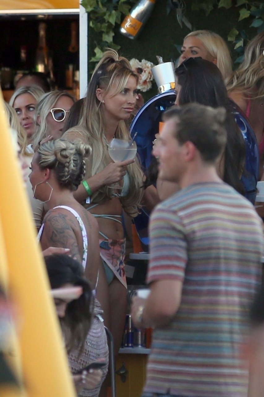Английская модель, телеведущая и ведущая Ферн МакКанн и Даниэль Армстронг готовятся к вечеринке во время отпуска на Ибице, 16.08.2019.