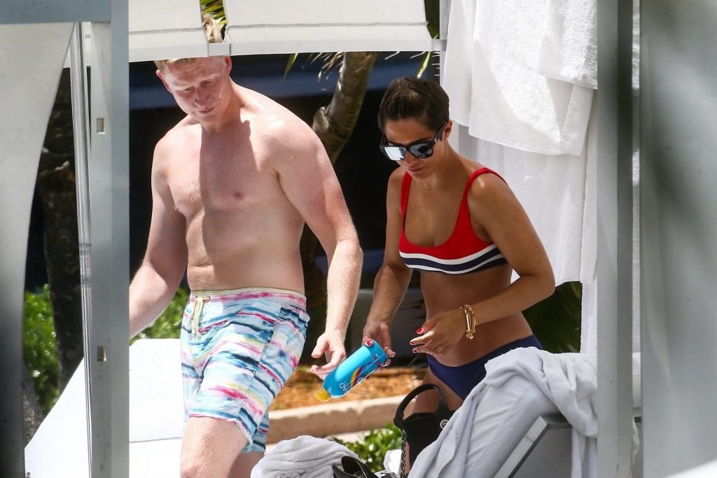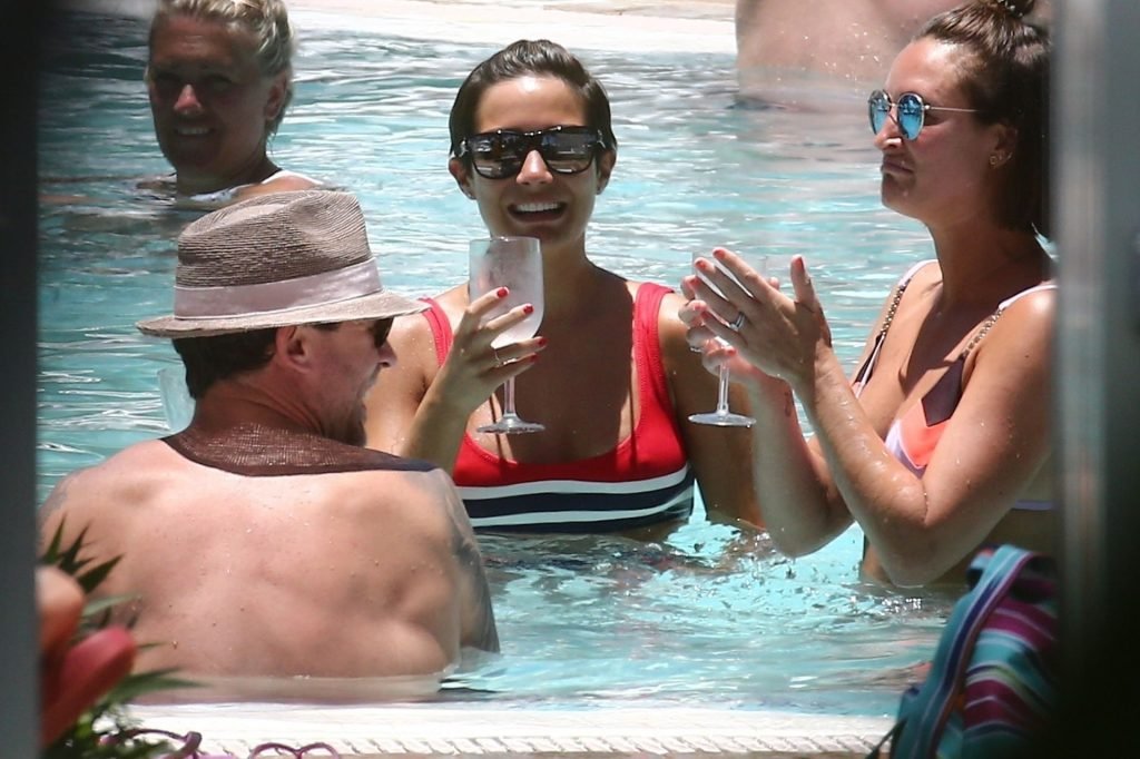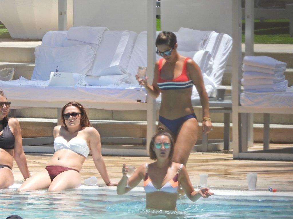 Уэйн Бридж, его жена Фрэнки Бридж, сестра и её муж наслаждаются роскошной вечеринкой у бассейна в честь 30-летия Уэйна в Майами, 19.05.2019.