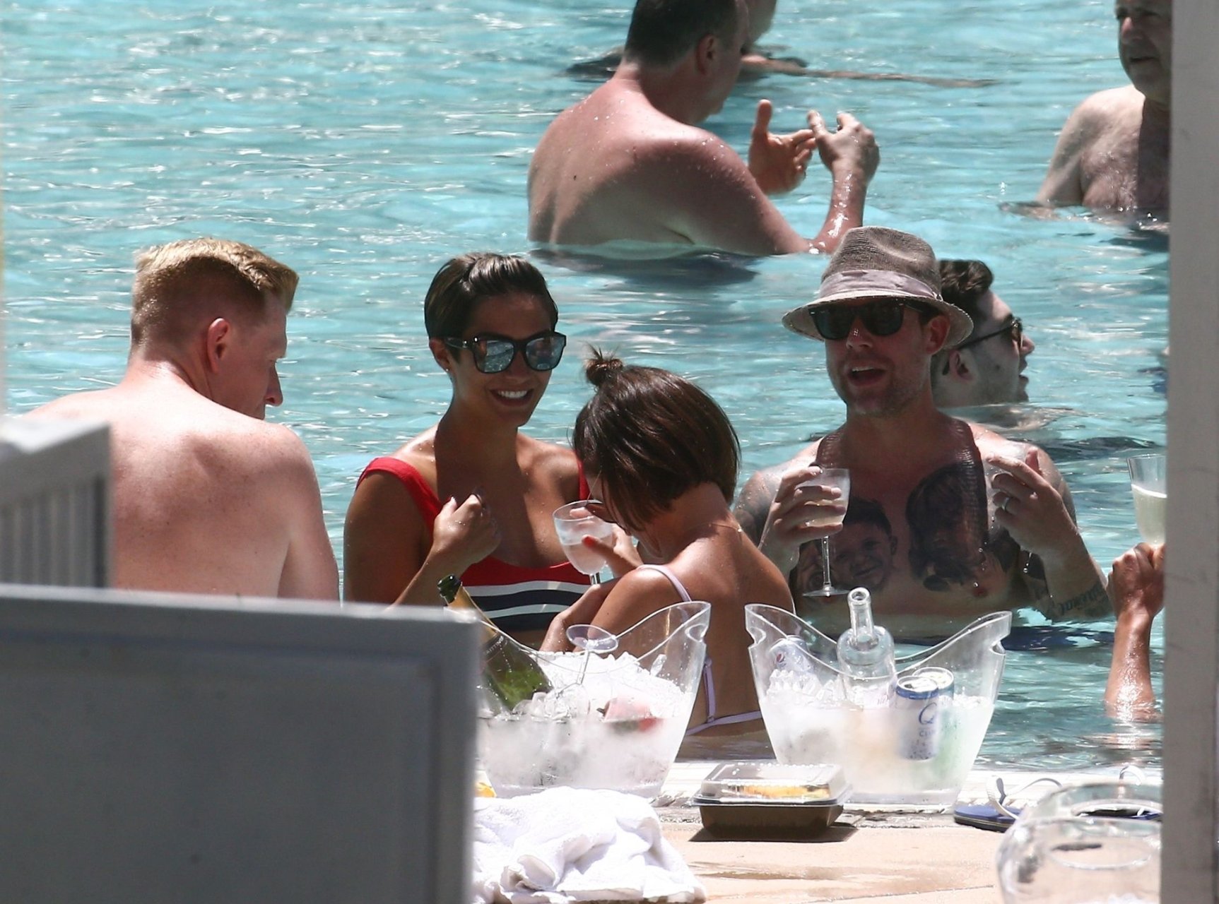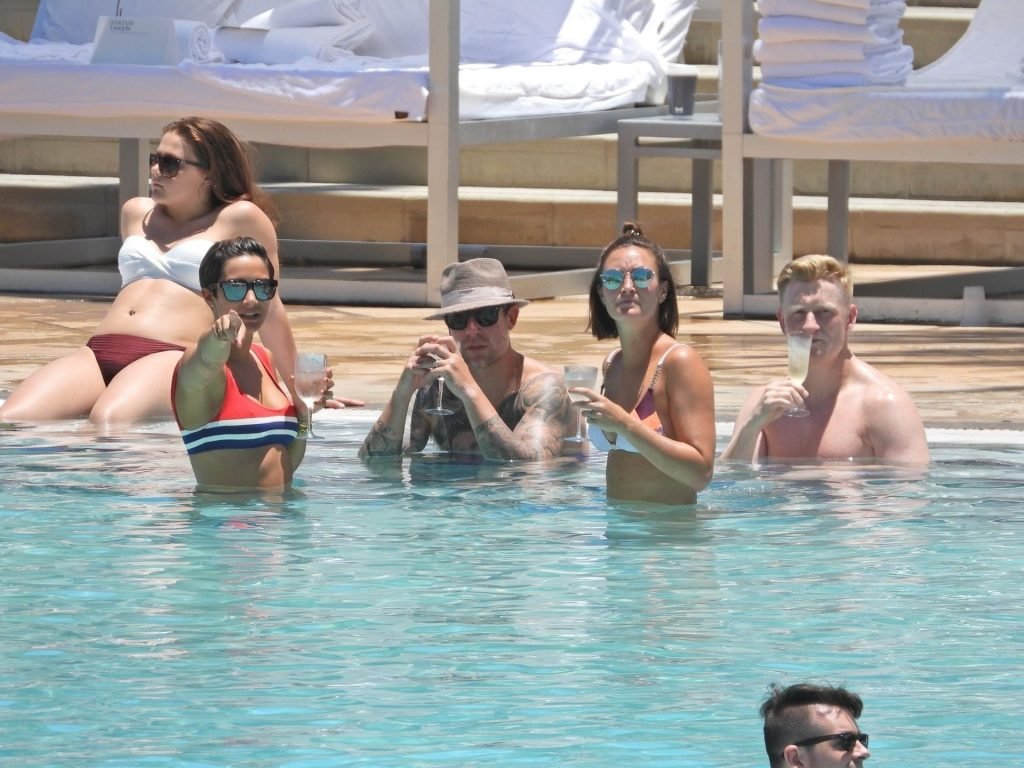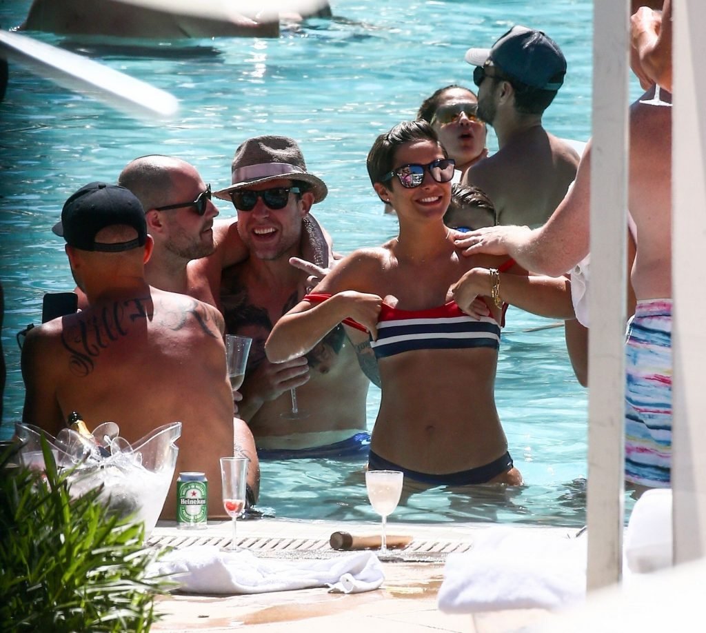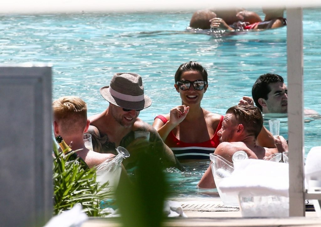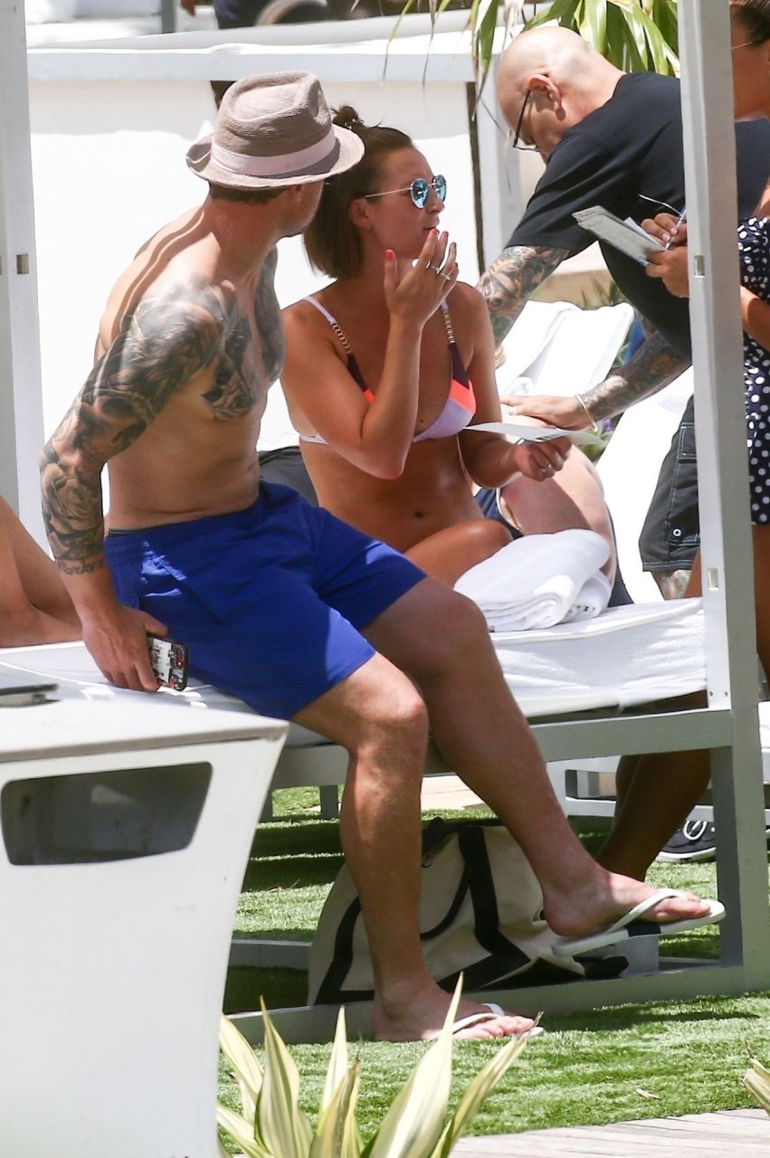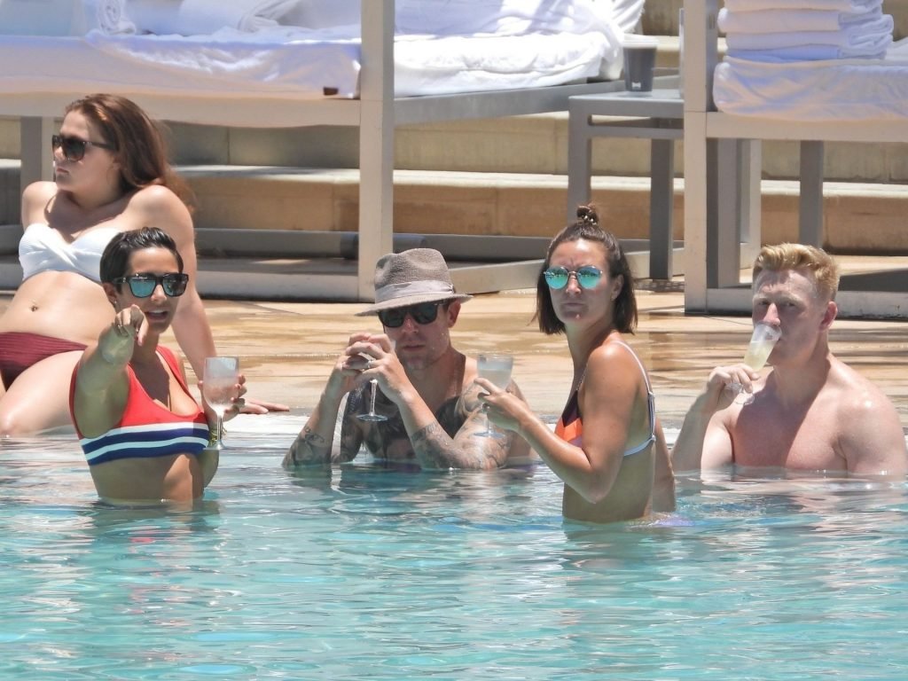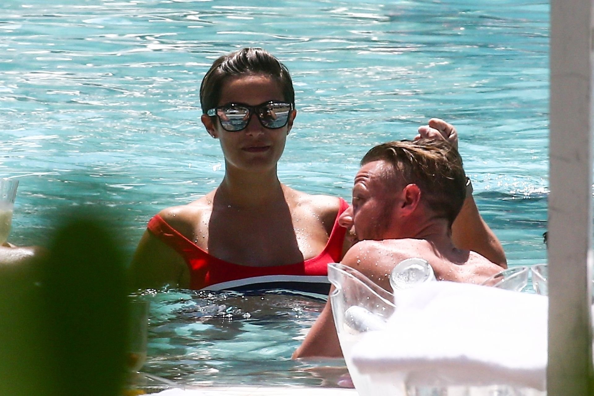 Пара демонстрировала свои фигуры: Фрэнки в красно-синем бикини и очках Chanel, а Уэйн без рубашки, показывая свои новые татуировки. После нескольких часов питья шампанского, вина и сангрии у бассейна с сестрой Фрэнки Викторией и её мужем, группа подружилась с британскими футбольными фанатами, где начались новые возлияния, и Уэйн стал вести себя шумно.