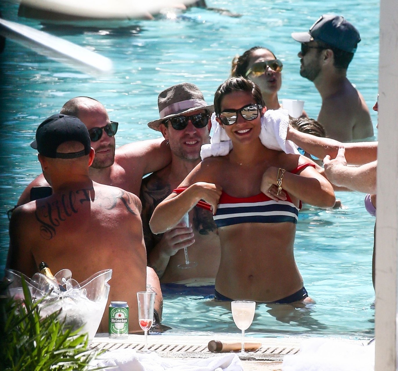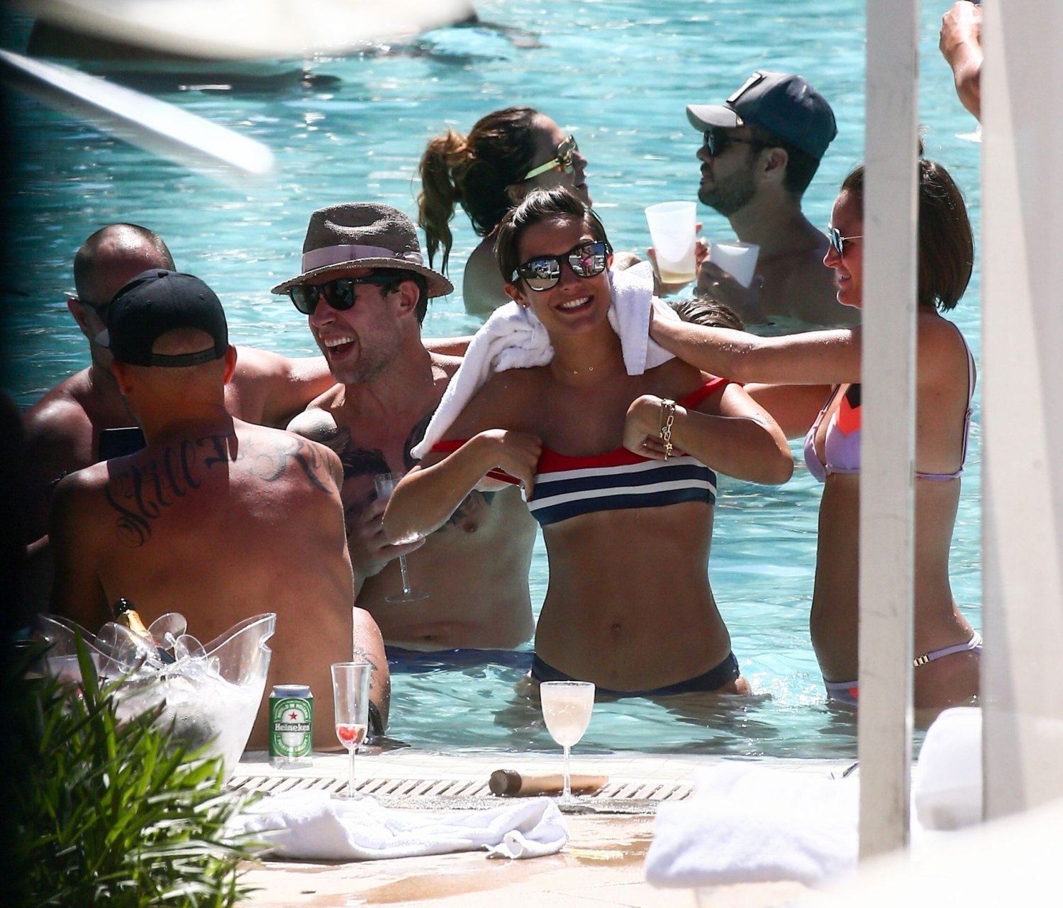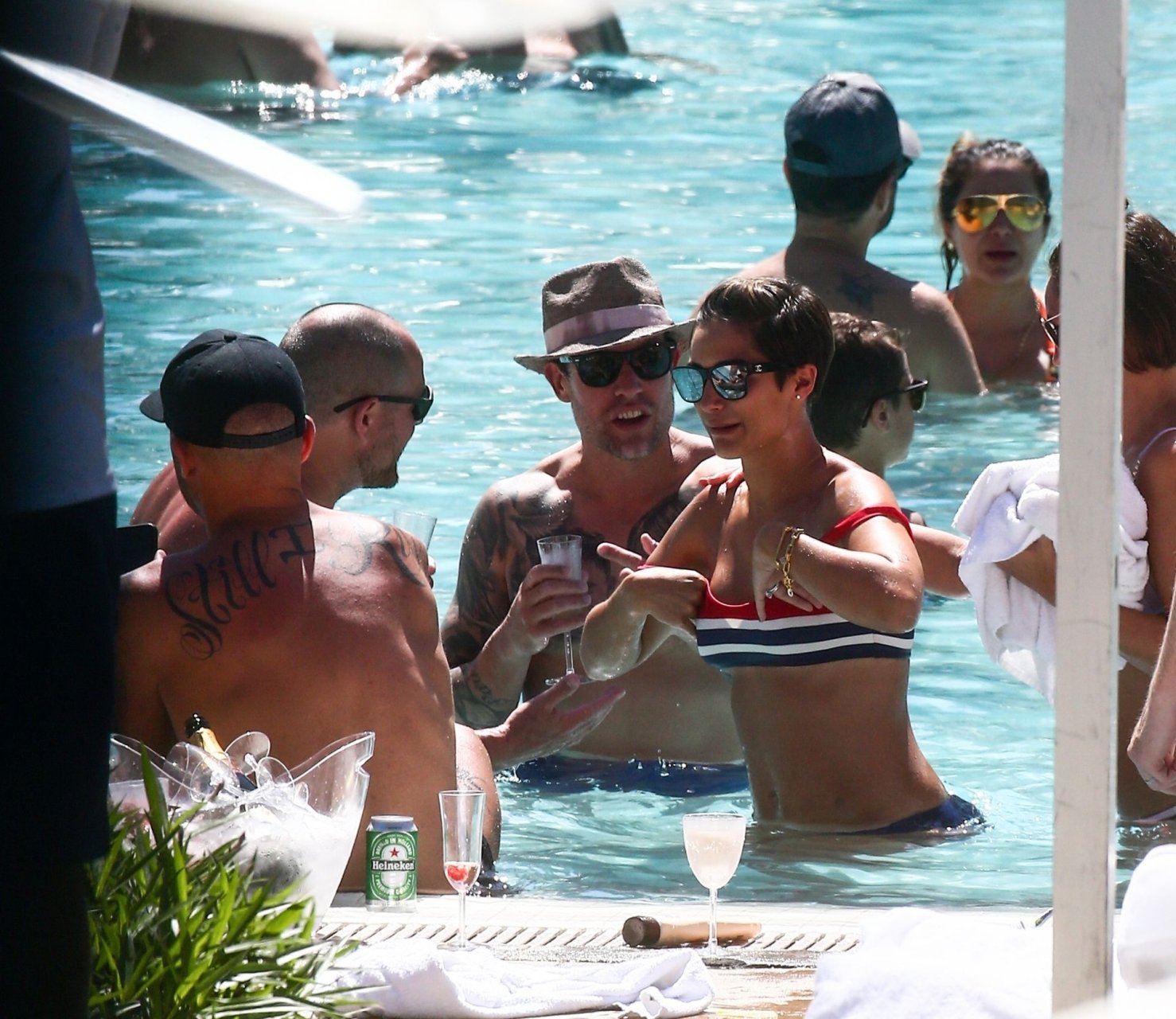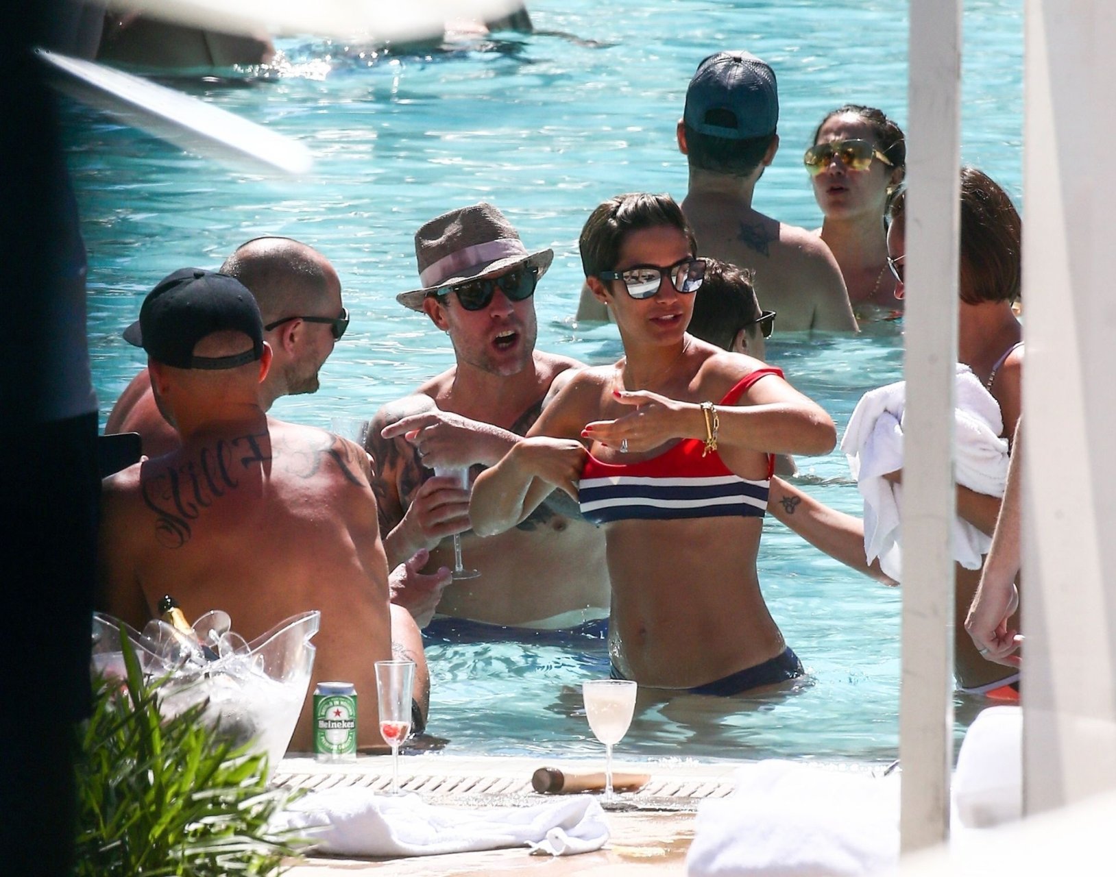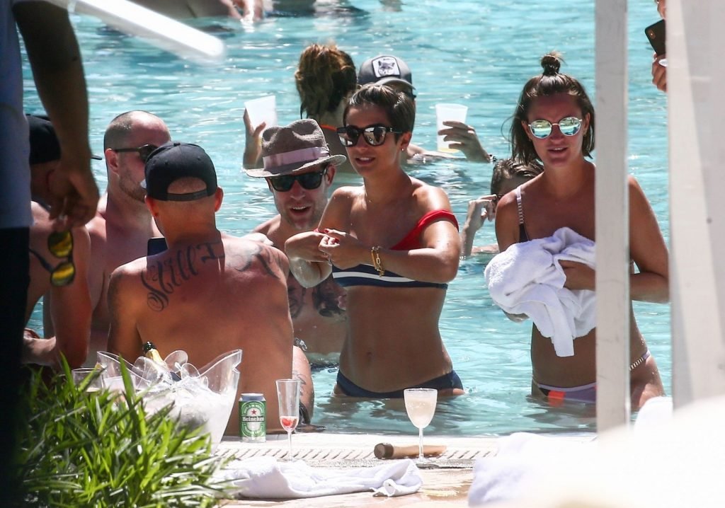 Пара демонстрировала свои фигуры: Фрэнки в красно-синем бикини и очках Chanel, а Уэйн без рубашки, показывая свои новые татуировки. После нескольких часов питья шампанского, вина и сангрии у бассейна с сестрой Фрэнки Викторией и её мужем, группа подружилась с британскими футбольными фанатами, где начались новые возлияния, и Уэйн стал вести себя шумно.
