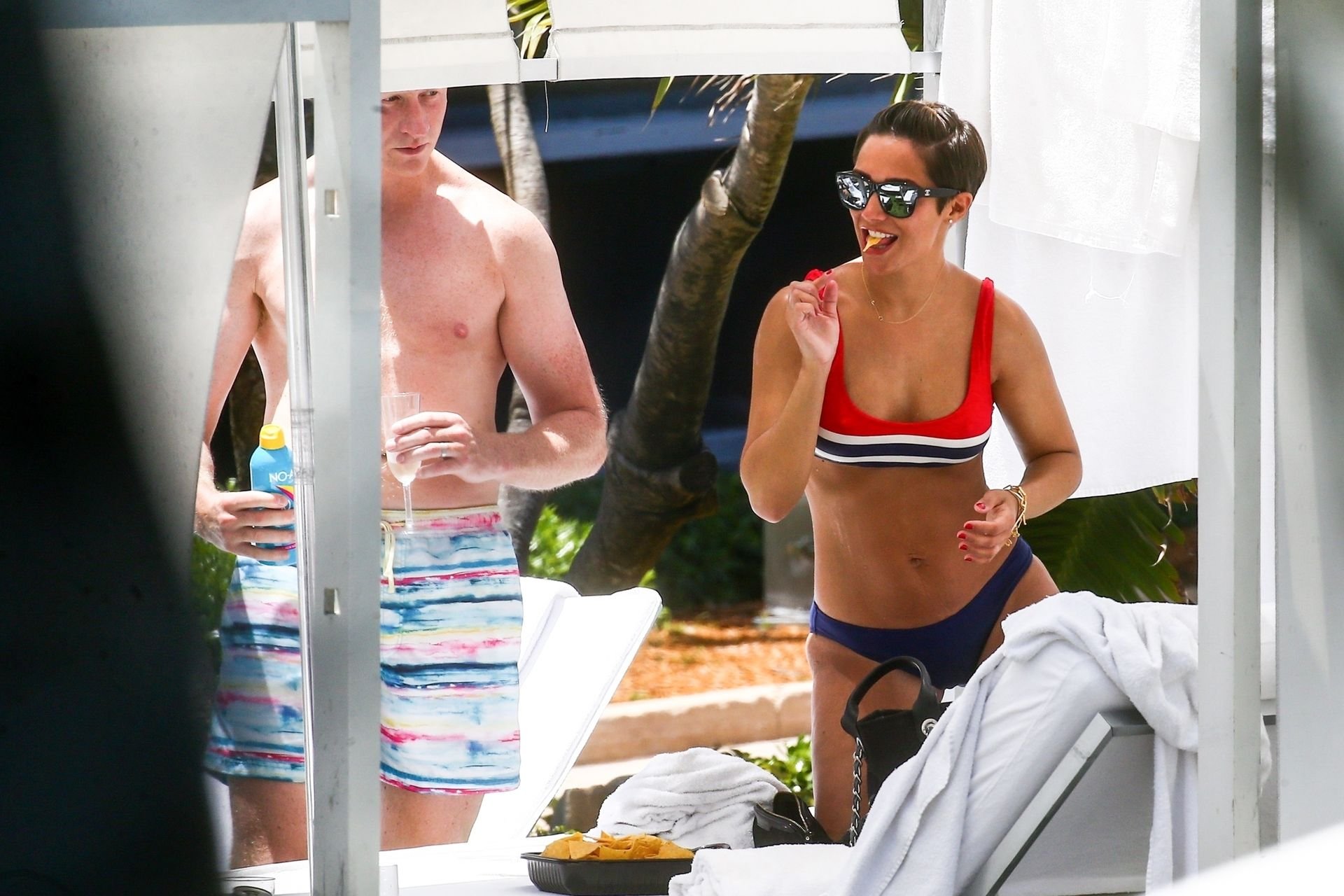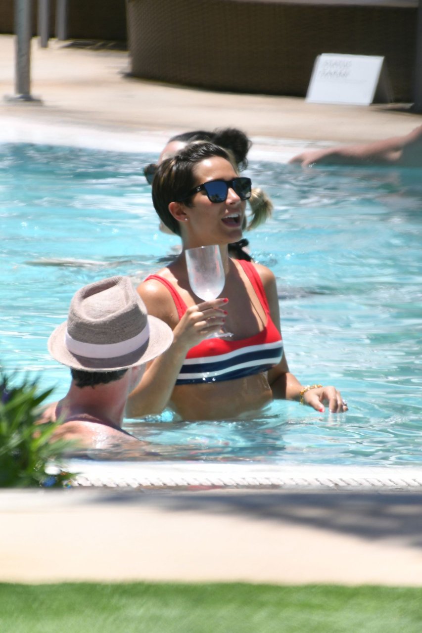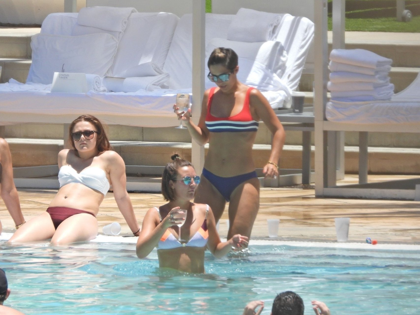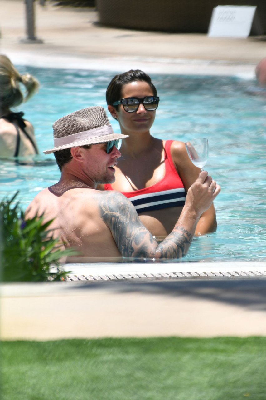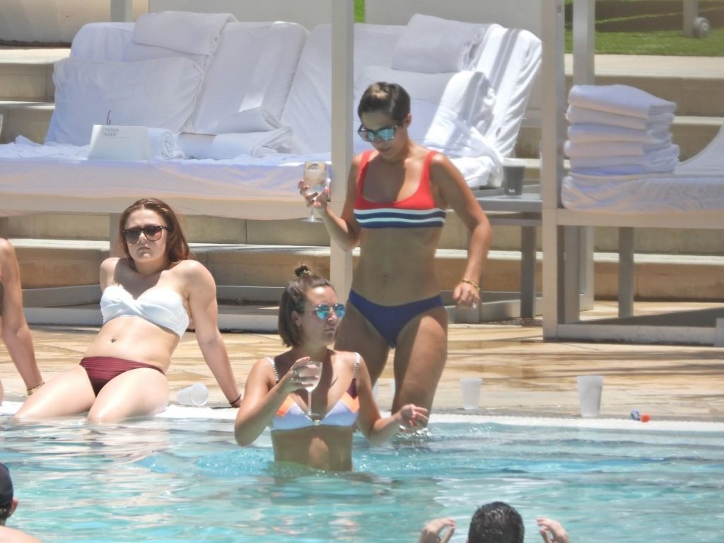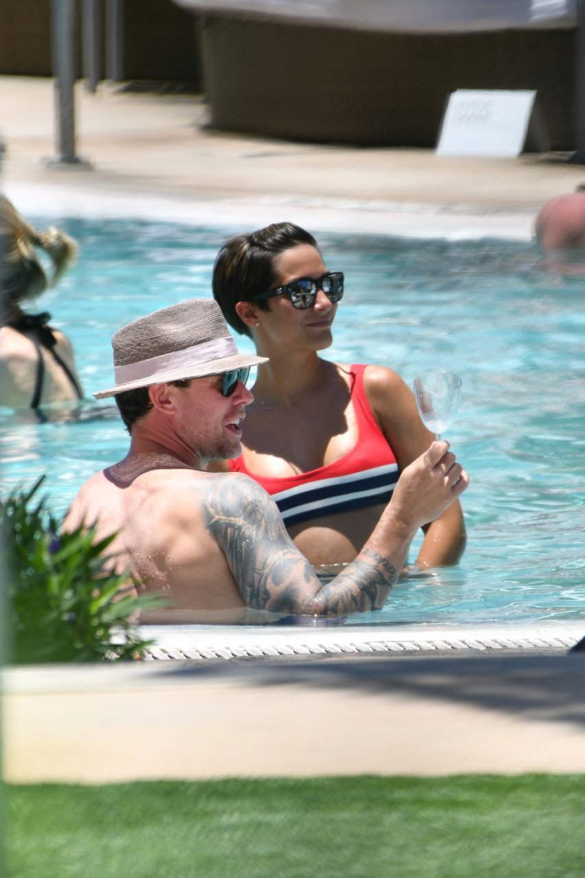 Пара демонстрировала свои фигуры: Фрэнки в красно-синем бикини и очках Chanel, а Уэйн без рубашки, показывая свои новые татуировки. После нескольких часов питья шампанского, вина и сангрии у бассейна с сестрой Фрэнки Викторией и её мужем, группа подружилась с британскими футбольными фанатами, где начались новые возлияния, и Уэйн стал вести себя шумно.