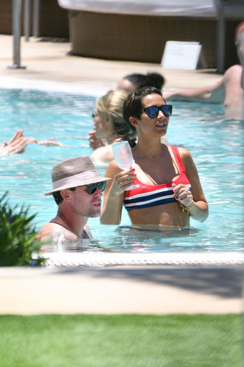 Бывший футболист поднял Викторию и бросил её в бассейн, затем запрыгнул на плечи одного из новых друзей и позировал как чемпион. Глаза Уэйна явно показывают последствия его дня, проведённого за алкоголем и на солнце.