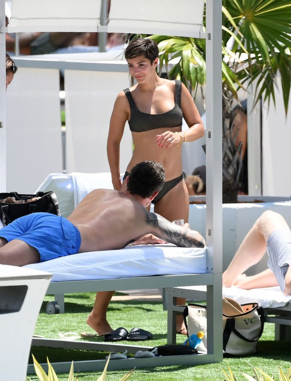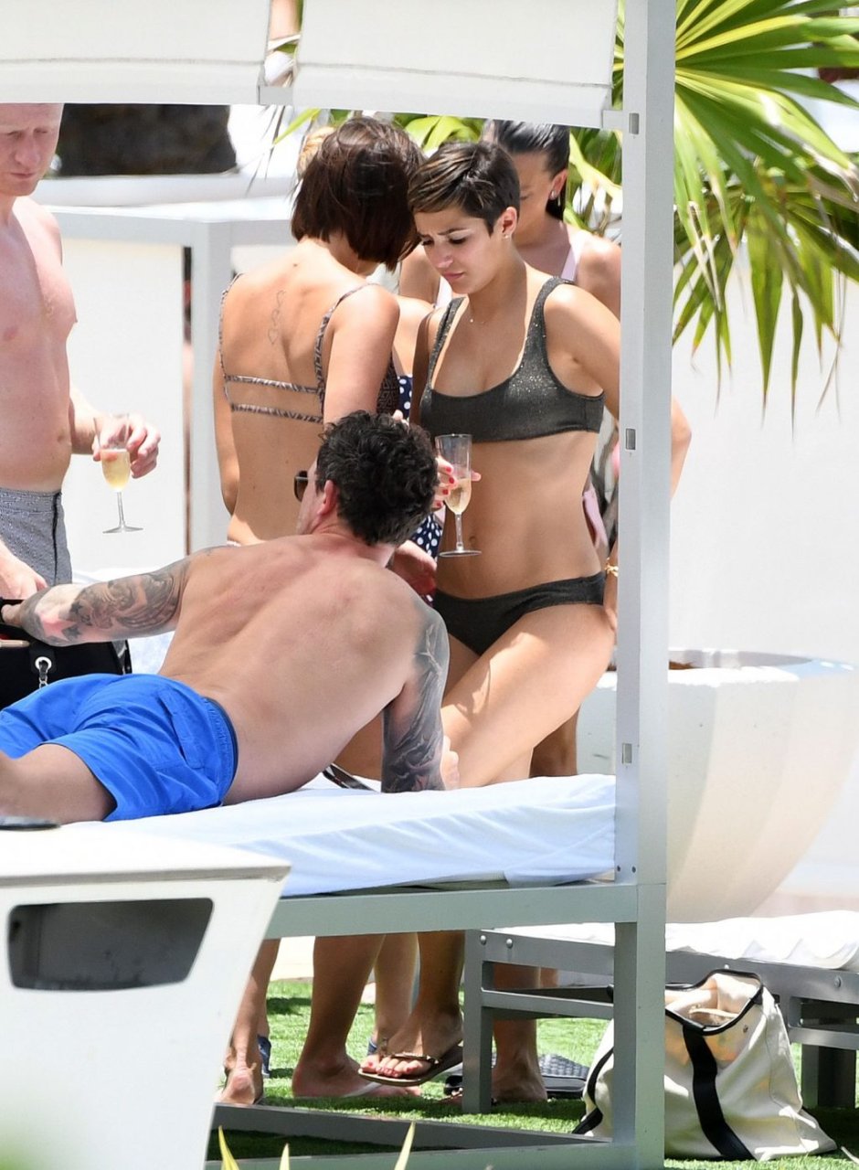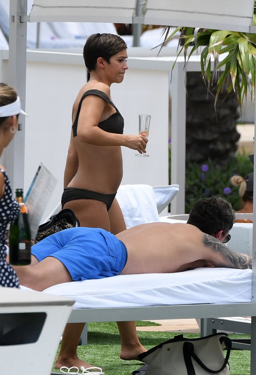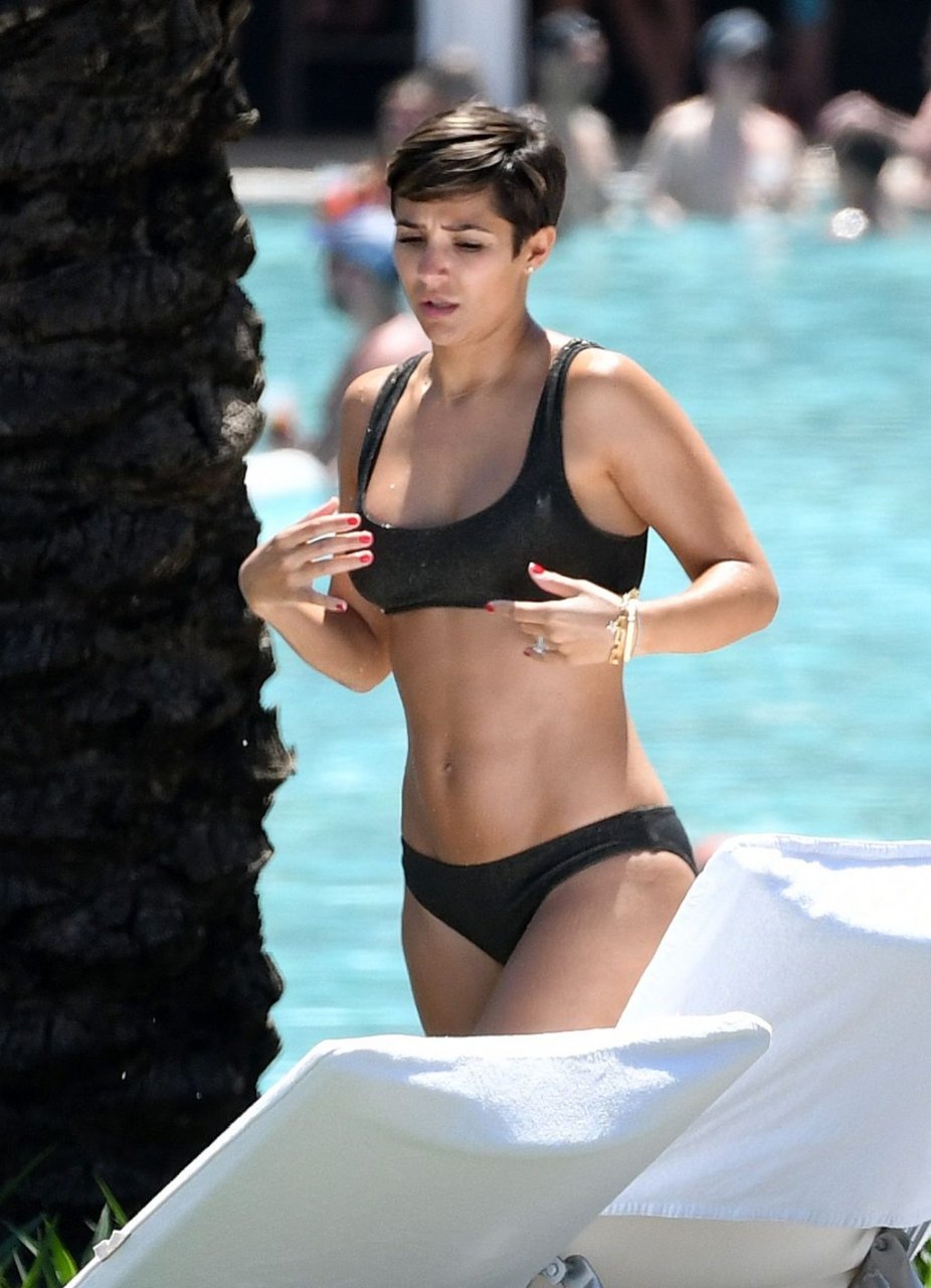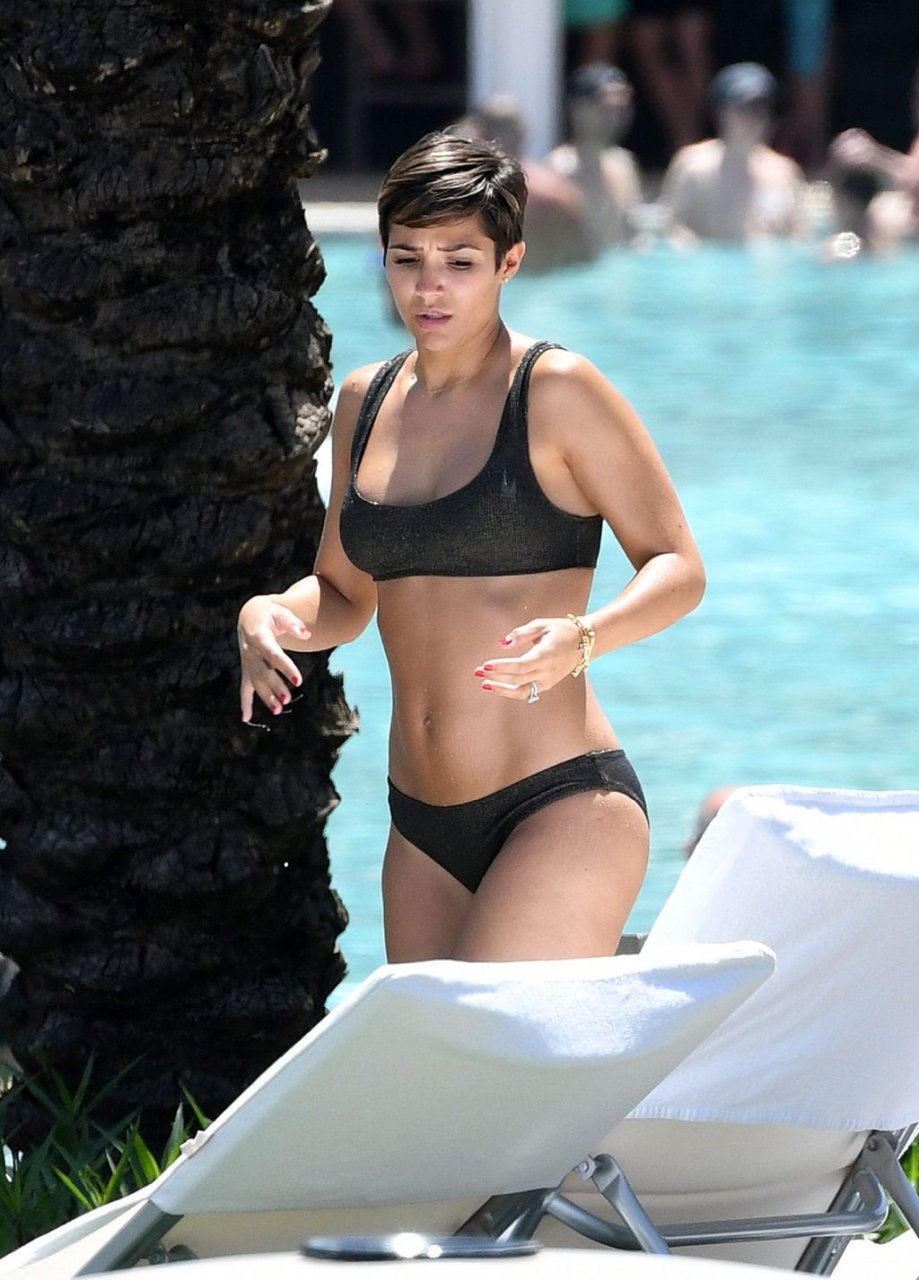 Певица и телеведущая Фрэнки Бридж вместе с мужем-футболистом Уэйном Бриджем отмечает свой 30-й день рождения в бикини у бассейна в Майами, 17.05.2019.