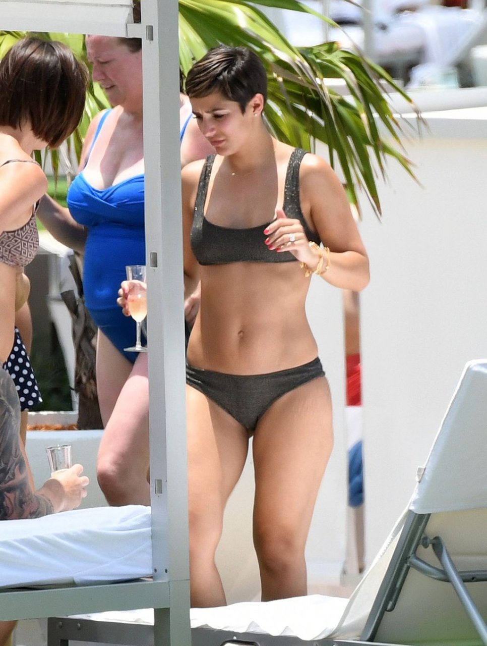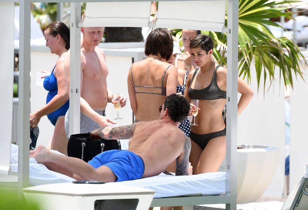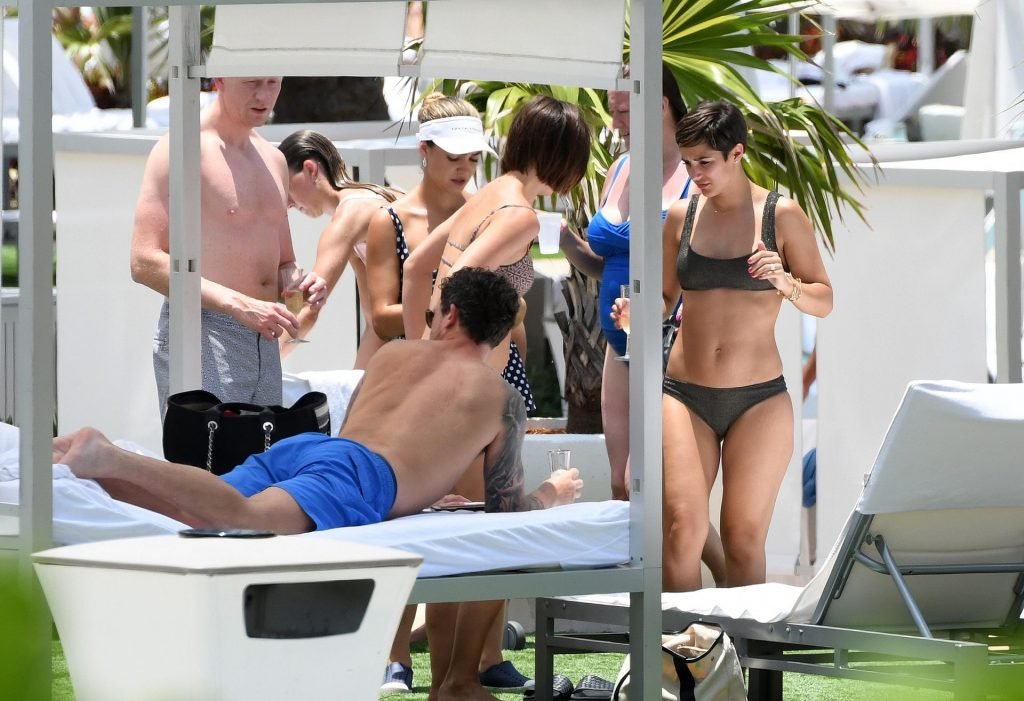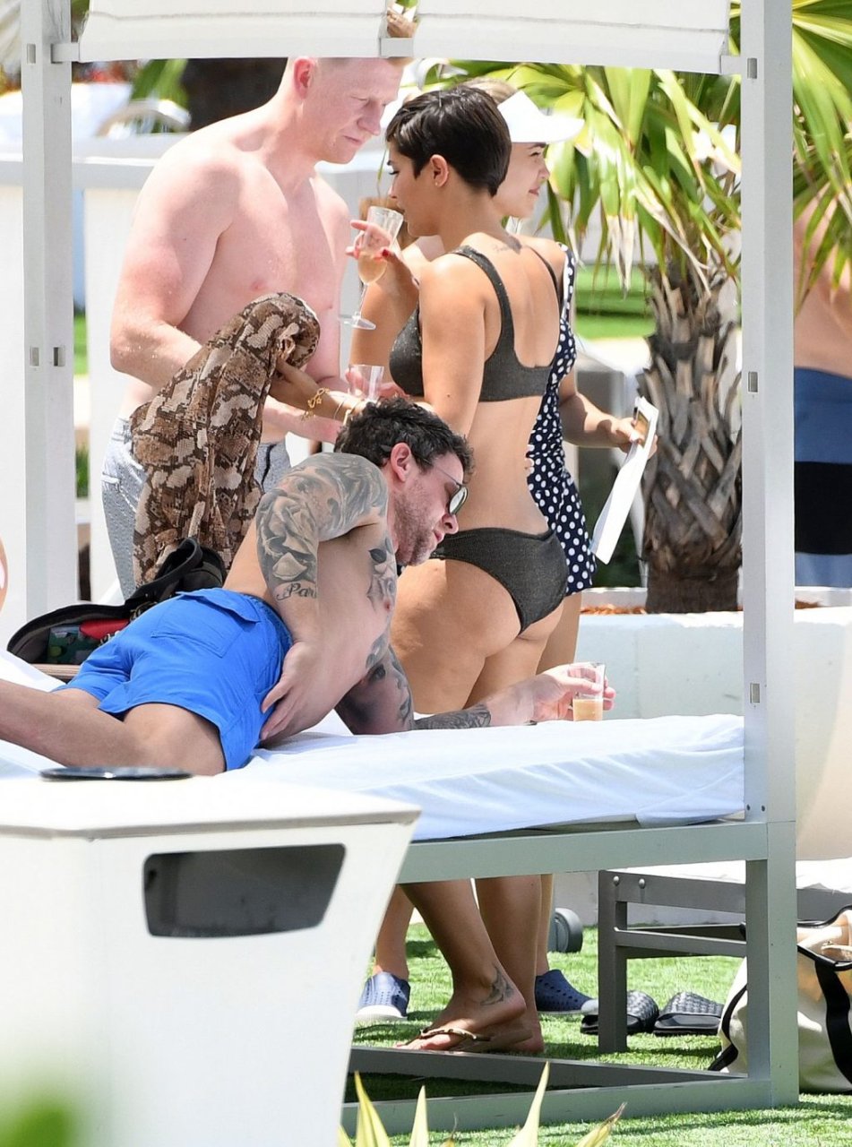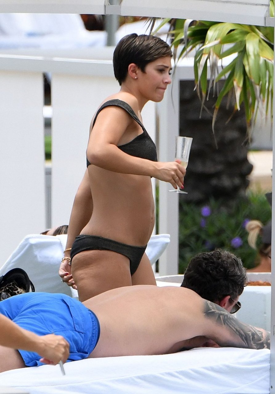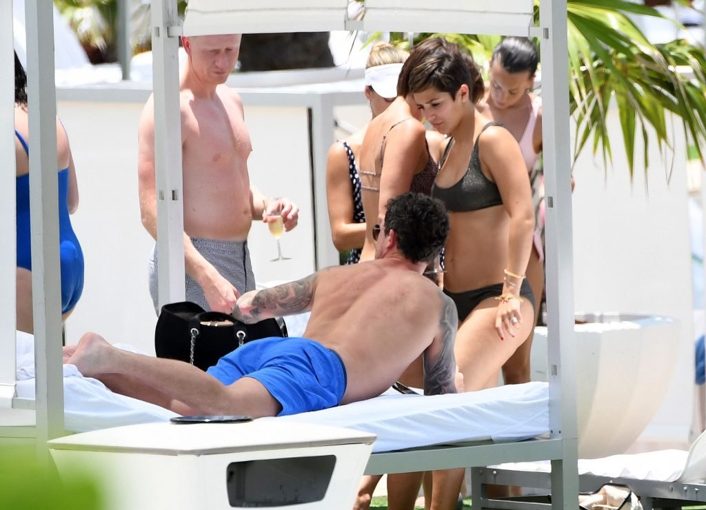 Певица и телеведущая Фрэнки Бридж вместе с мужем-футболистом Уэйном Бриджем отмечает свой 30-й день рождения в бикини у бассейна в Майами, 17.05.2019.