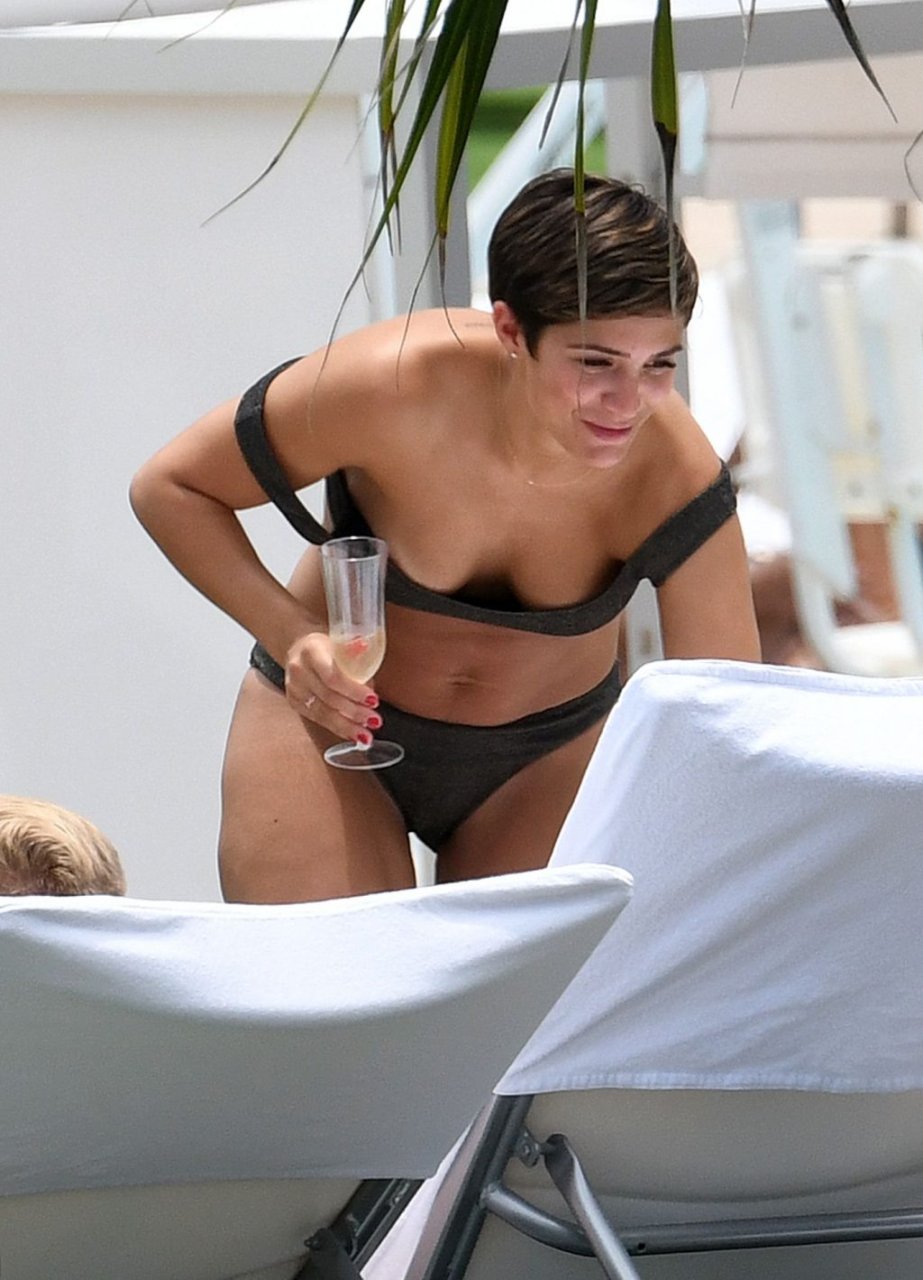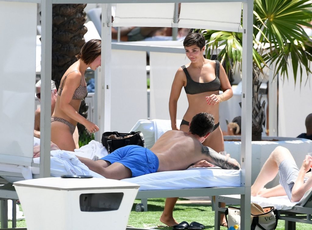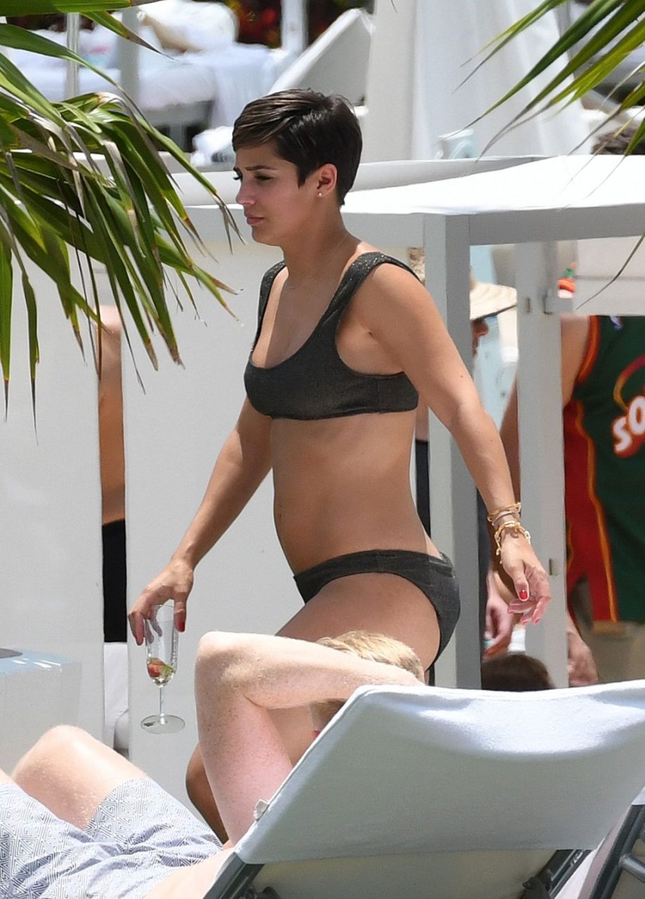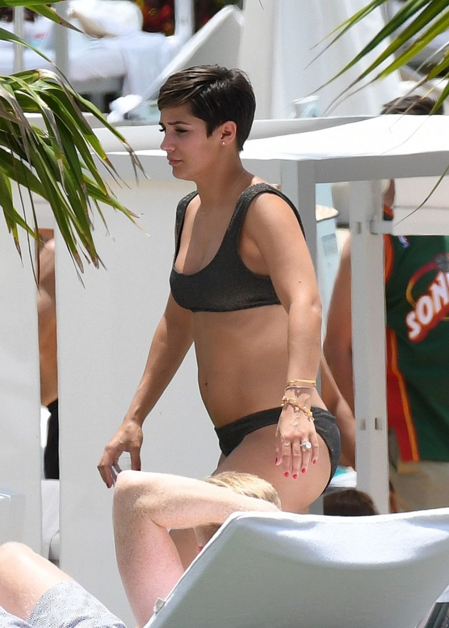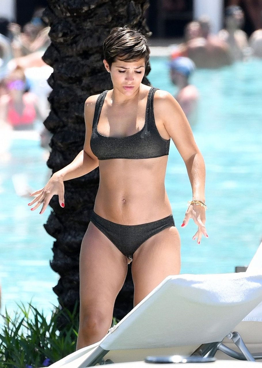 Певица и телеведущая Фрэнки Бридж вместе с мужем-футболистом Уэйном Бриджем отмечает свой 30-й день рождения в бикини у бассейна в Майами, 17.05.2019.