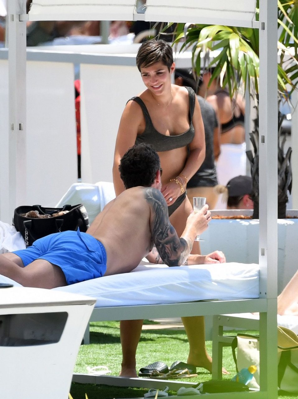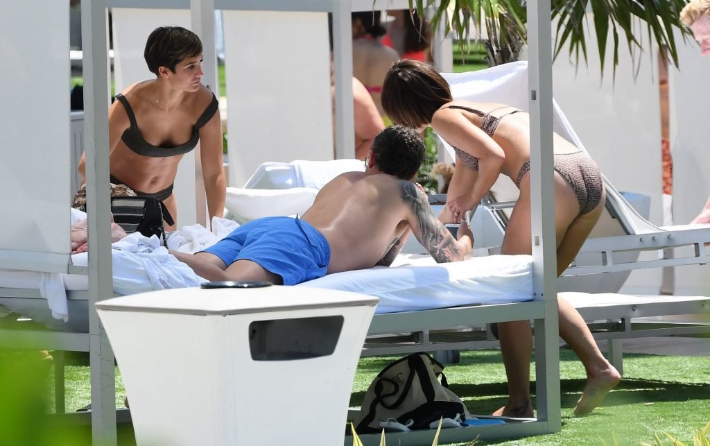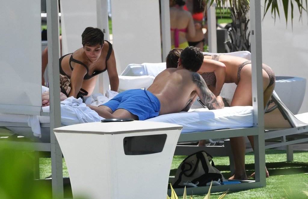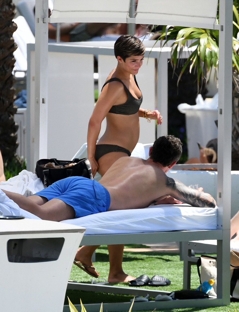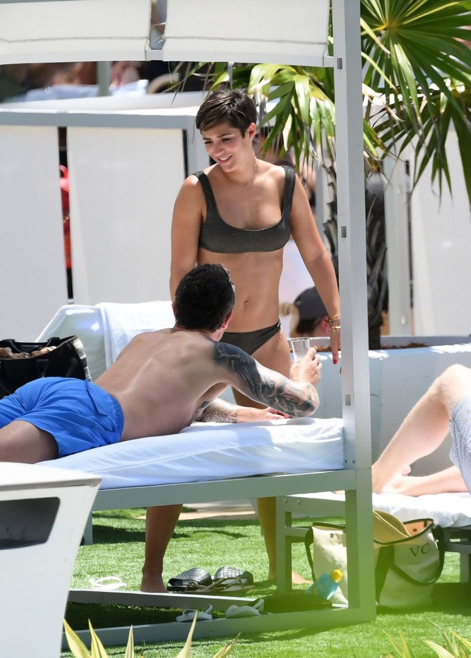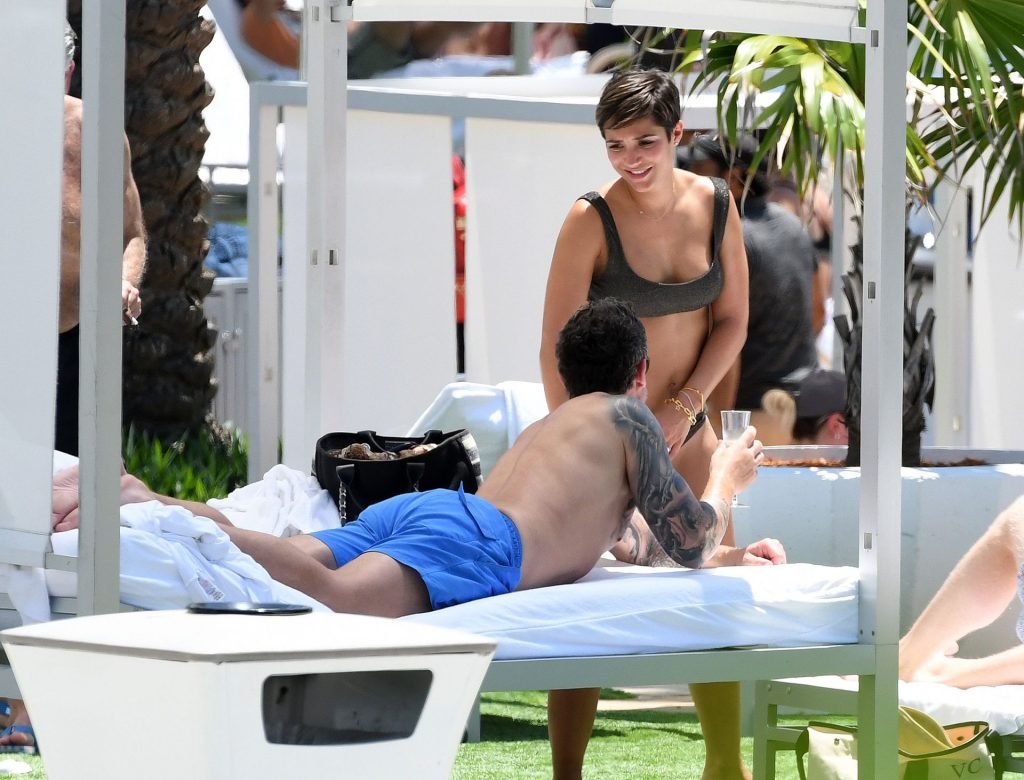Певица и телеведущая Фрэнки Бридж вместе с мужем-футболистом Уэйном Бриджем отмечает свой 30-й день рождения в бикини у бассейна в Майами, 17.05.2019.