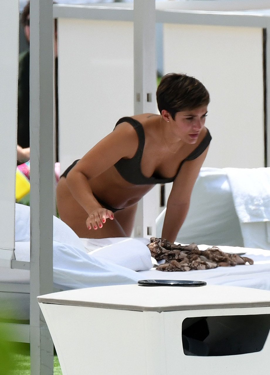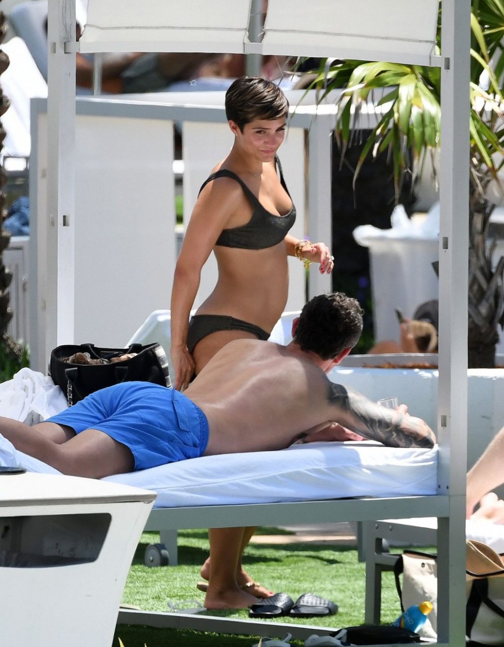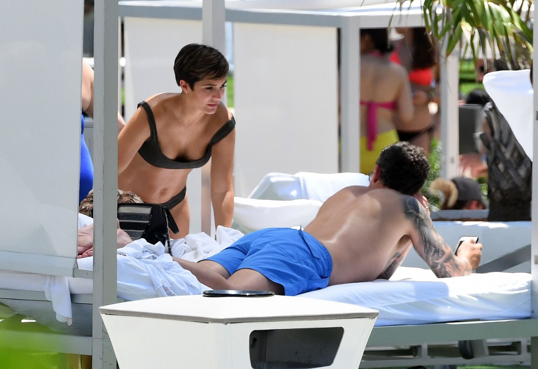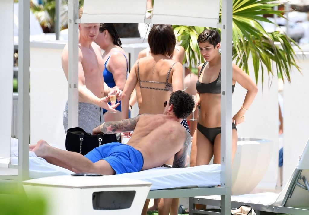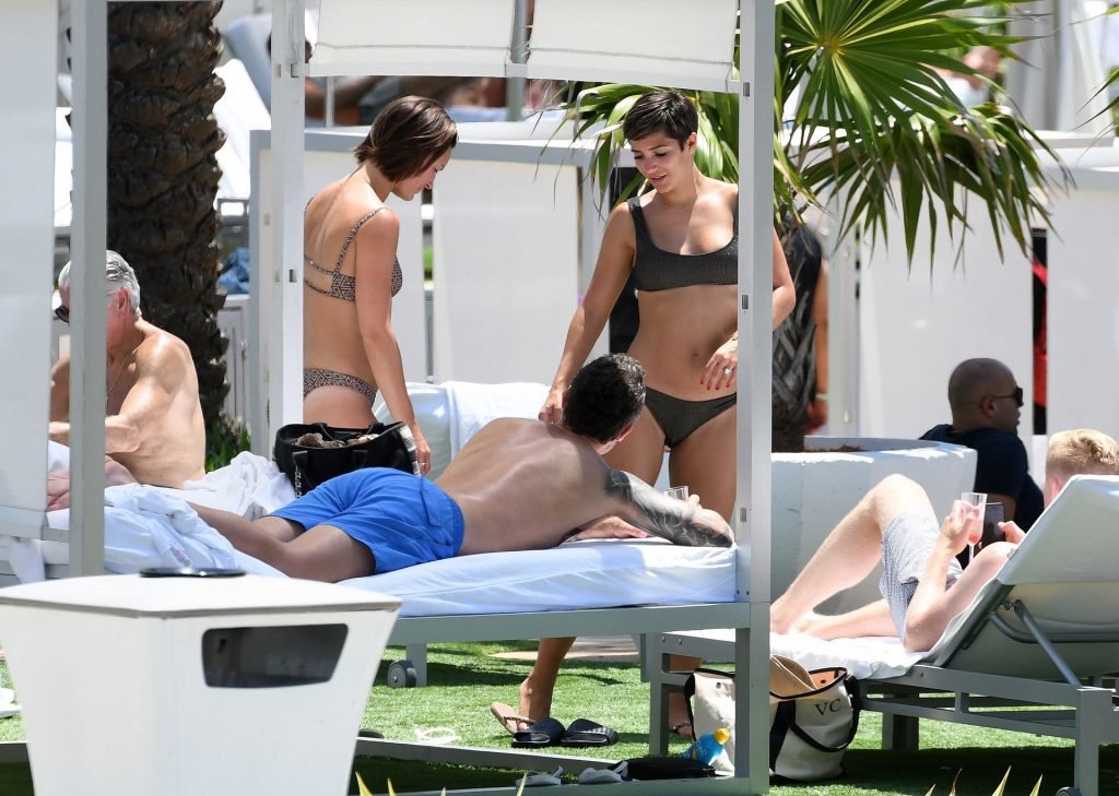 Певица и телеведущая Фрэнки Бридж вместе с мужем-футболистом Уэйном Бриджем отмечает свой 30-й день рождения в бикини у бассейна в Майами, 17.05.2019.