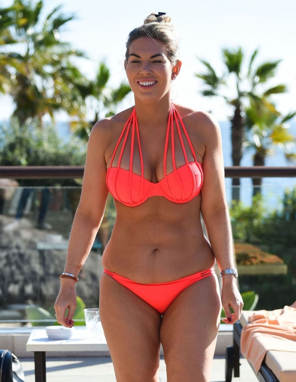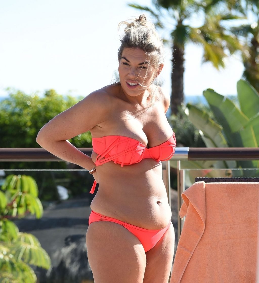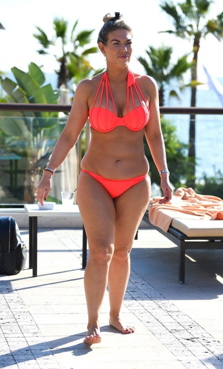 Фрэнки Эссекс продолжает свой отпуск на Тенерифе после признания, что боится ходить в спортзал, 01/09/2019. 31-летняя звезда TOWIE демонстрирует свою фигуру 14-го размера в оранжевом бикини.