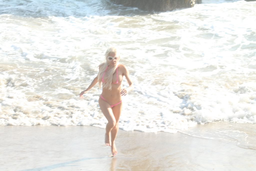 “Звезда шоу “Celebrity Big Brother” Frenchy Morgan (43) была замечена в крошечном розовом бикини, бегая по пляжу в Малибу, 29.10.2018.