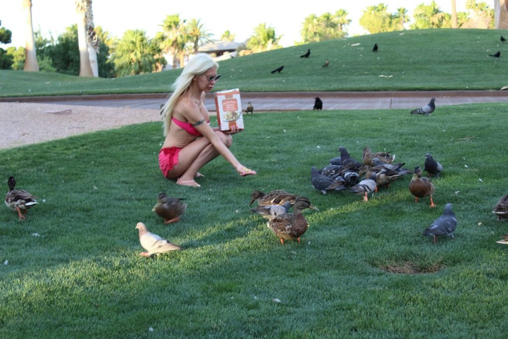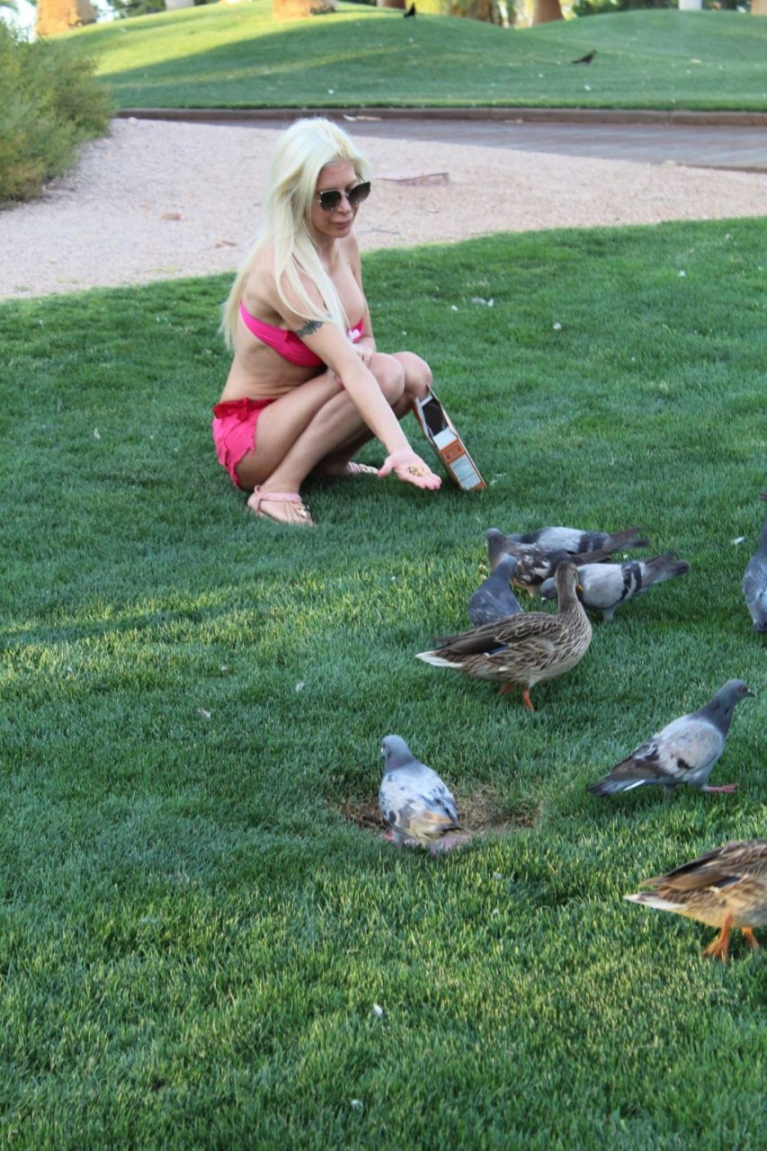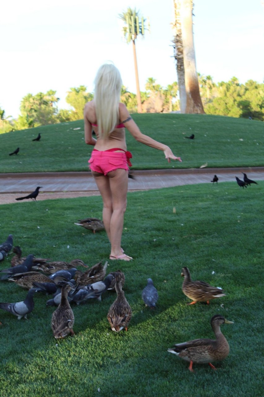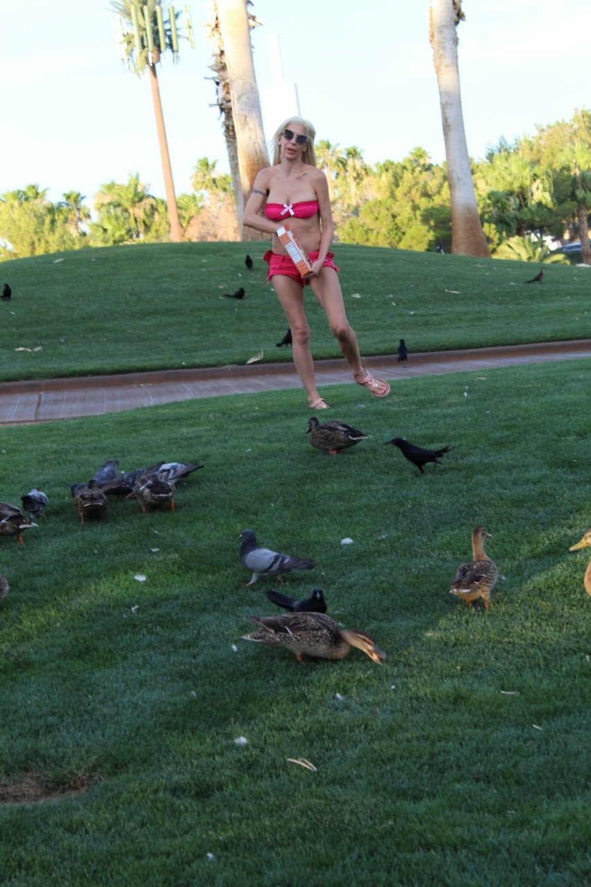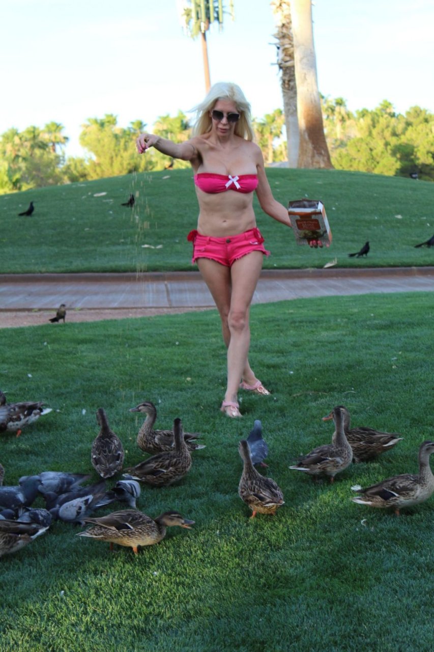 Reality Starlet Angelique “Frenchy” Morgan запечатлена за игрой в гольф на поле в Лас-Вегасе в очень откровенном розовом бикини, и у неё случайно произошёл соскок соска в Лас-Вегасе, 07/12/2019. В конце концов, Френчи замечает соскок, исправляет неполадку с одеждой и продолжает игру в гольф.