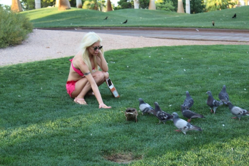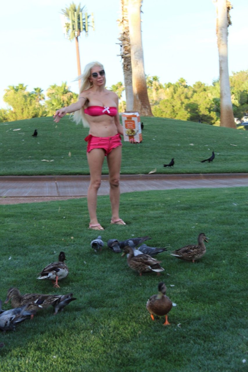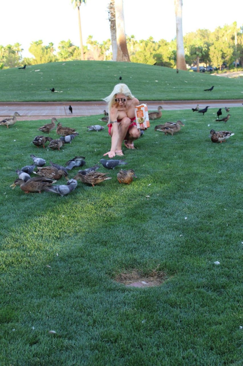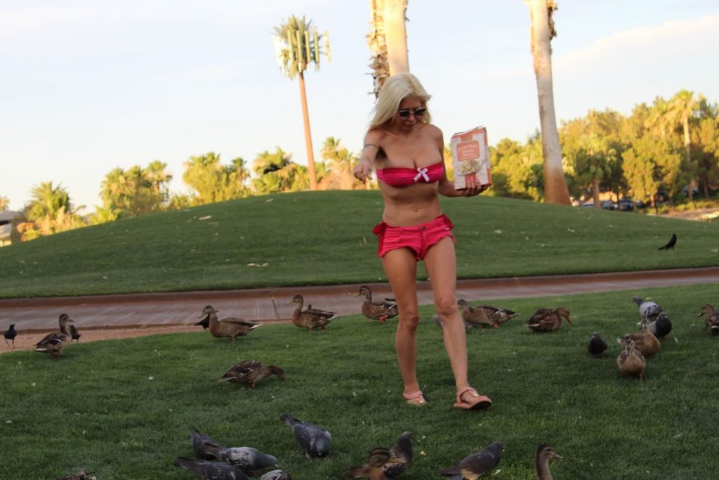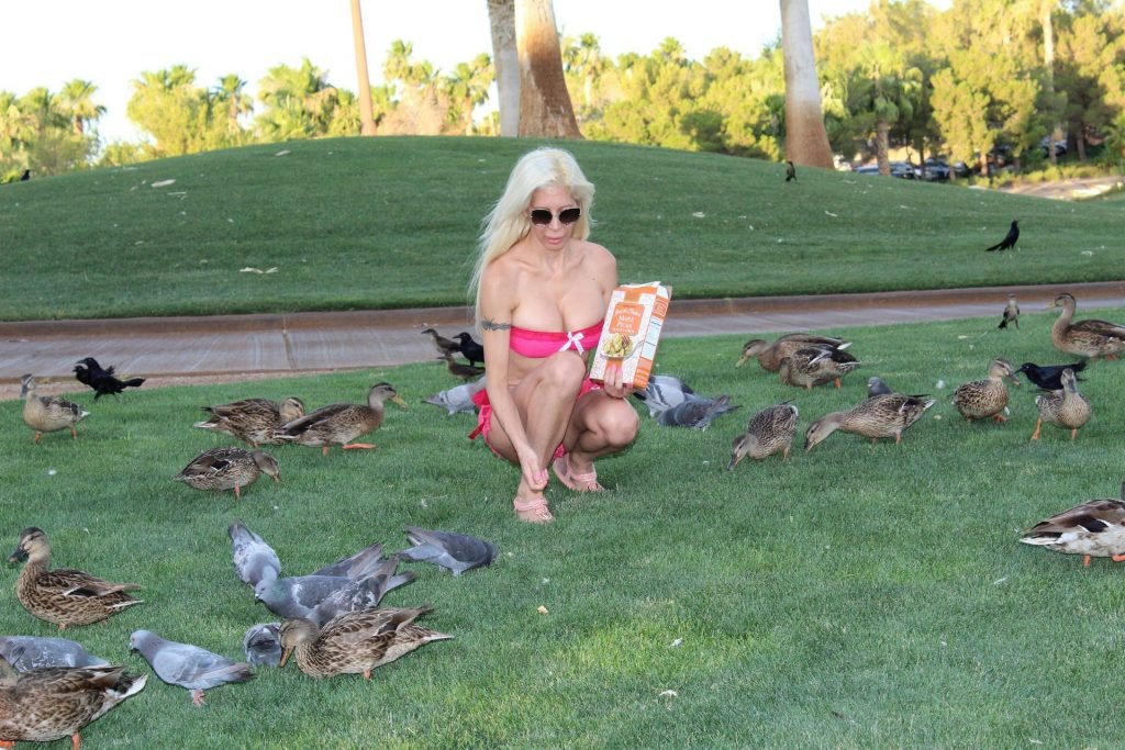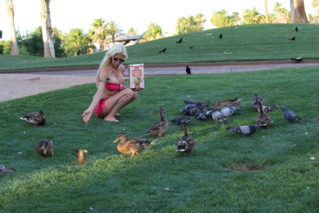 Reality Starlet Angelique “Frenchy” Morgan запечатлена за игрой в гольф на поле в Лас-Вегасе в очень откровенном розовом бикини, и у неё случайно произошёл соскок соска в Лас-Вегасе, 07/12/2019. В конце концов, Френчи замечает соскок, исправляет неполадку с одеждой и продолжает игру в гольф.