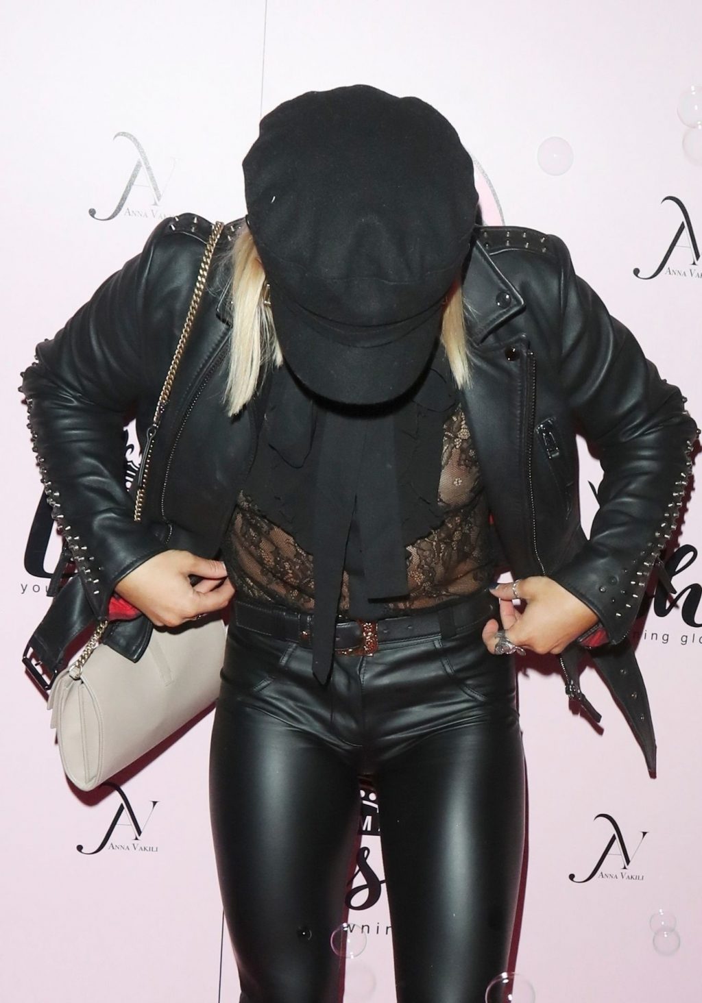 Звезда реалити-шоу Габби Аллен продемонстрировала свою грудь, надев прозрачную кружевную блузку, на вечеринке по случаю запуска Anna Vakili x PrimaLash в Лондоне, 11.06.2019.