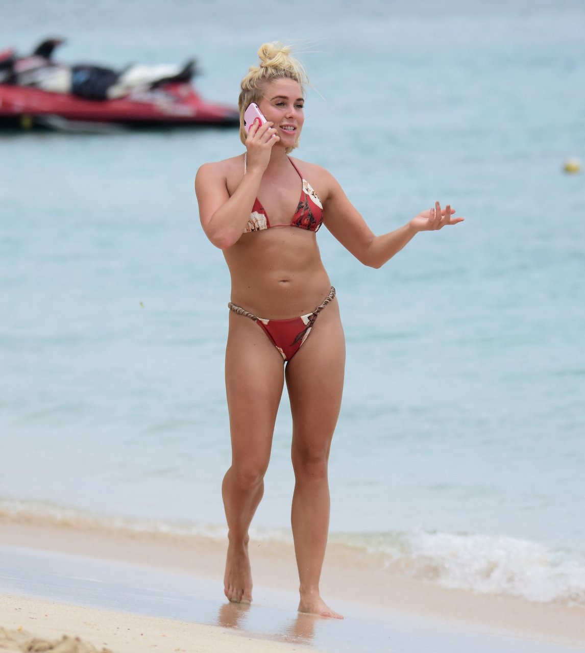 Звезда шоу “Love Island” Габби Аллен демонстрирует крошечное бикини на пляже в Барбадосе, 16.06.2019.
