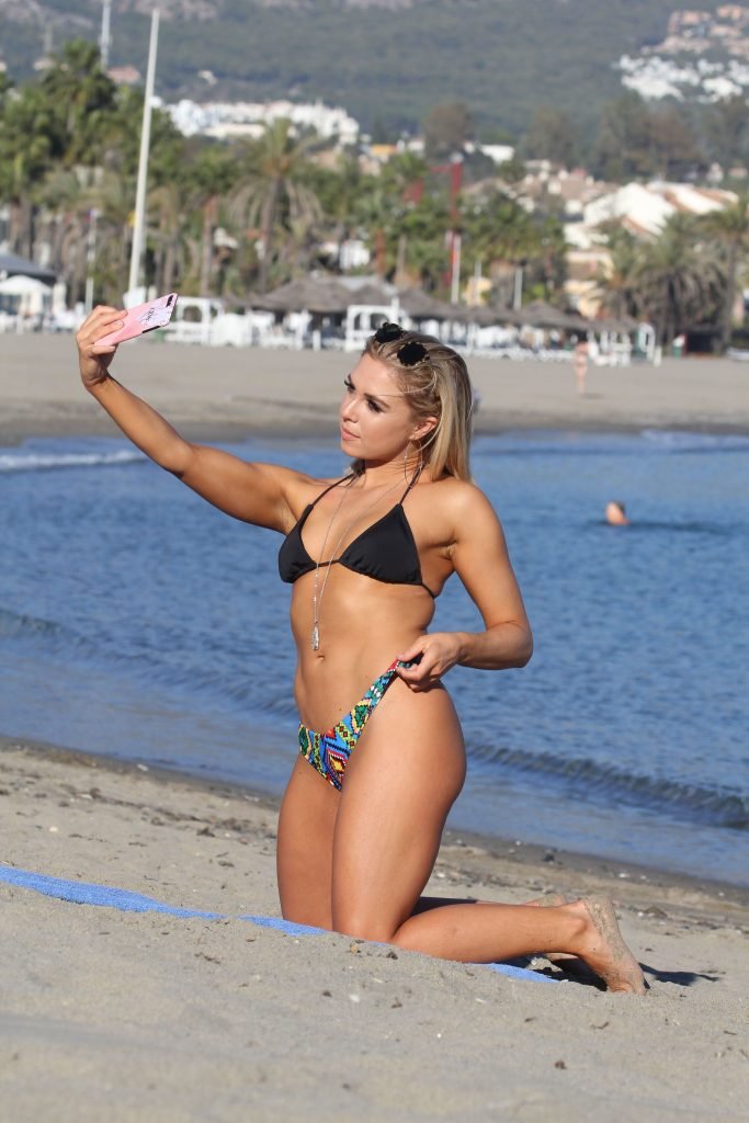 ‘Звезда шоу «Love Island» Габби Аллен демонстрирует свою завидную фигуру во время отпуска в Марбелье, 23.11.2017.