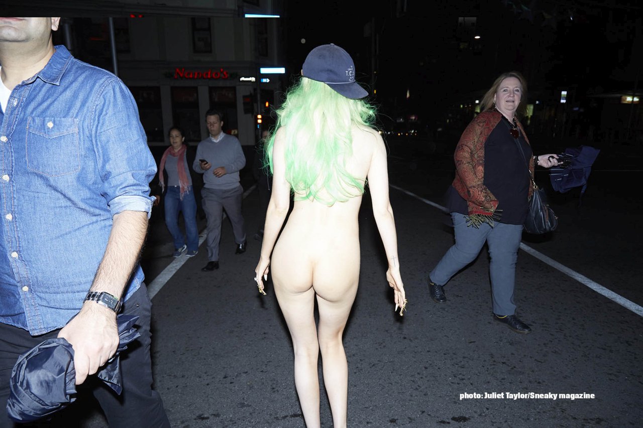 Фотографии сделаны в деловом центре Мельбурна, она — любительница публичности, которая здесь собирала много внимания, потому что занимается сексом с 71-летним миллиардером, уклоняющимся от налогов.