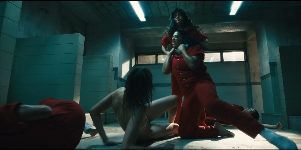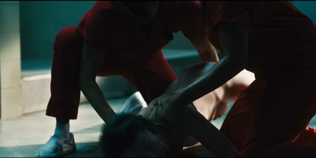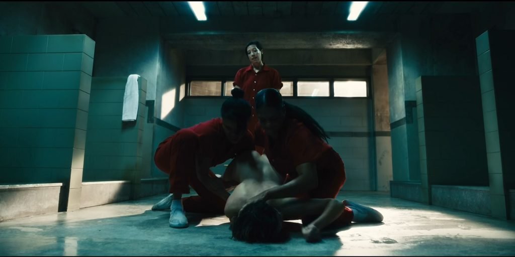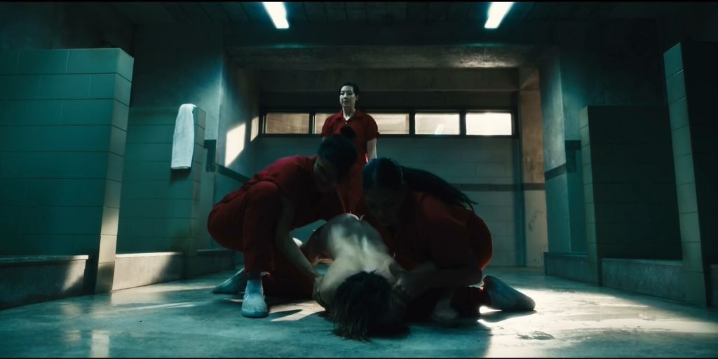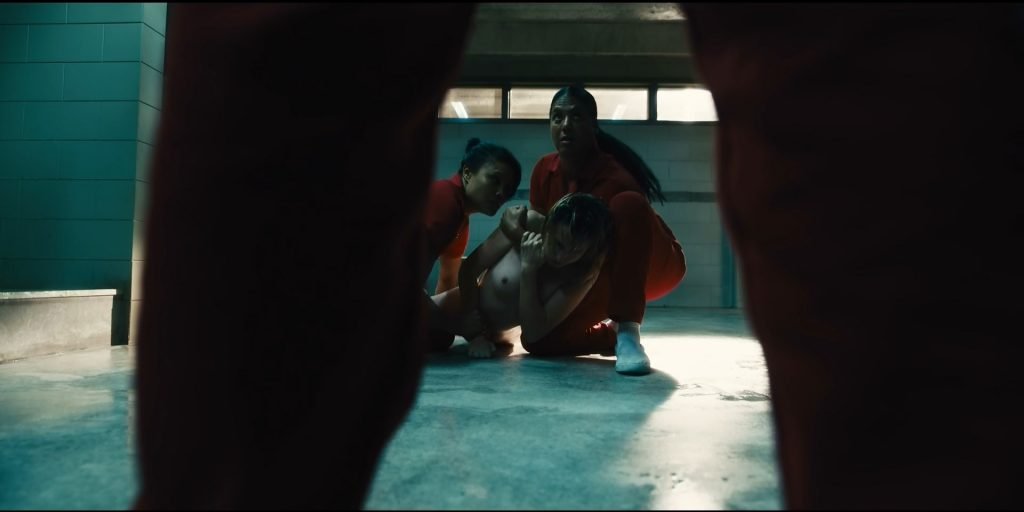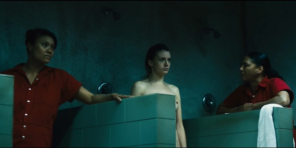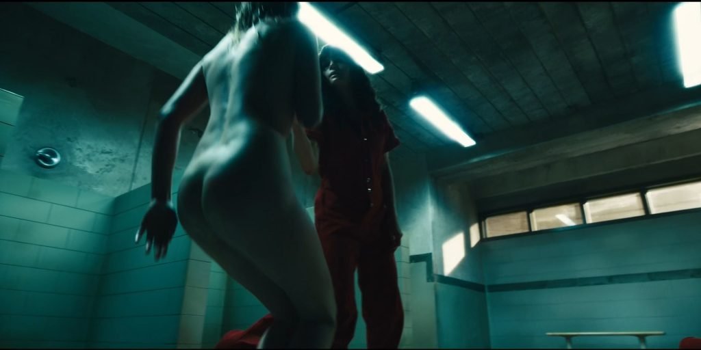 Есть еще одна сцена с обнаженной Гайте Янсен из сериала “Jett” (2019), сезон 1, эпизод 3 (s01e03), где она принимает душ в общественном туалете тюрьмы. Через некоторое время несколько заключенных прикасаются к ней и толкают Гайте на пол! Янсен полностью обнажена, показывая свои груди, ягодицы и лобок!