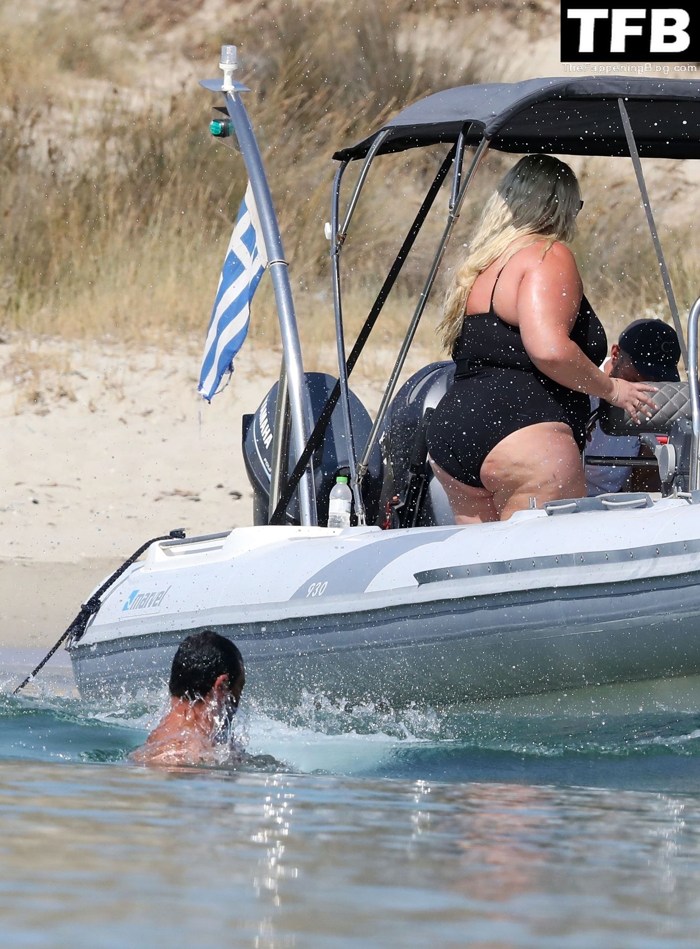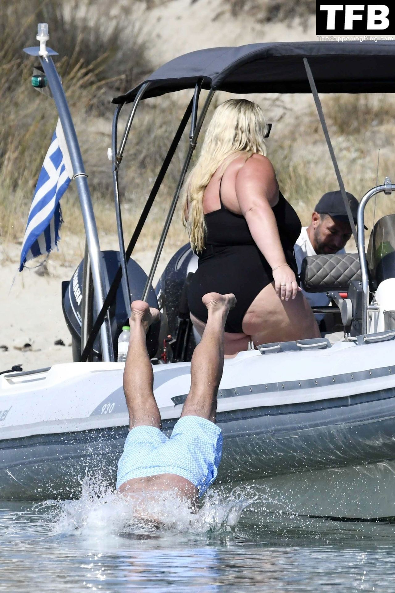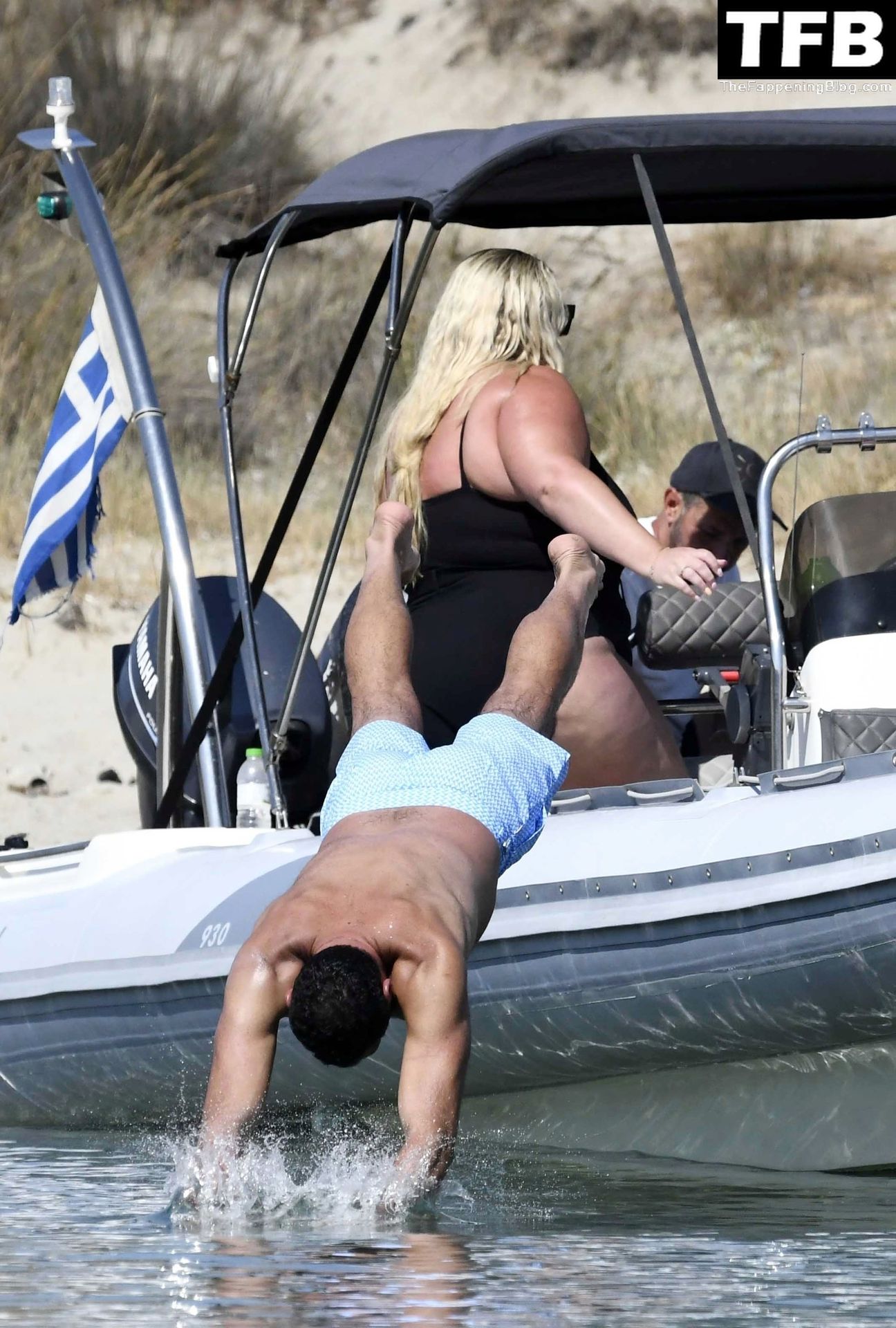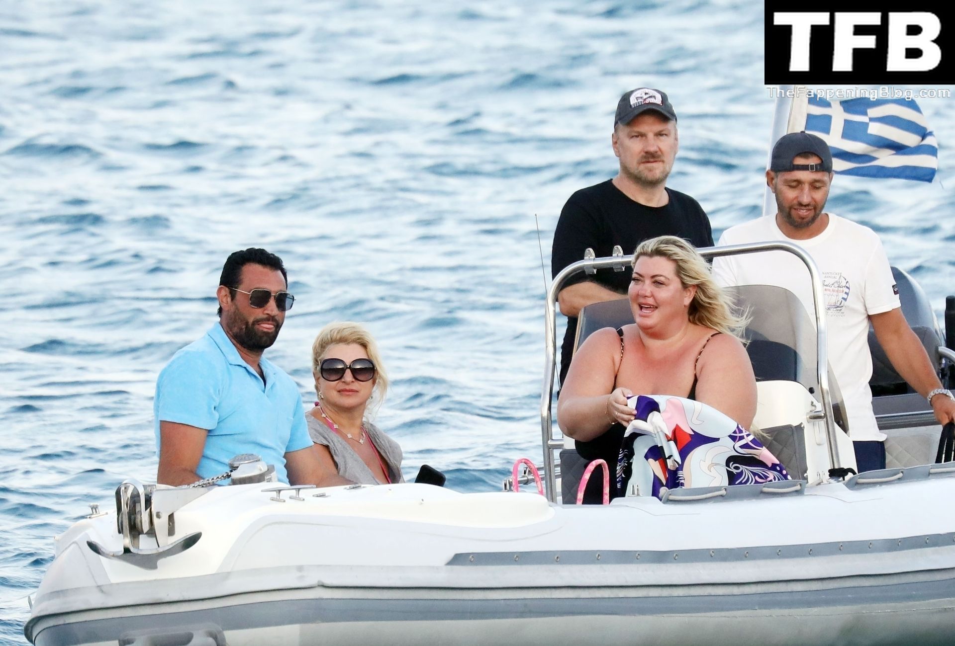 Звезда TOWIE Гемма Коллинз и её бизнесмен-бойфренд Рами Хаваш запечатлены во время совместного отдыха на греческом острове Миконос, 29.08.2022.
