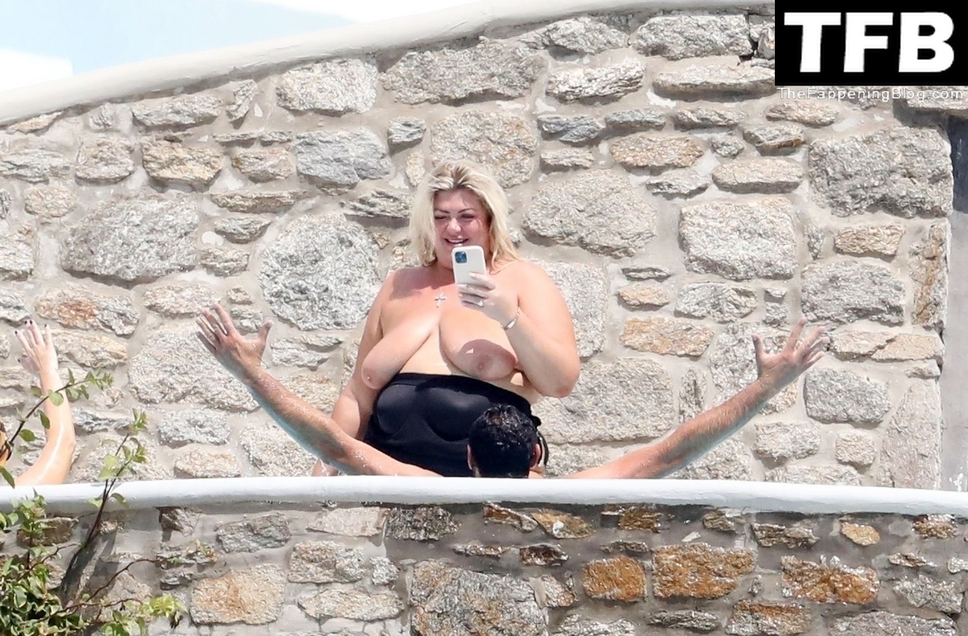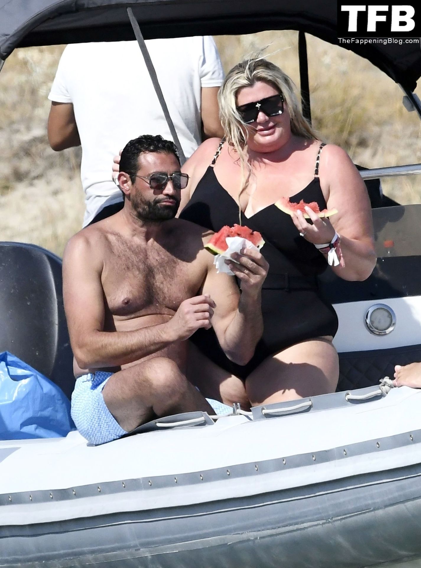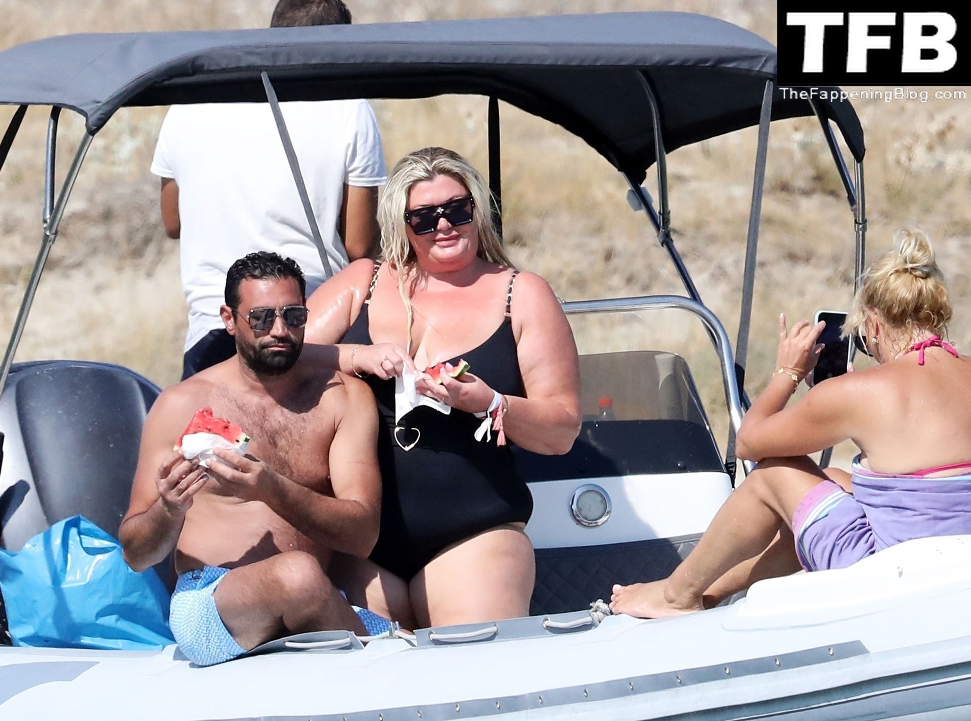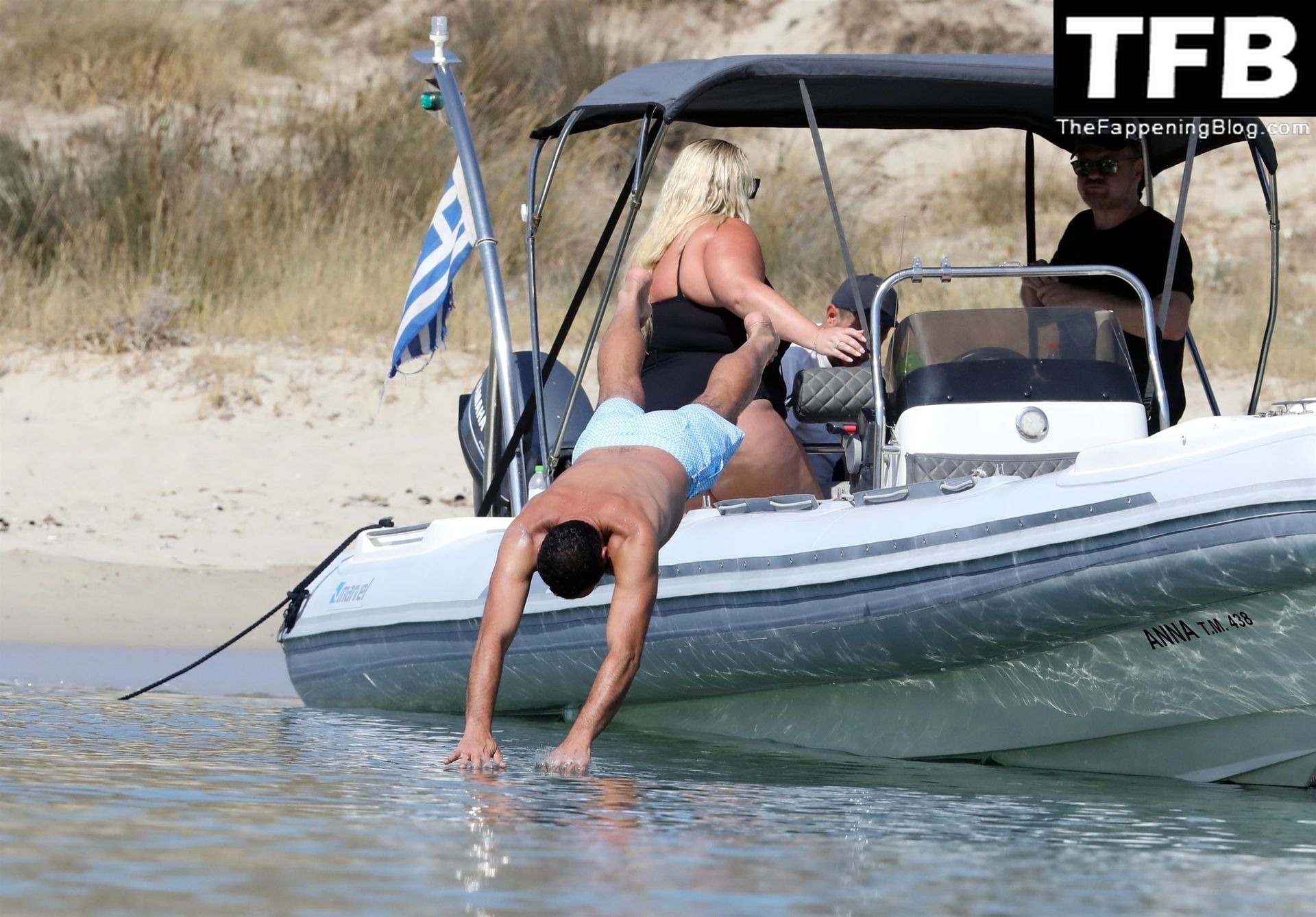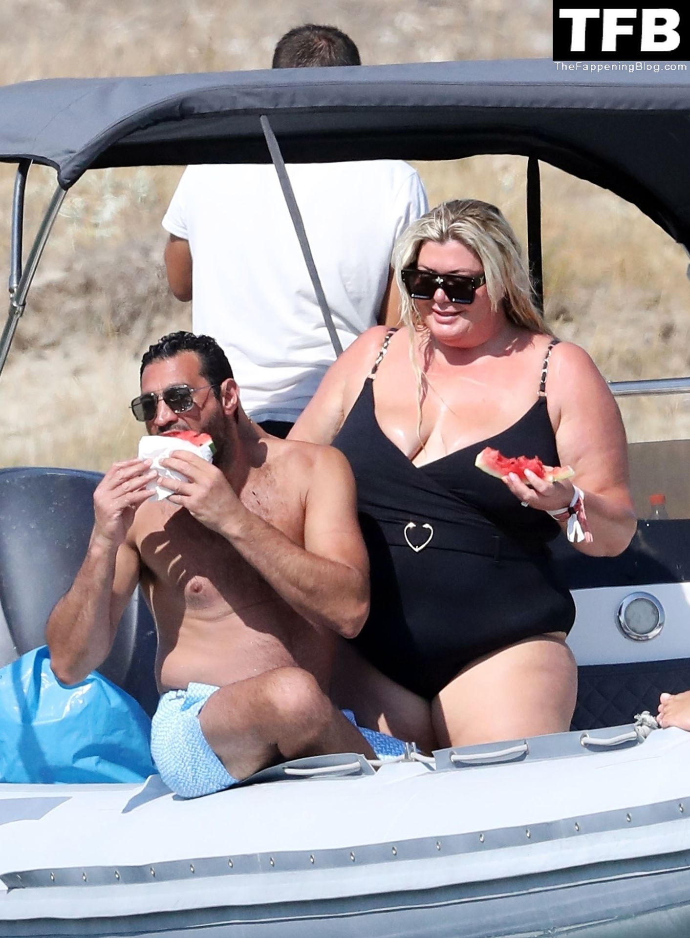 Звезда TOWIE Гемма Коллинз и её бизнесмен-бойфренд Рами Хаваш запечатлены во время совместного отдыха на греческом острове Миконос, 29.08.2022.