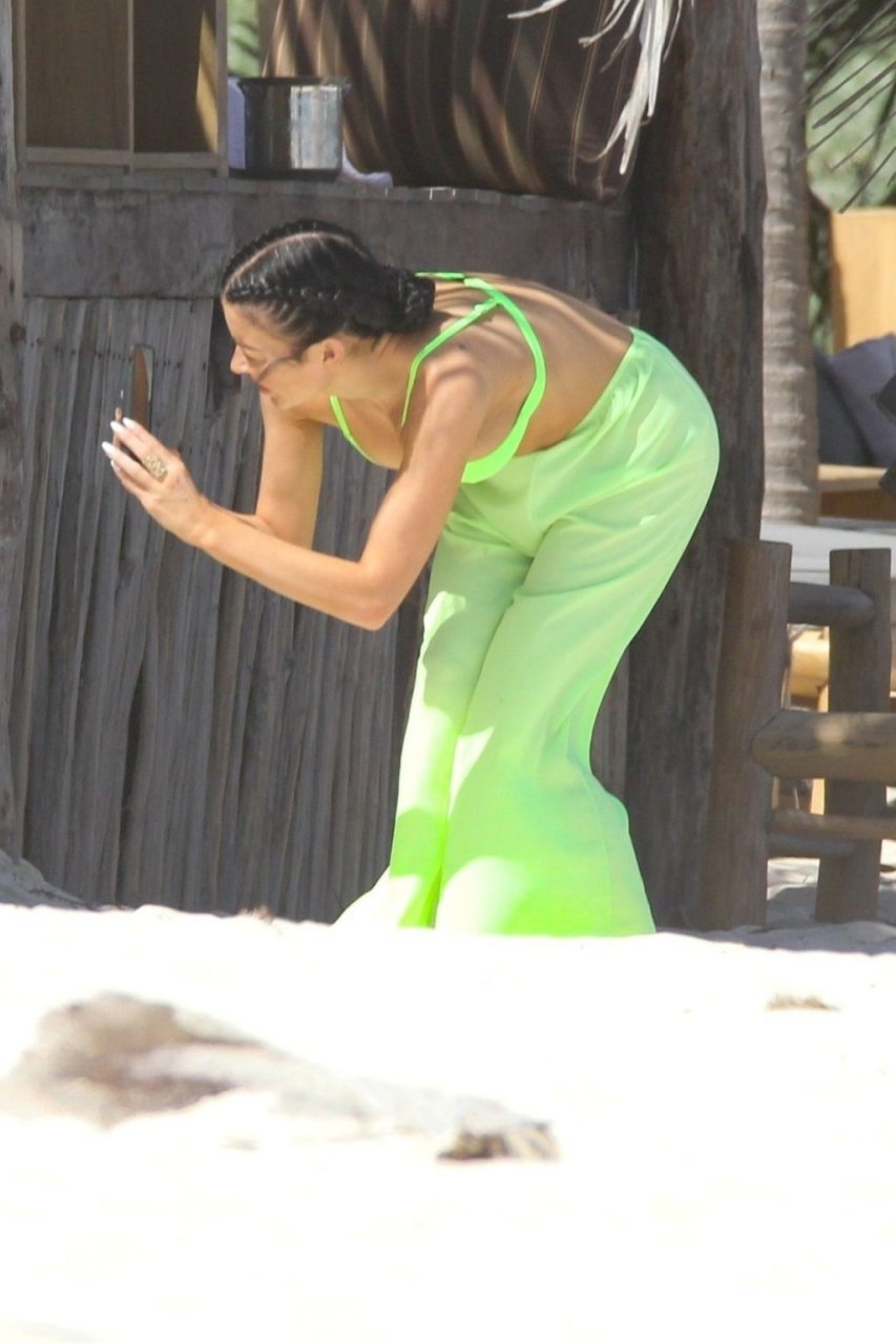 Гемма Ли Фаррелл, первая плеймейт из Новой Зеландии по версии Playboy, наслаждается прекрасным днем в Тулуме с друзьями, 27.02.2019. Гемма встречает пляжного ослика и проводит время с этим очаровательным созданием. Гемма носит неоново-зеленый купальник во время отпуска.