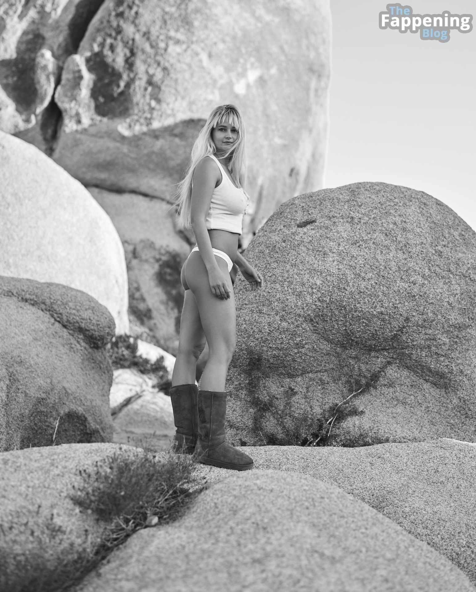 Приготовьтесь к потрясающей и чувственной фотосессии Геневьев Мортон, где она полностью обнажается и позирует топлес, гордо демонстрируя свои невероятные груди и соблазнительную попу.