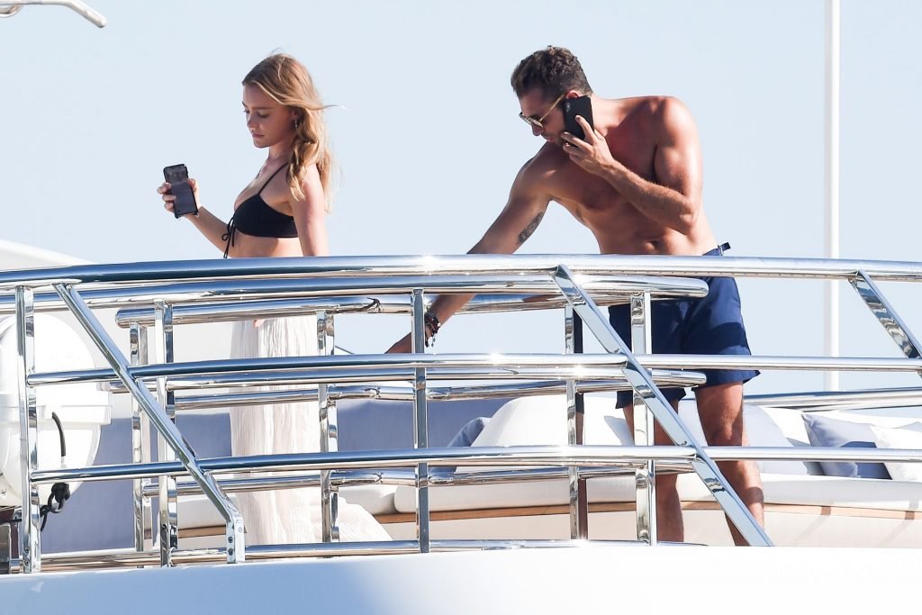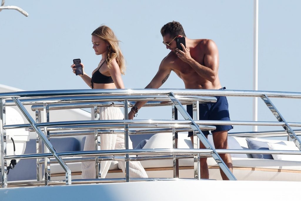 Модель Georgia Gibbs и Томми Чиабра были замечены на яхте Томми Чиабра в Порто Черво, Италия, 11.08.2019.