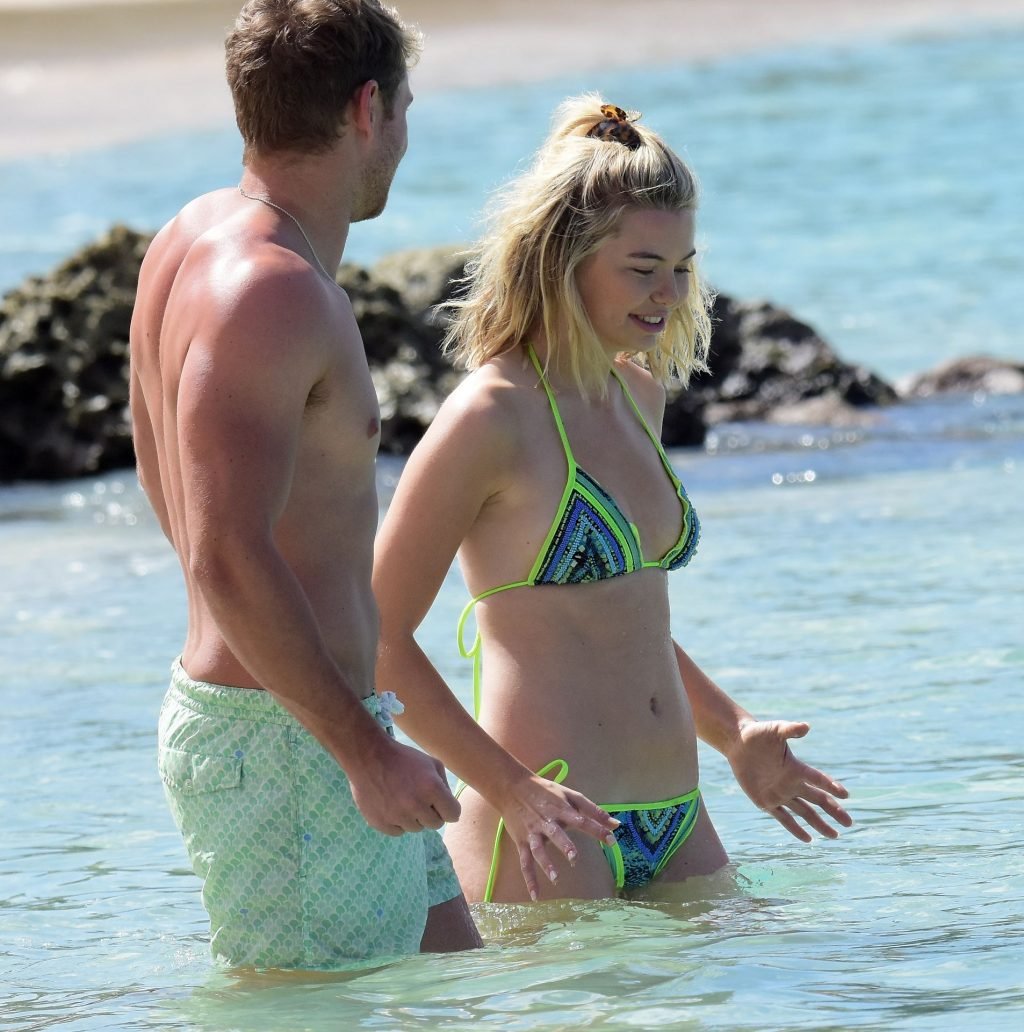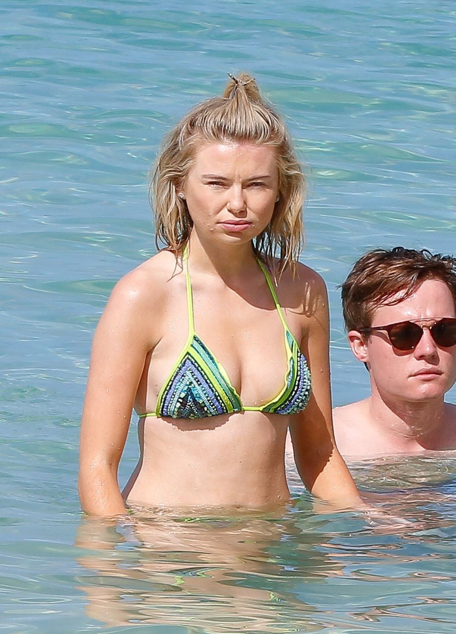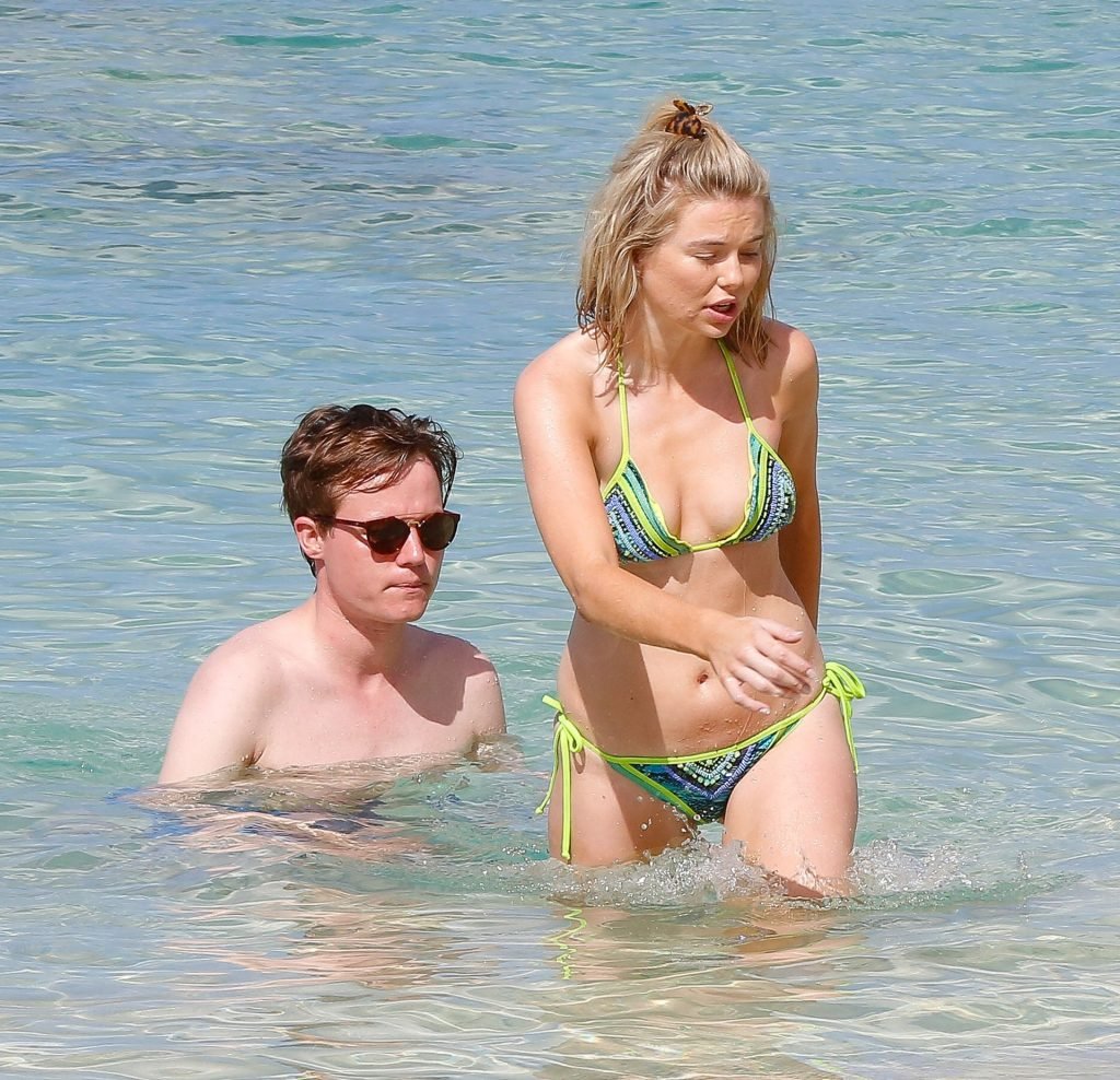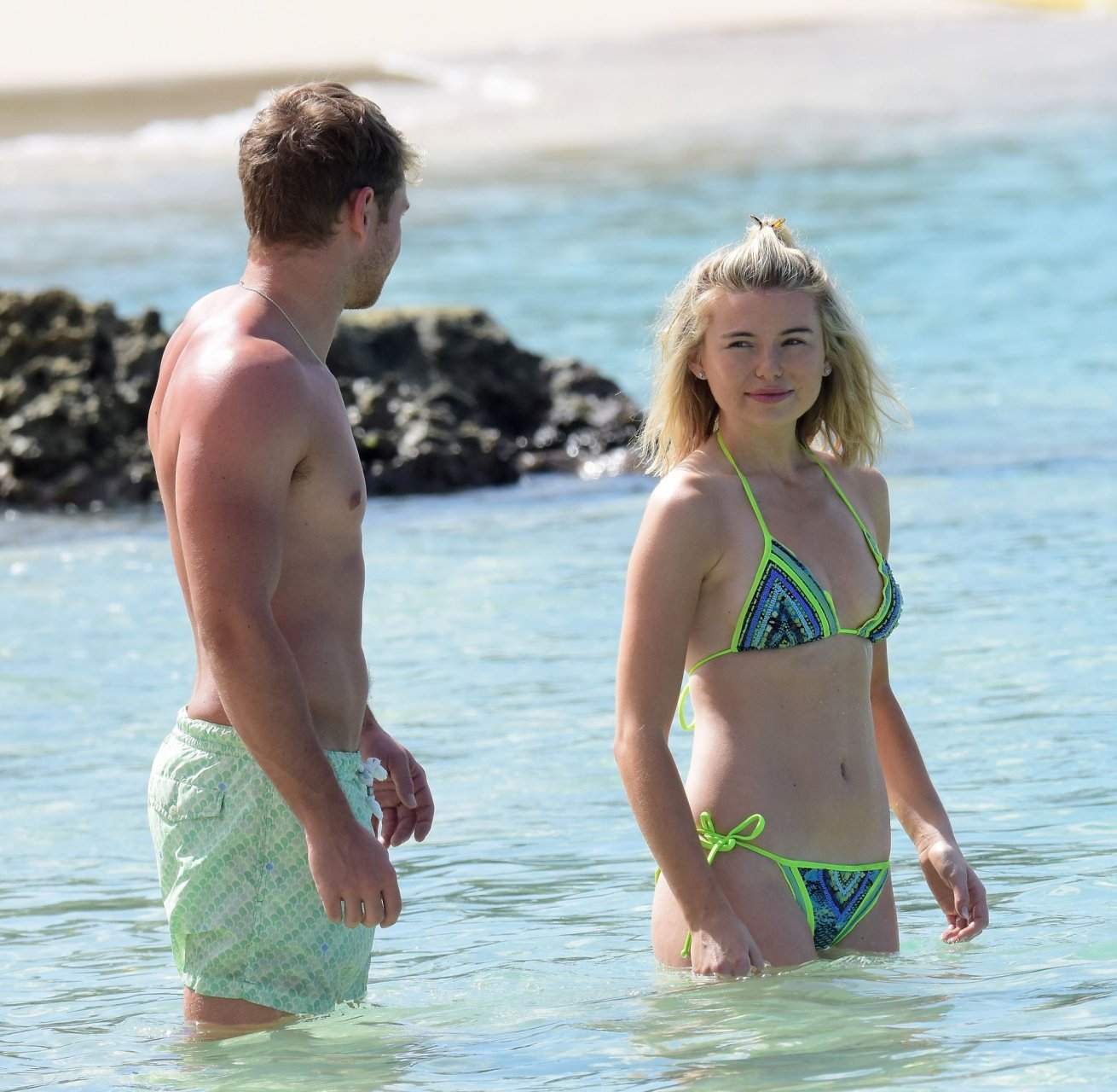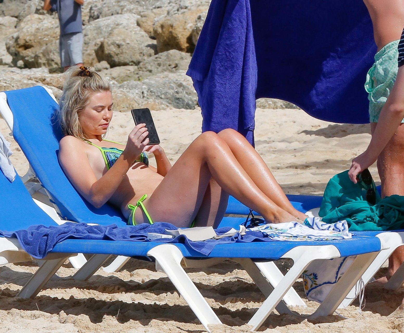 Georgia “Toff” Toffolo, Королева Джунглей, была замечена на пляже в крошечном зелёном бикини во время отпуска на Барбадосе, 01/07/2019.