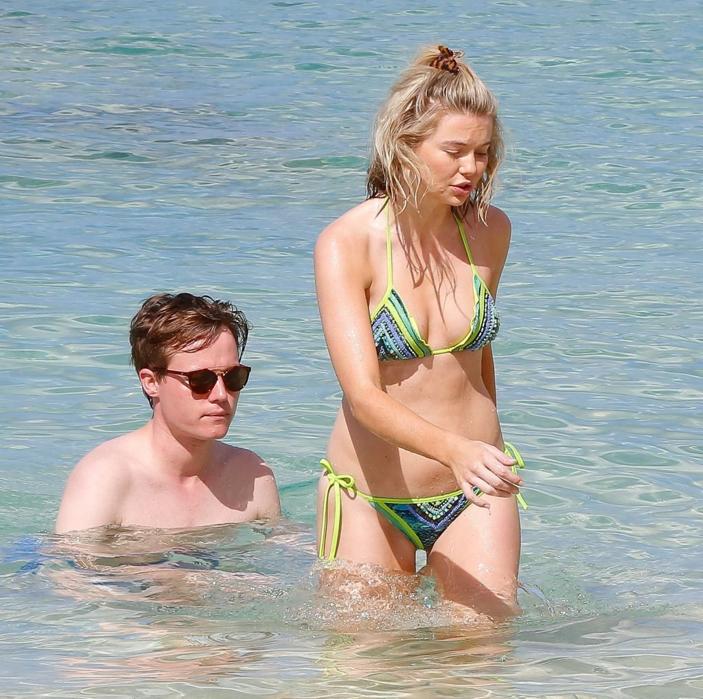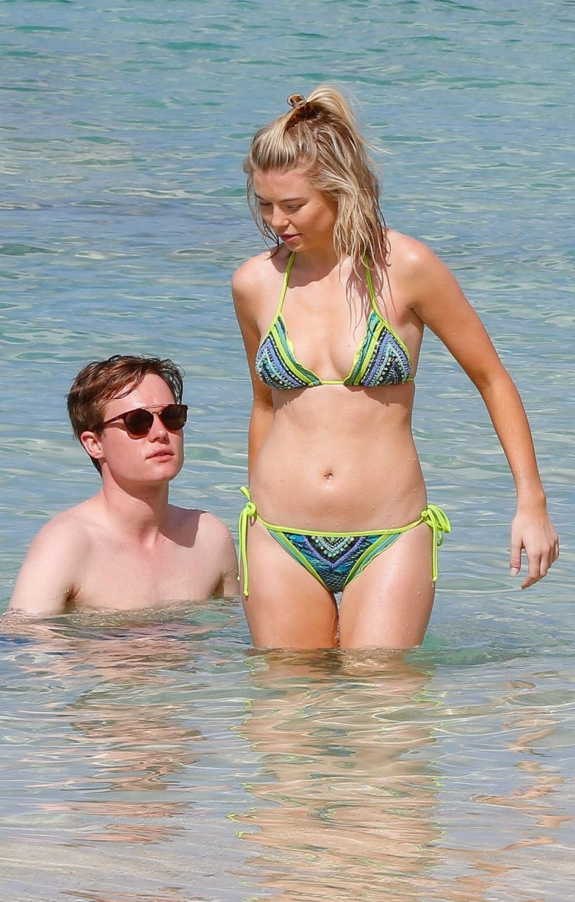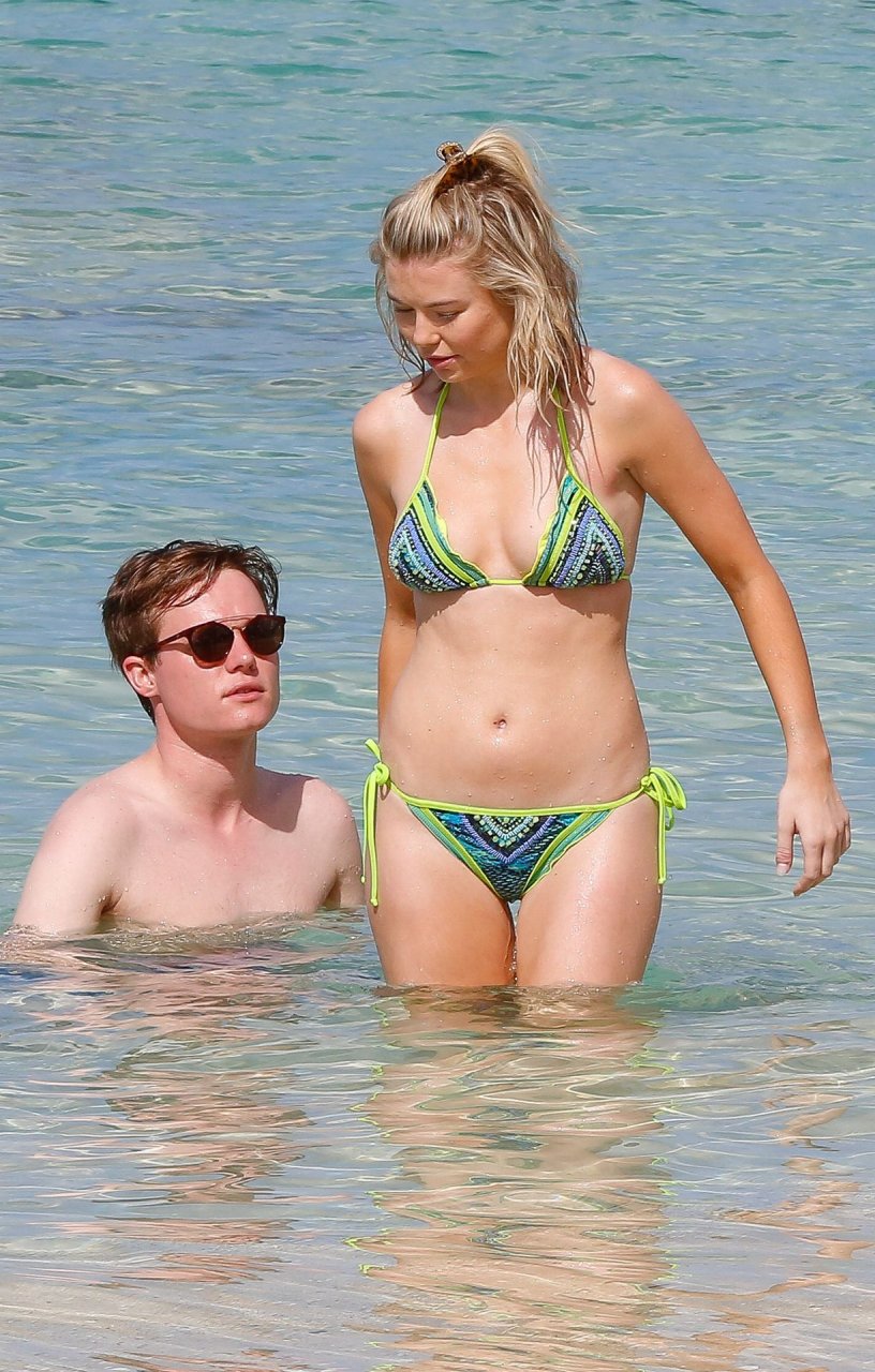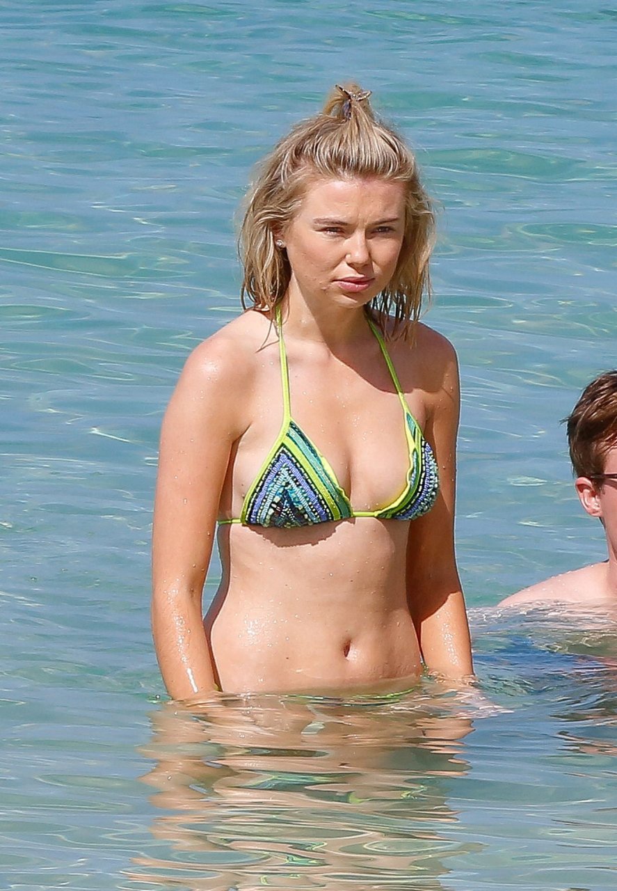 Georgia “Toff” Toffolo, Королева Джунглей, была замечена на пляже в крошечном зелёном бикини во время отпуска на Барбадосе, 01/07/2019.
