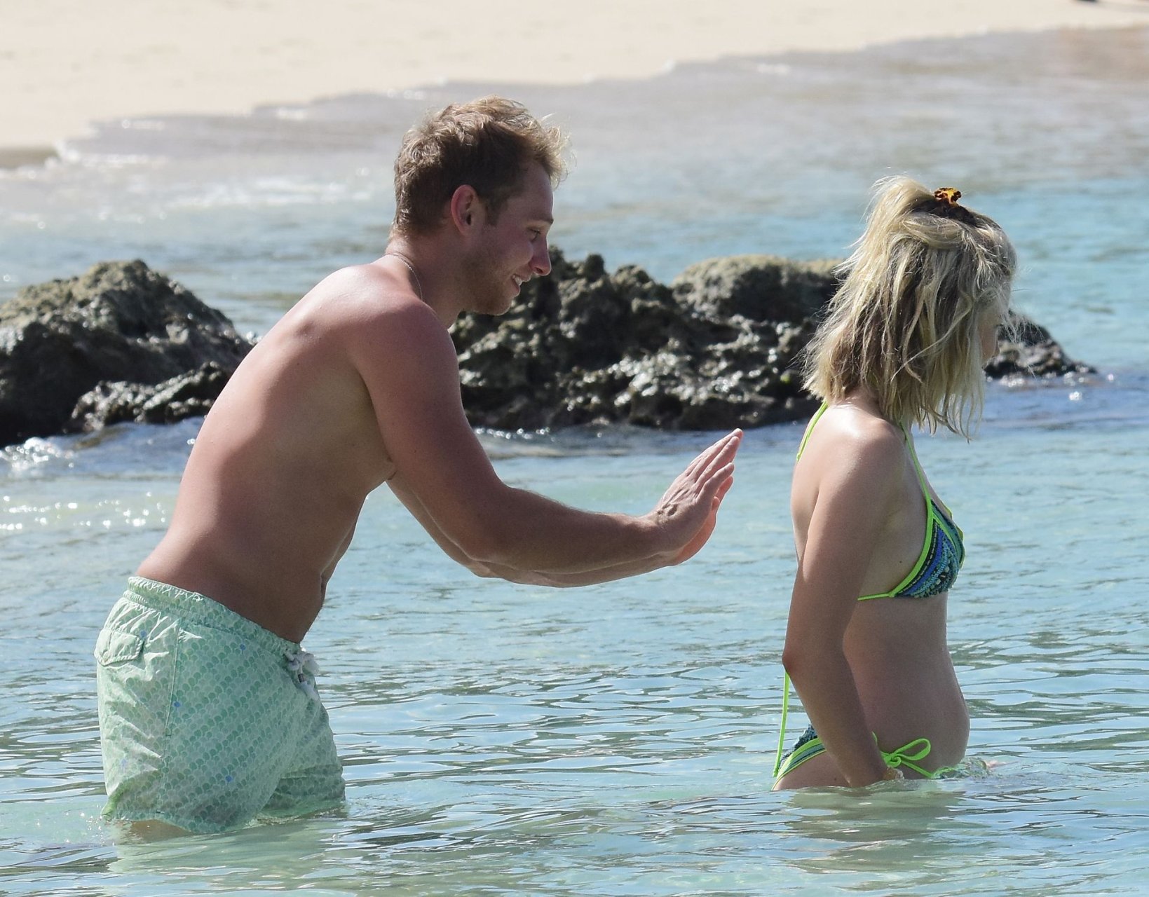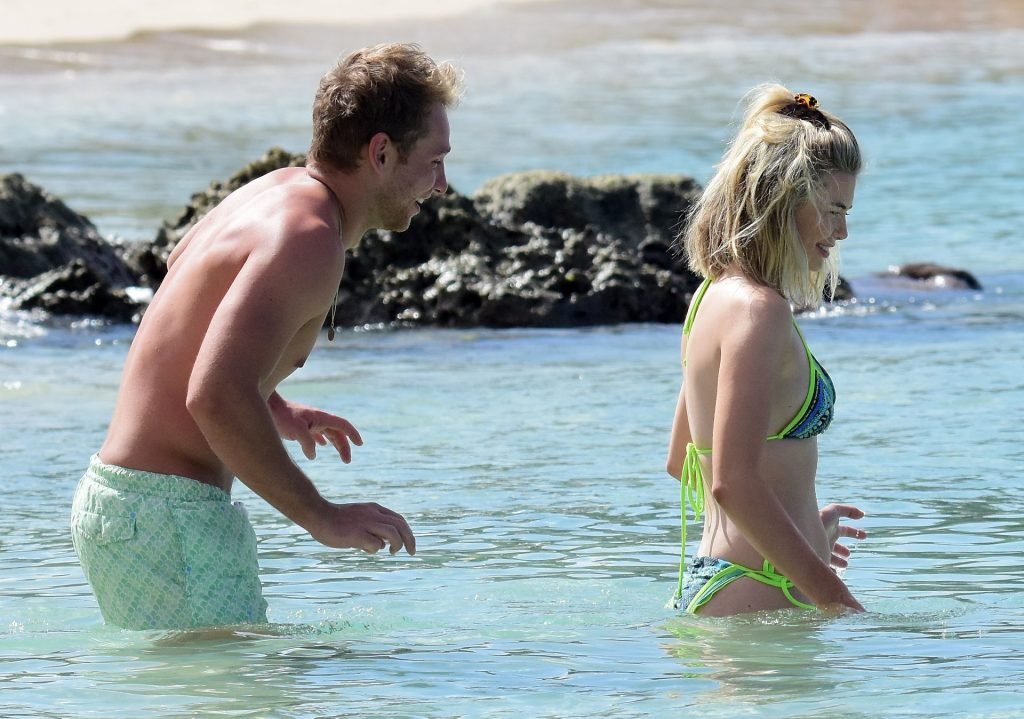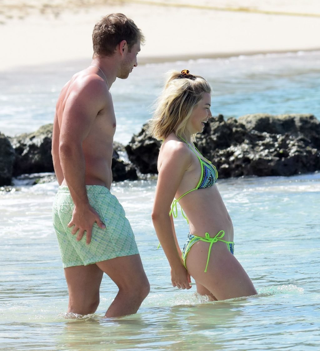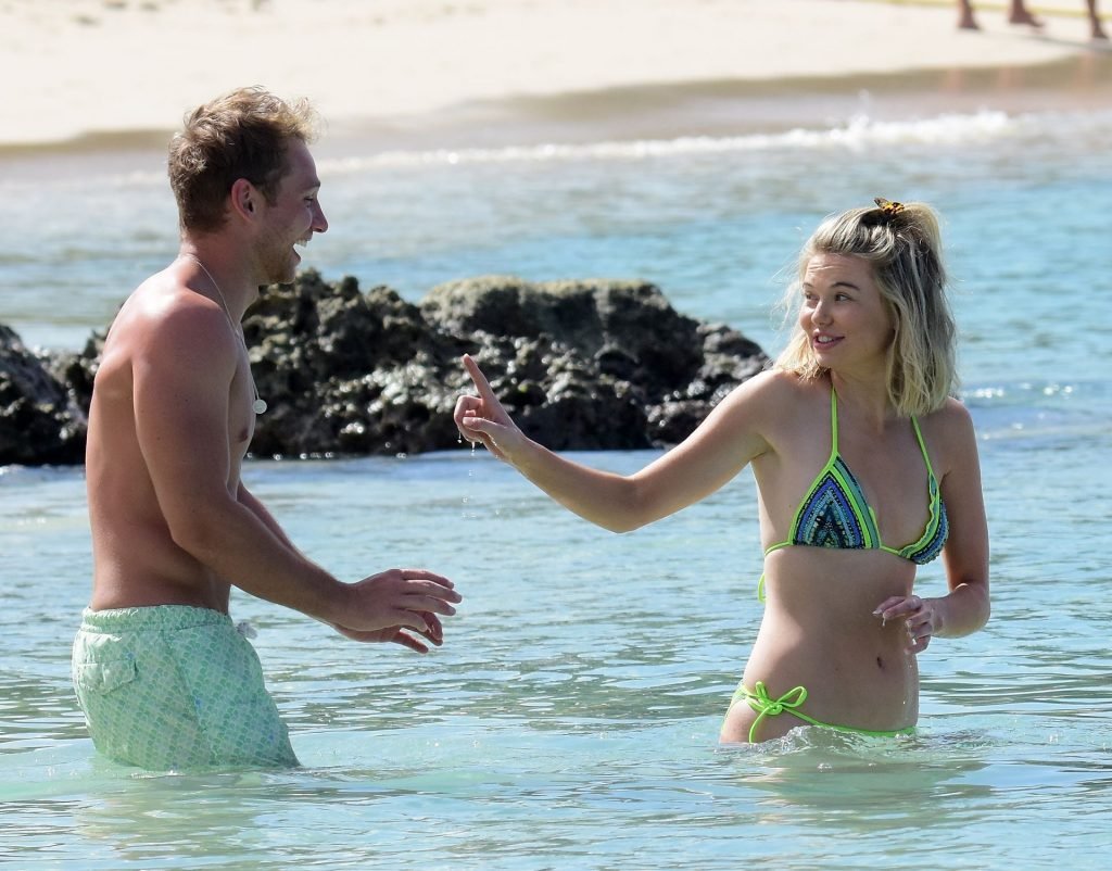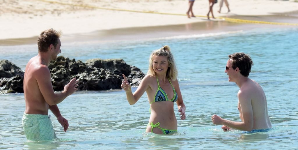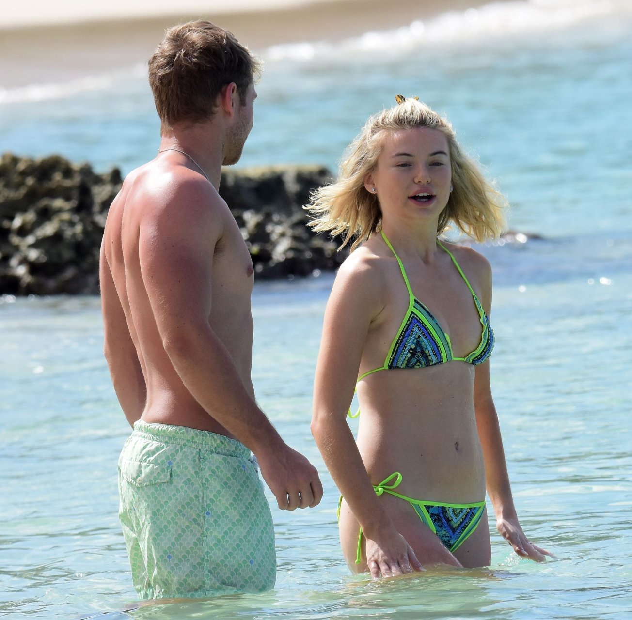 Georgia “Toff” Toffolo, Королева Джунглей, была замечена на пляже в крошечном зелёном бикини во время отпуска на Барбадосе, 01/07/2019.