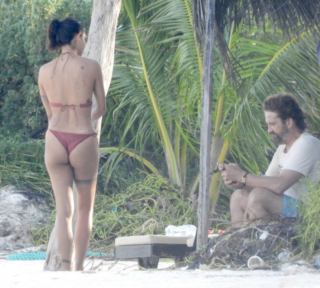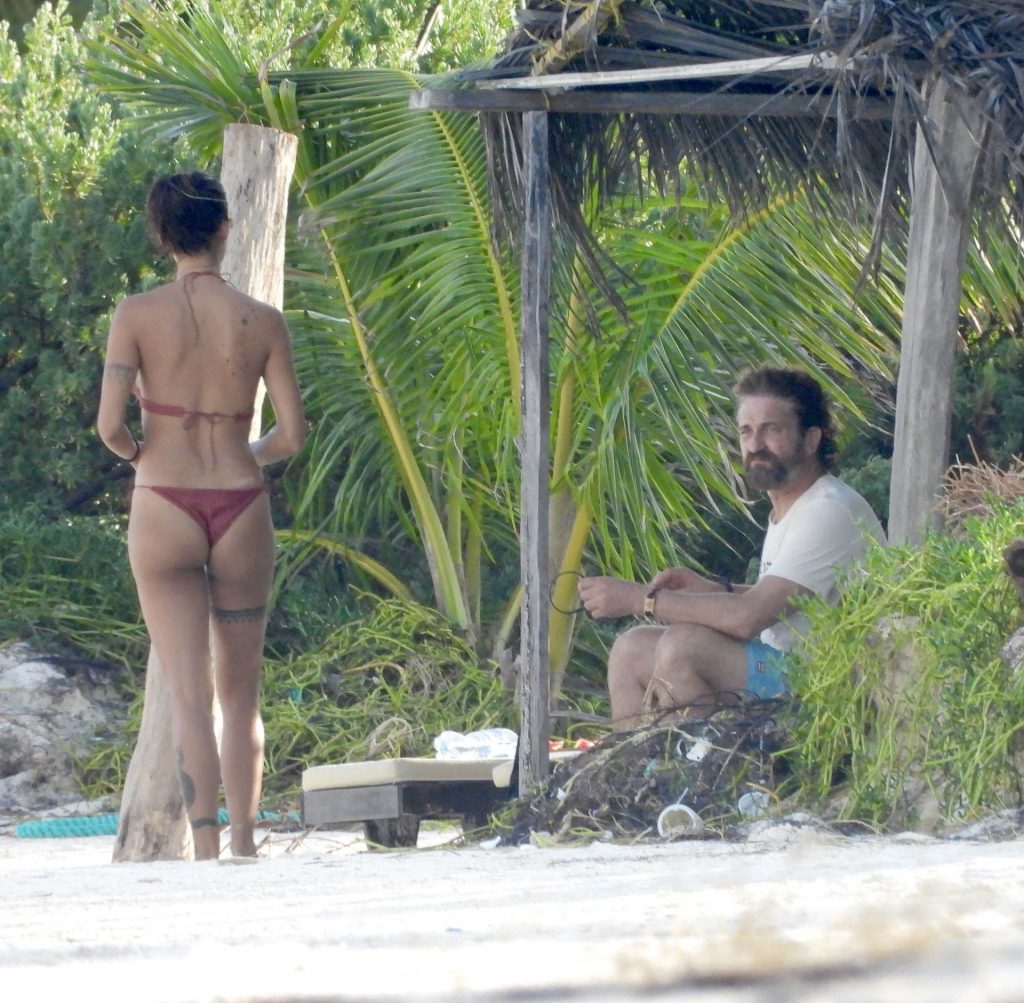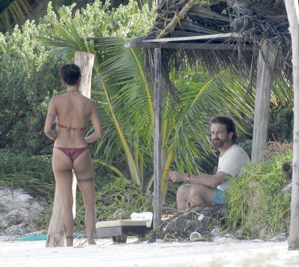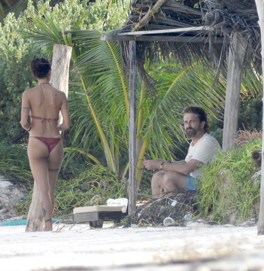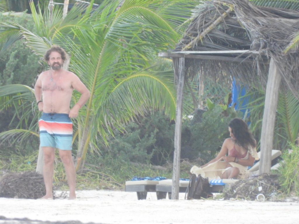 Джерард Батлер выглядел в отличной форме, когда он отправился на пляж в Мексике с загадочной женщиной, 18.11.2020.