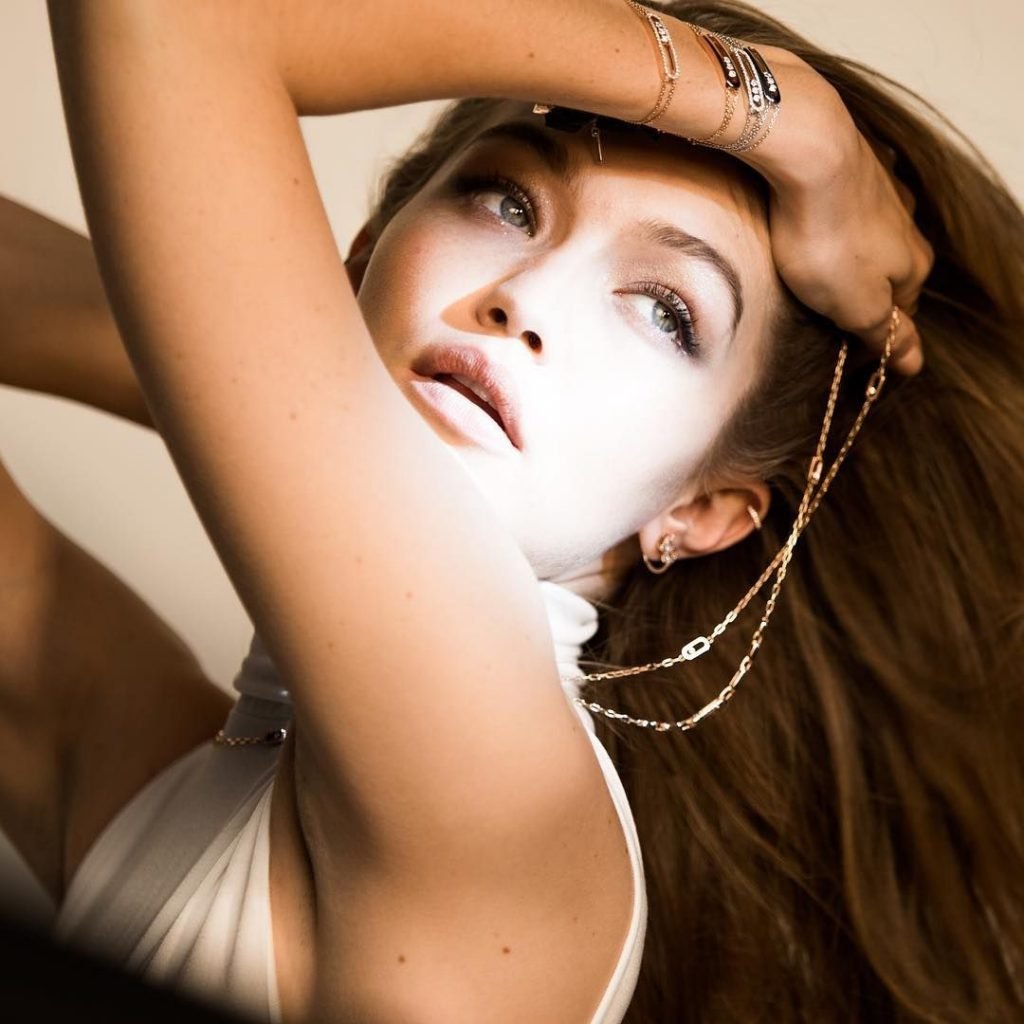 Модель Джиджи Хадид (23) представляет новую коллекцию украшений Messika (ноябрь-декабрь 2018).