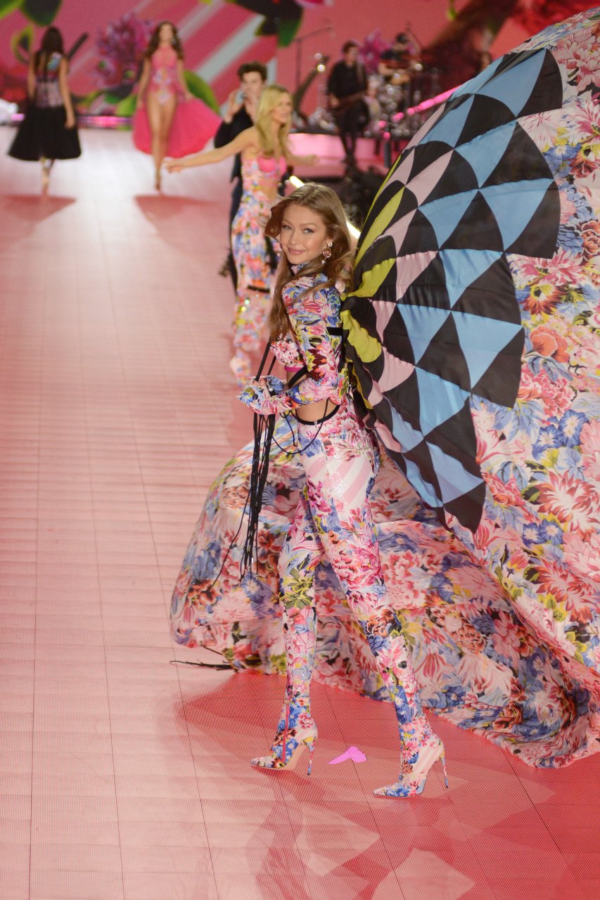 Сестра Беллы Хадид, модель Елена “Джиджи” Хадид выходит на подиум на шоу Victoria’s Secret Fashion Show 2018 в Нью-Йорке, 08.11.2018 + сексуальные фото с камелто от after party.
