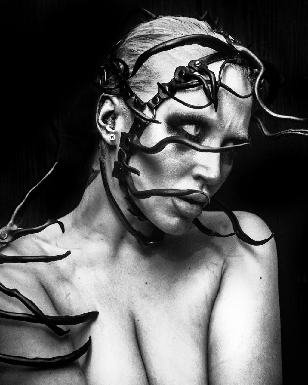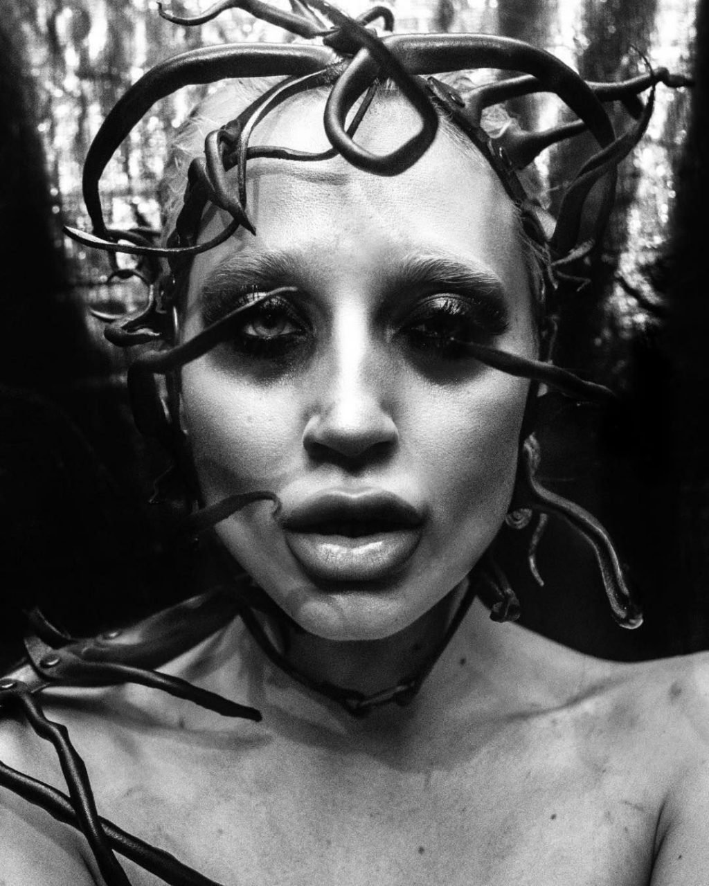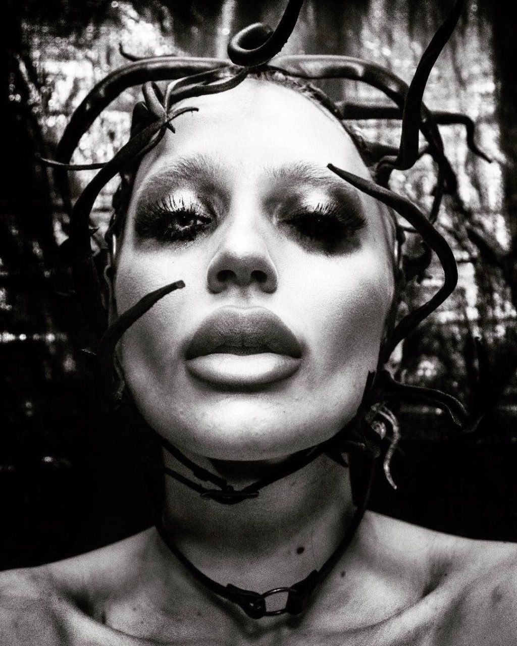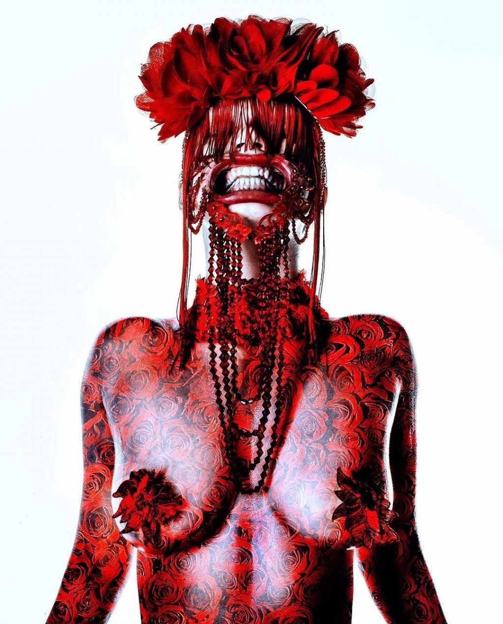 Гина известна своими шокирующими и провокационными фотосессиями. Эта женщина особенно сочетает красоту и бесчестие: странные наряды, загадочный макияж, зловещие татуировки. У Гины есть татуировка на языке. Внешность Гины Харрисон просто потрясающая. У неё большая грудь, сексуальная попа и невероятно тонкая талия, и она не скрывает от поклонников использование пластической хирургии.