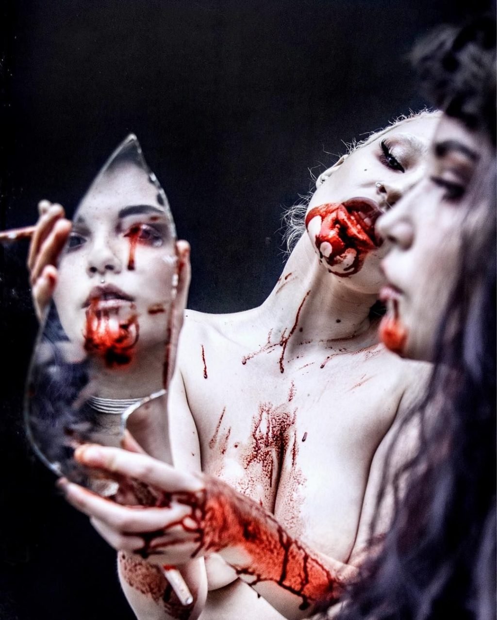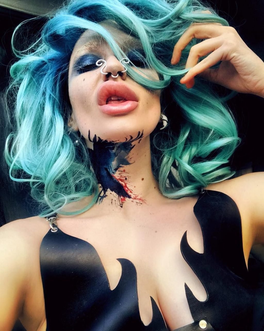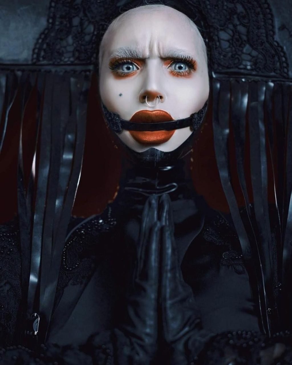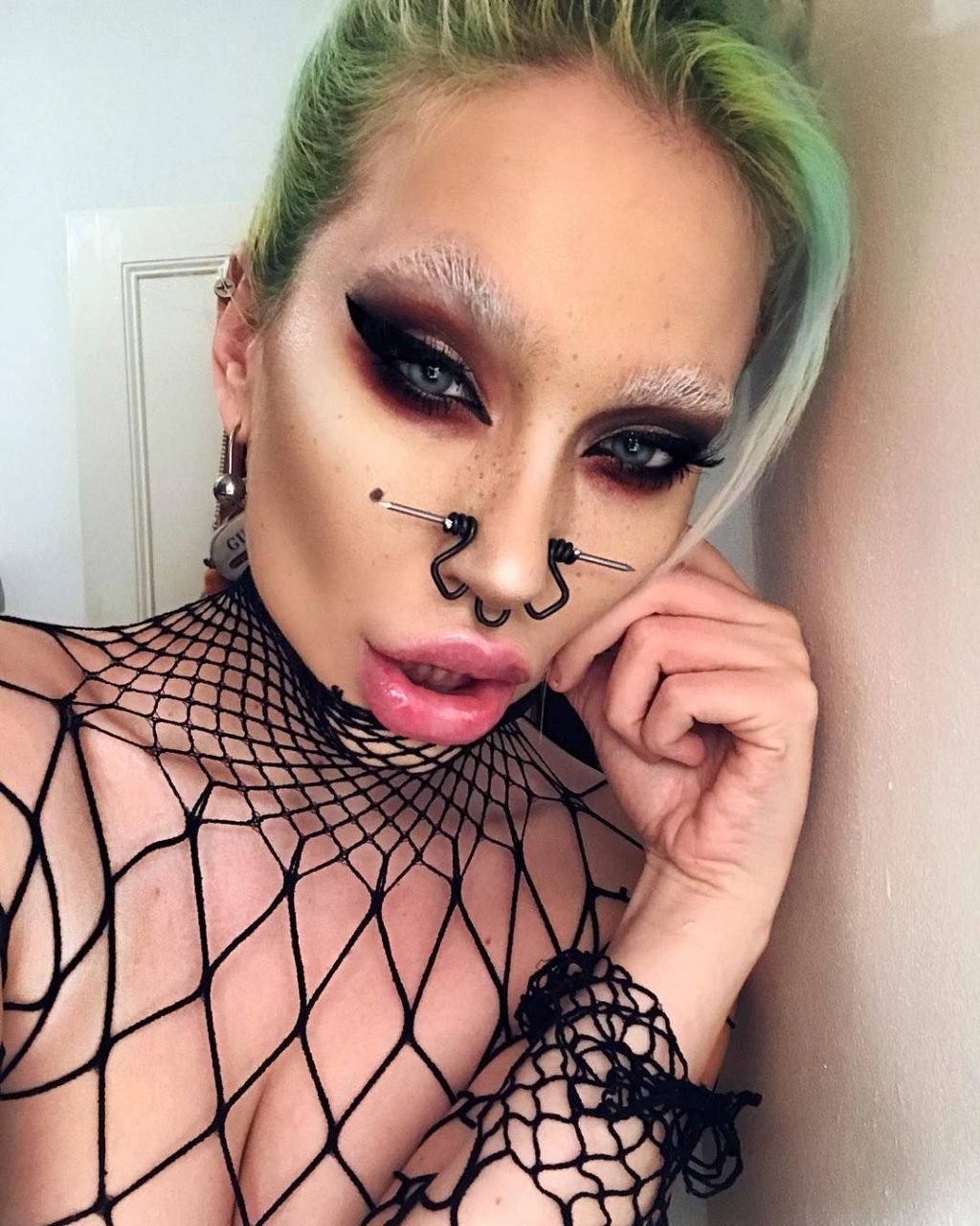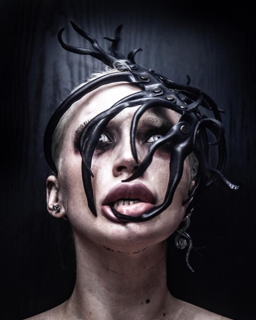 Гина известна своими шокирующими и провокационными фотосессиями. Эта женщина особенно сочетает красоту и бесчестие: странные наряды, загадочный макияж, зловещие татуировки. У Гины есть татуировка на языке. Внешность Гины Харрисон просто потрясающая. У неё большая грудь, сексуальная попа и невероятно тонкая талия, и она не скрывает от поклонников использование пластической хирургии.