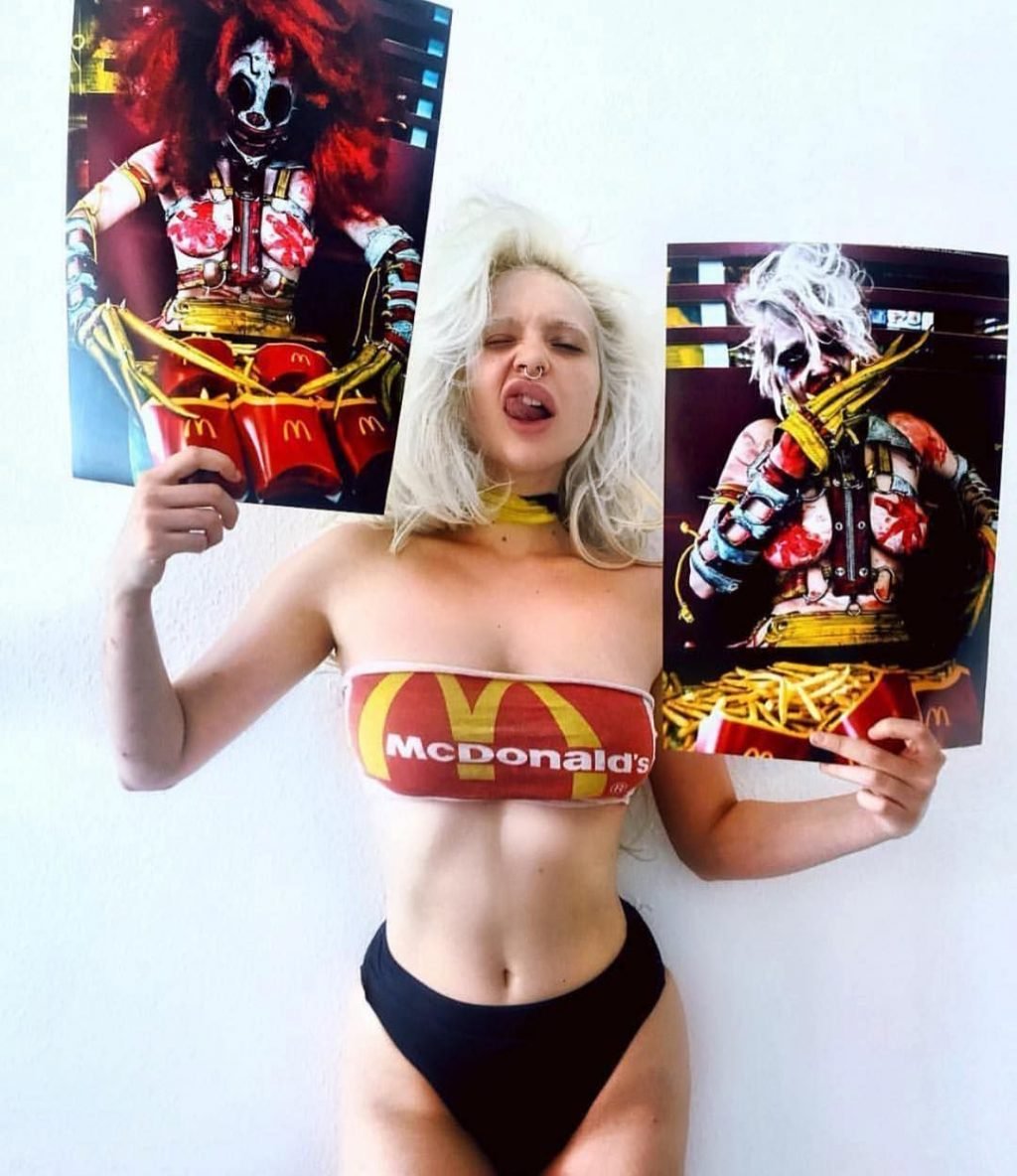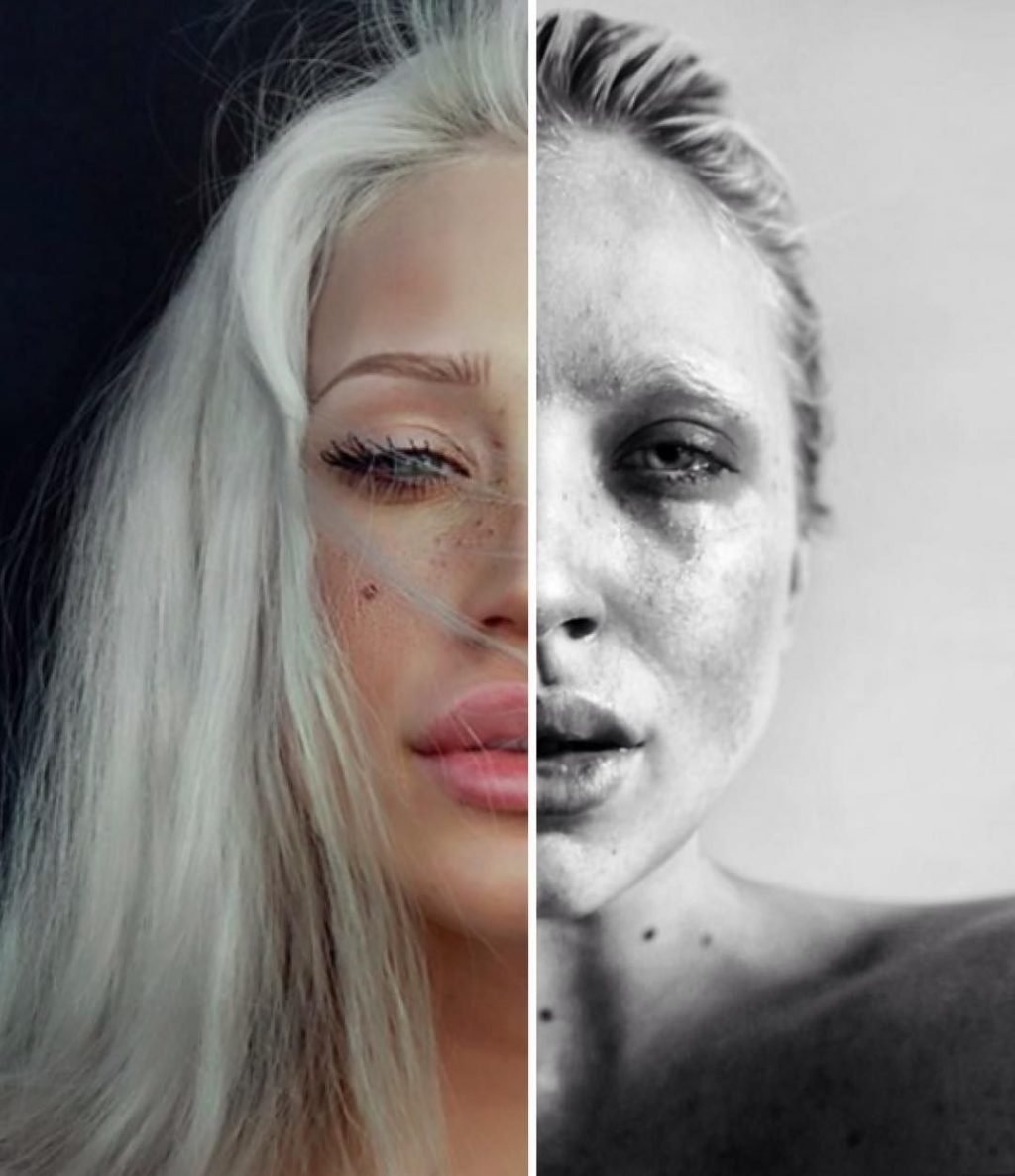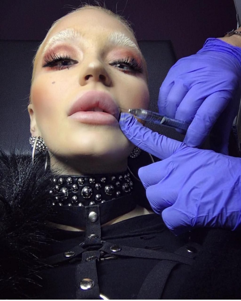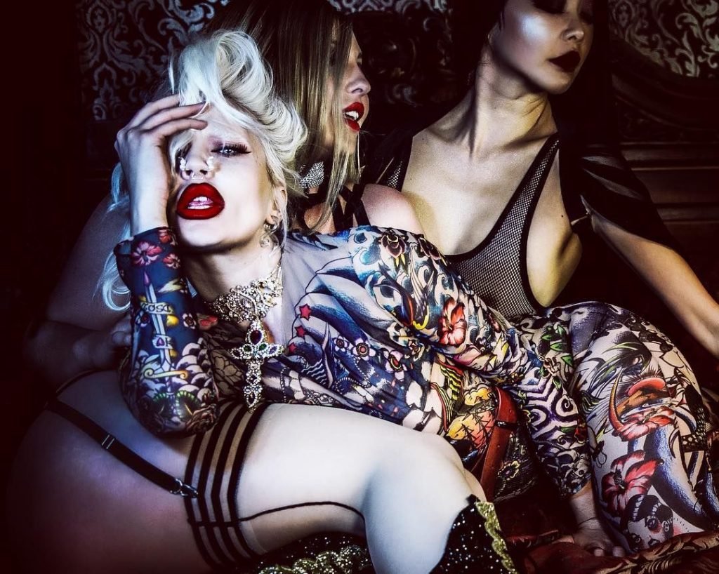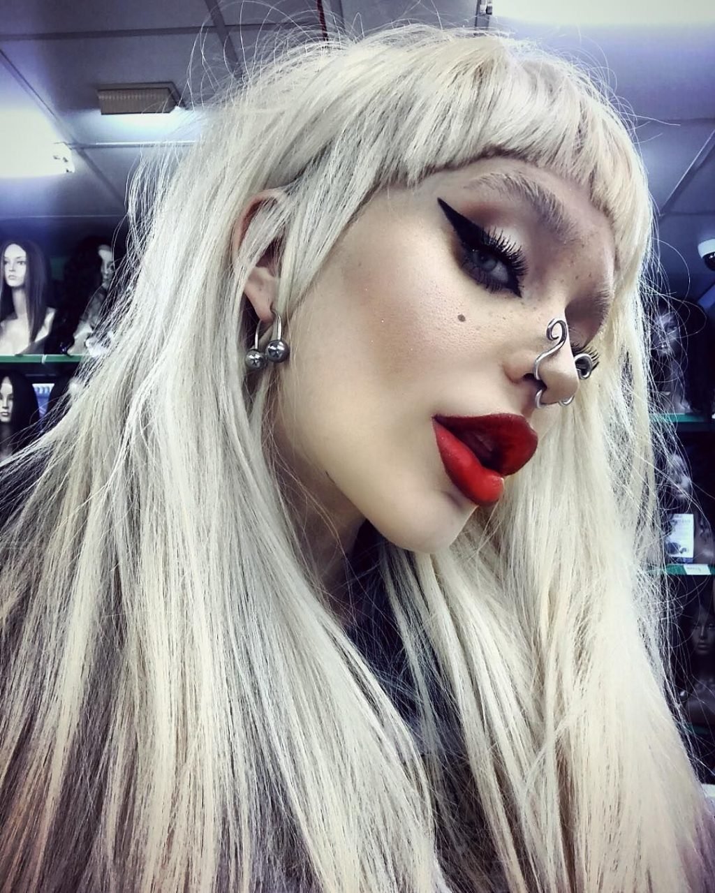 Гина известна своими шокирующими и провокационными фотосессиями. Эта женщина особенно сочетает красоту и бесчестие: странные наряды, загадочный макияж, зловещие татуировки. У Гины есть татуировка на языке. Внешность Гины Харрисон просто потрясающая. У неё большая грудь, сексуальная попа и невероятно тонкая талия, и она не скрывает от поклонников использование пластической хирургии.