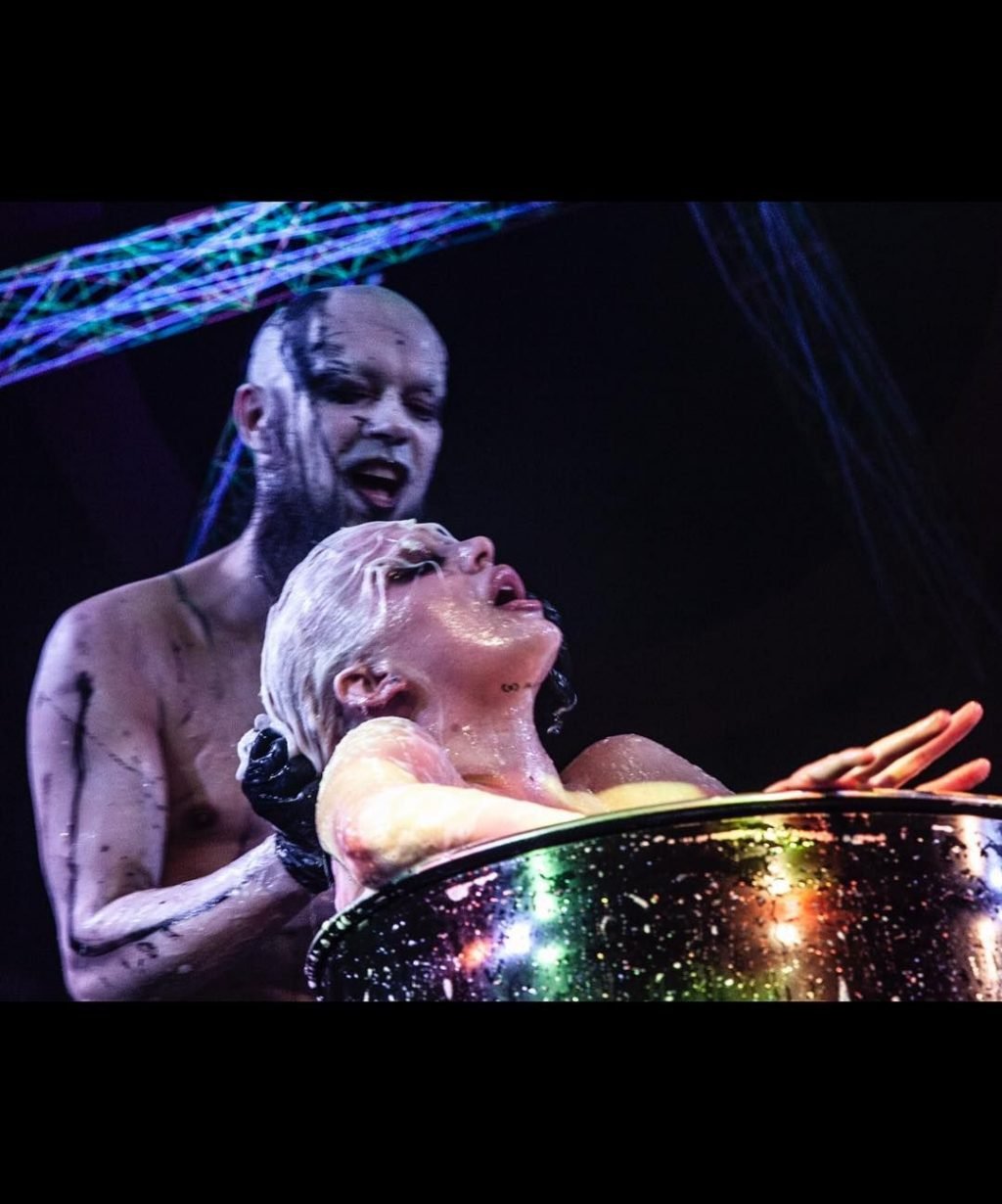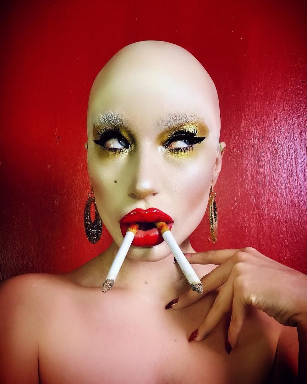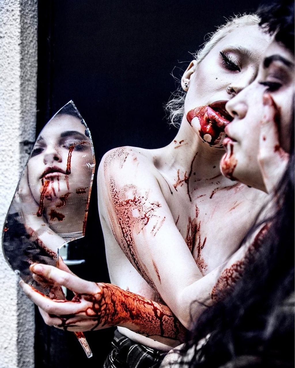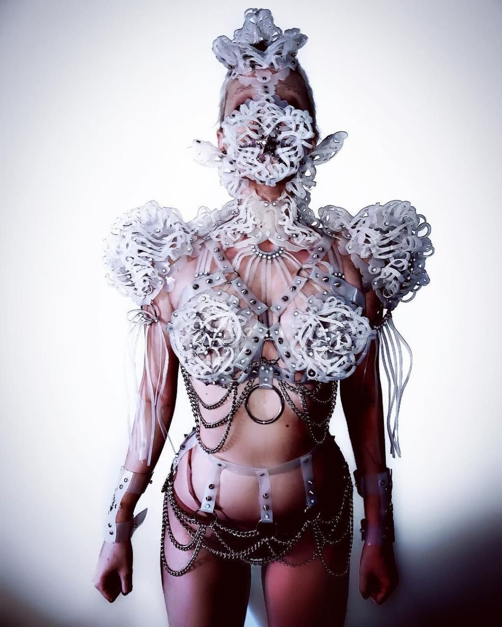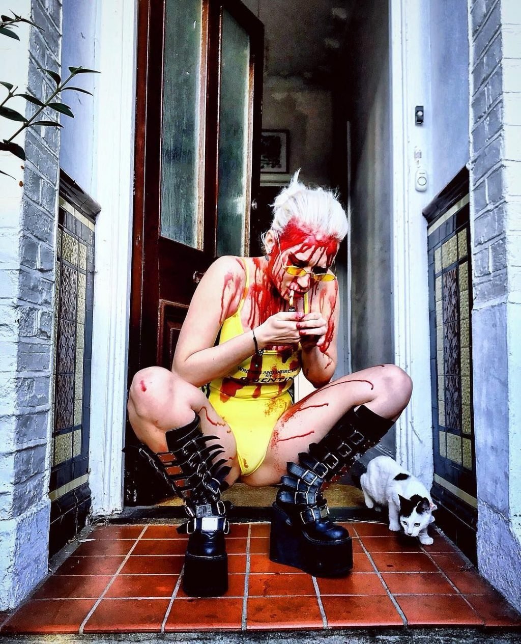 Гина известна своими шокирующими и провокационными фотосессиями. Эта женщина особенно сочетает красоту и бесчестие: странные наряды, загадочный макияж, зловещие татуировки. У Гины есть татуировка на языке. Внешность Гины Харрисон просто потрясающая. У неё большая грудь, сексуальная попа и невероятно тонкая талия, и она не скрывает от поклонников использование пластической хирургии.