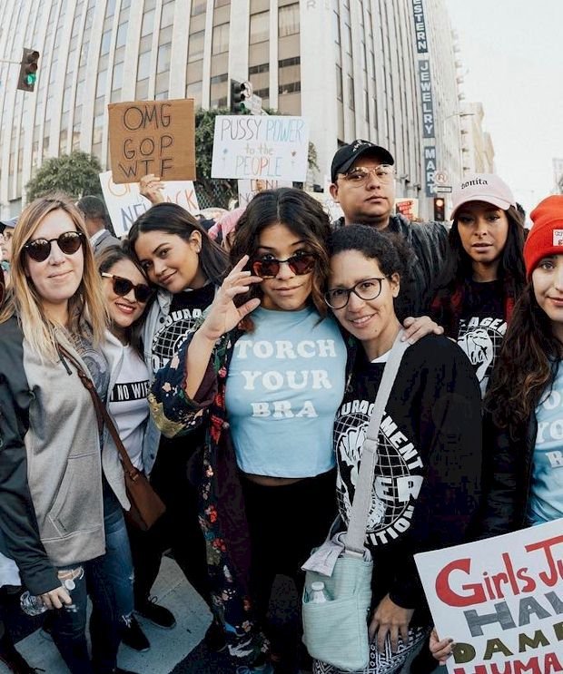 Гина Родригес сжигает свой бюстгальтер на Женском марше в Лос-Анджелесе (январь 2017). Гина Родригес — американская актриса (Джейн Дева (телесериал)). Возраст: 32 ((родилась 30 июля 1984)).