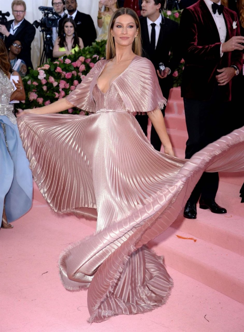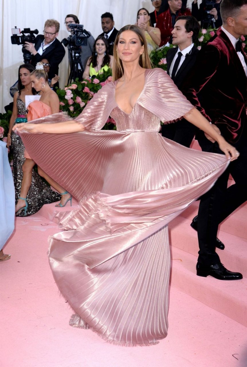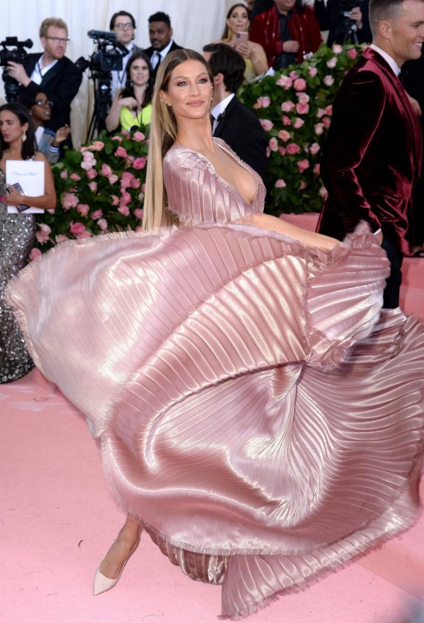 Бразильская супермодель Гизель Бундхен продемонстрировала свое декольте в красивом розовом платье на MET Gala 2019 в Нью-Йорке, 06.05.2019. Она появилась на розовой ковровой дорожке вместе с мужем, футболистом Томом Брэди.