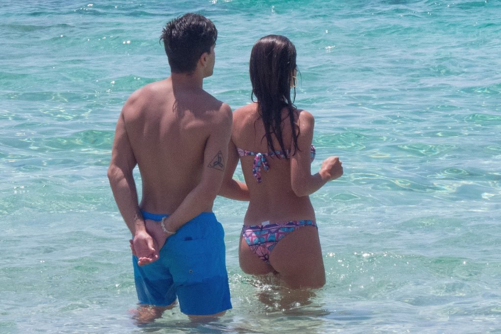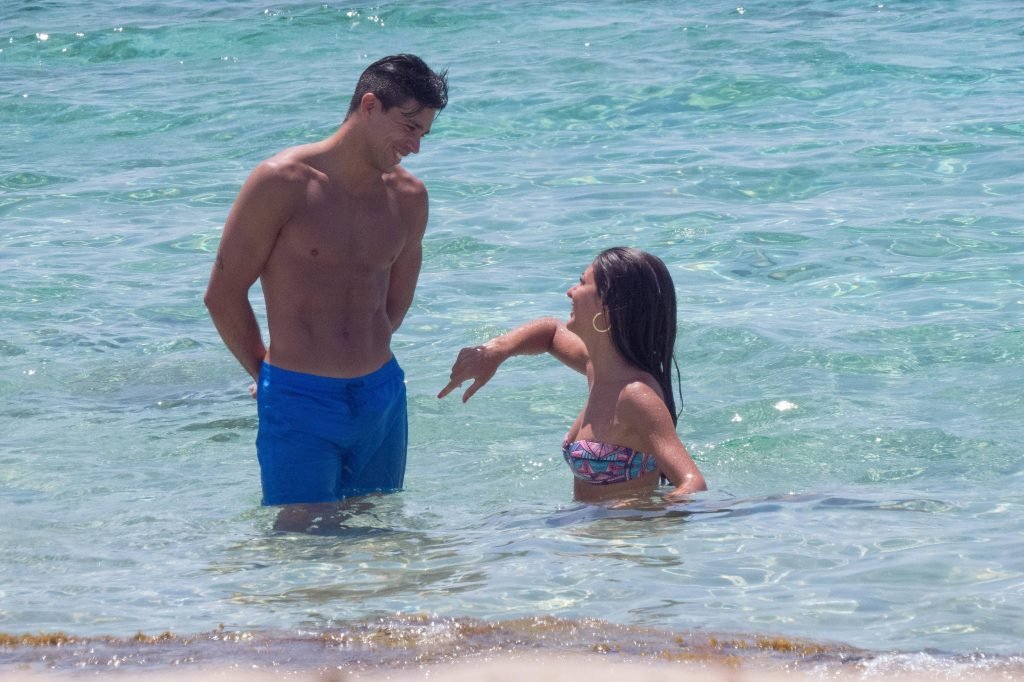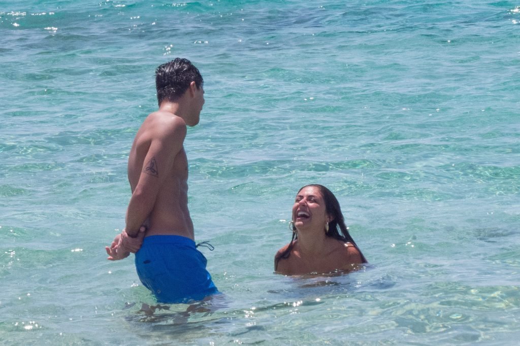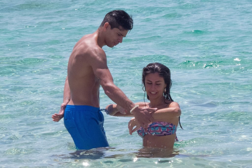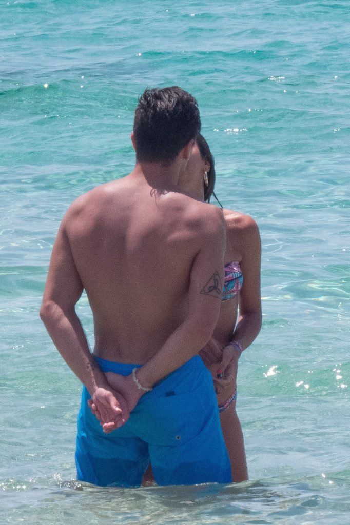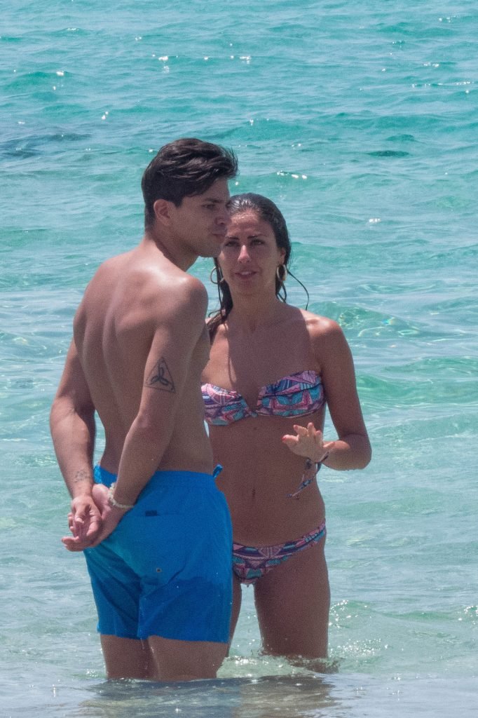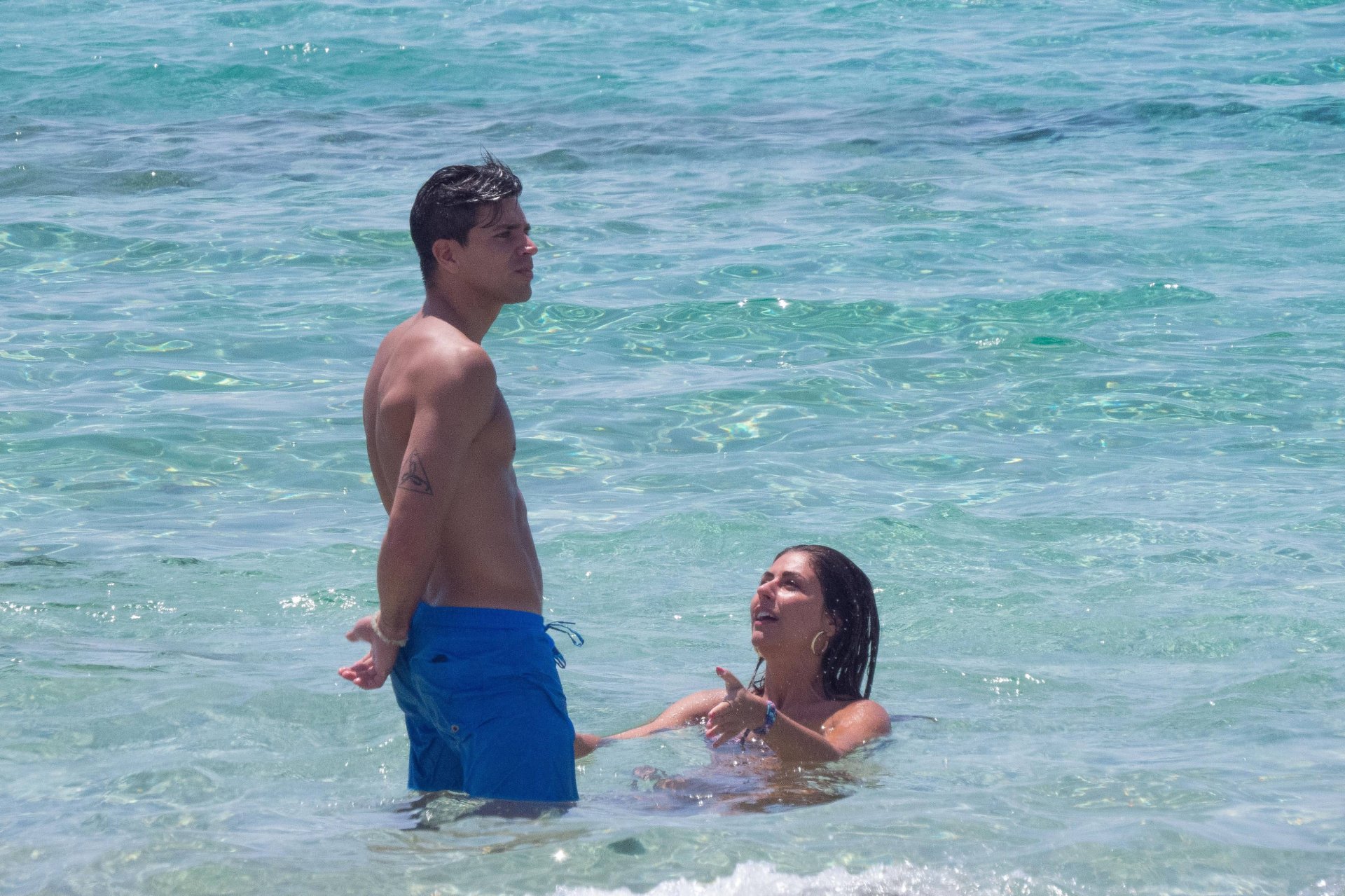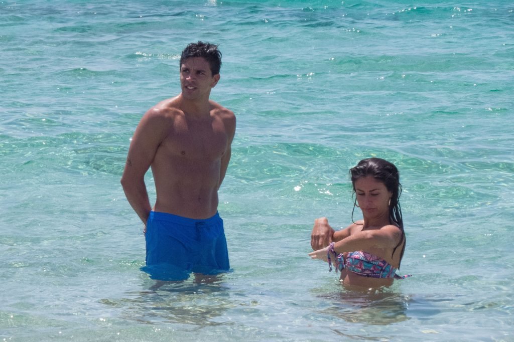 Джованни Пабло Симеоне (Фиорентина) и его девушка, итальянская модель и участница конкурса Мисс Италия 2013 Джулия Коппини, были замечены на пляже в Форментере, 26.06.2018.