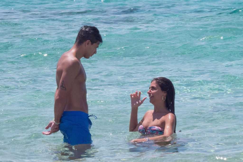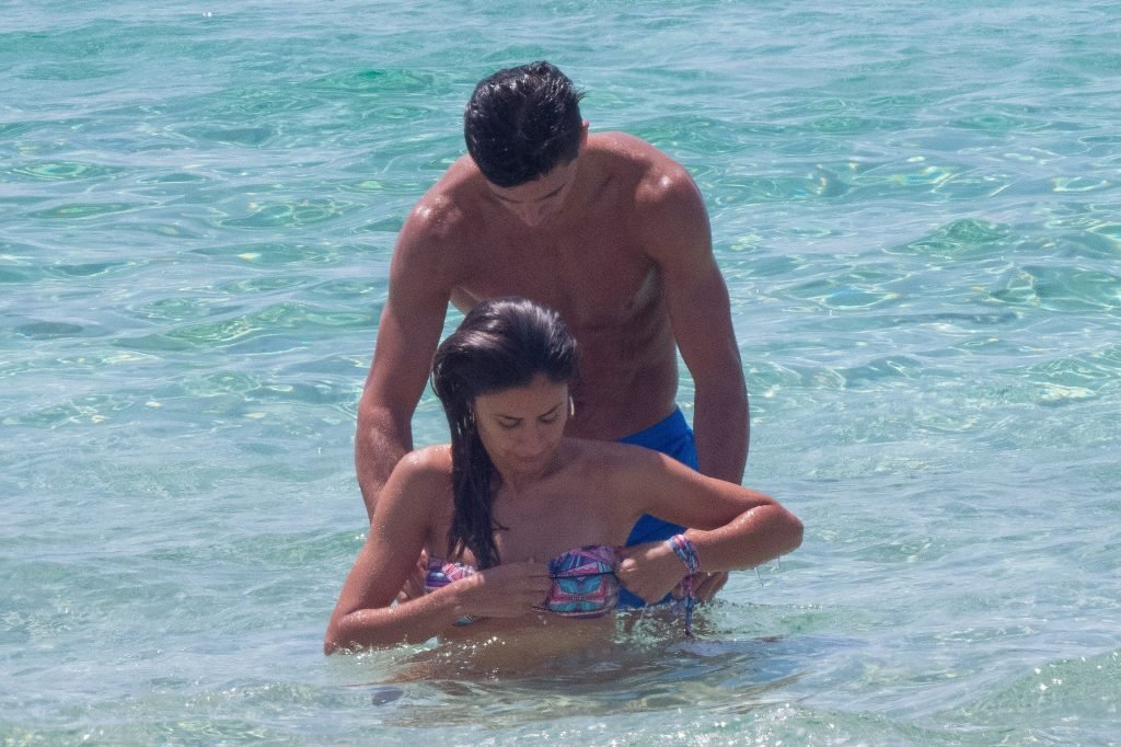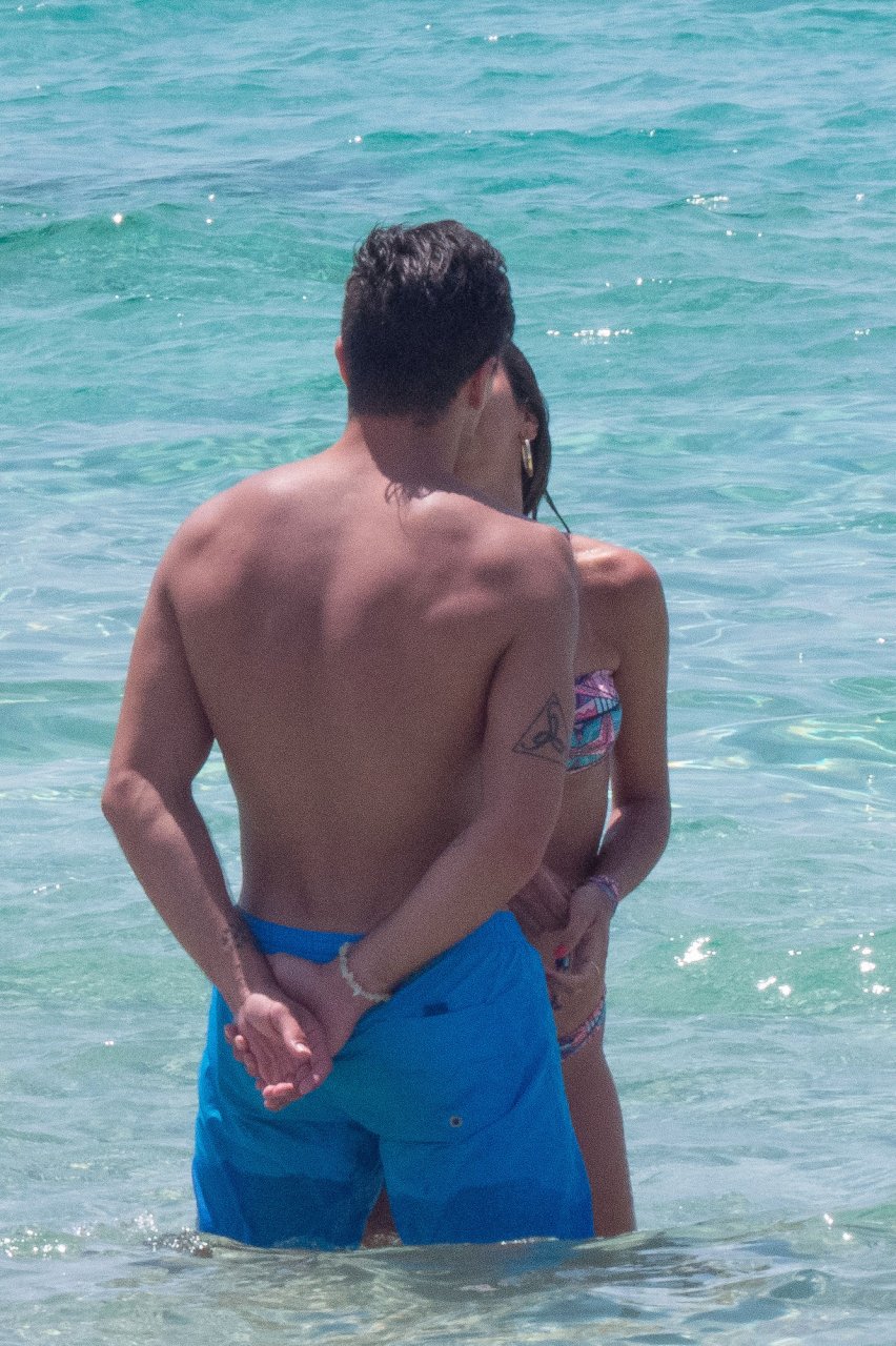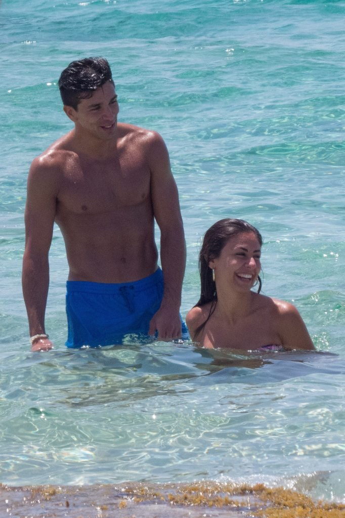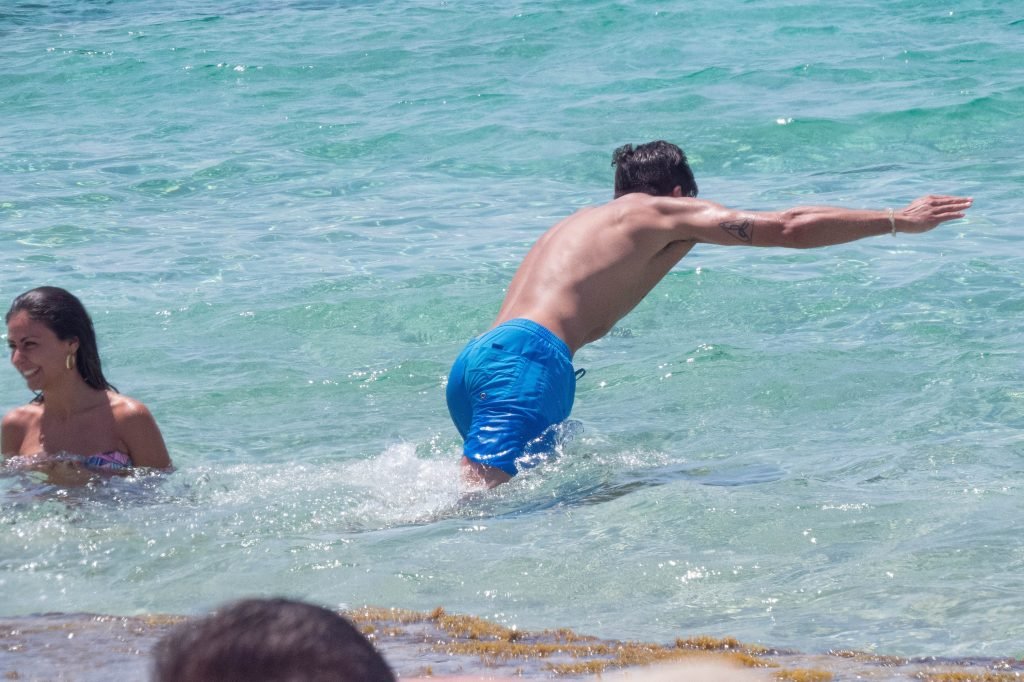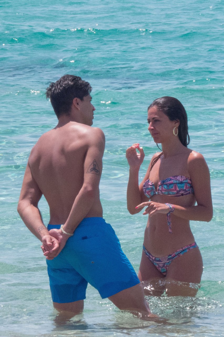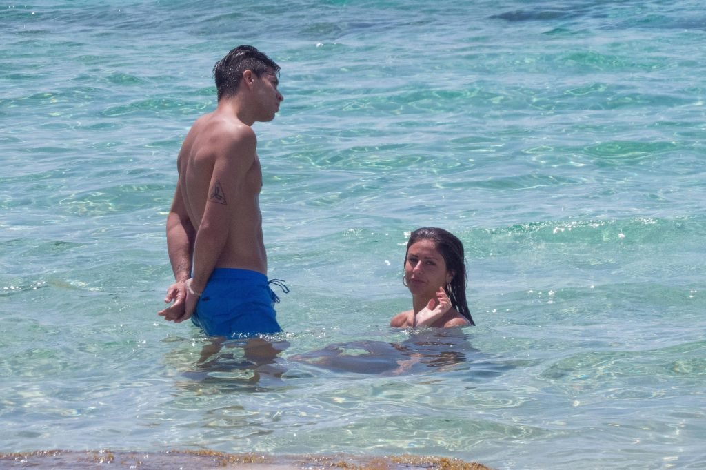 Джованни Пабло Симеоне (Фиорентина) и его девушка, итальянская модель и участница конкурса Мисс Италия 2013 Джулия Коппини, были замечены на пляже в Форментере, 26.06.2018.