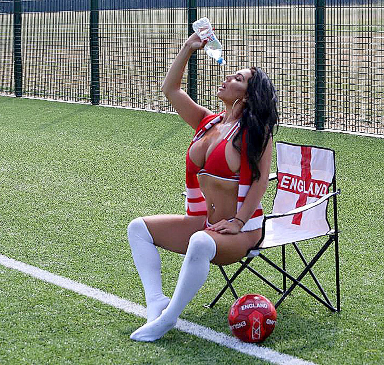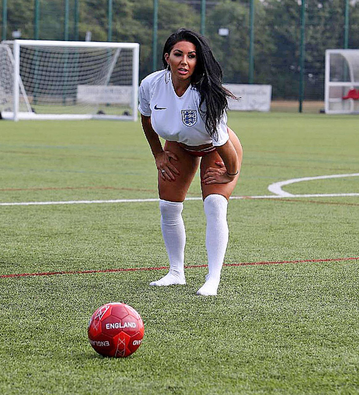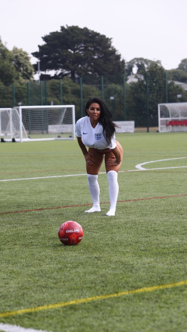 Потрясающая брюнетка Грейс Джей Тил из Линкольншира выразила свою непоколебимую поддержку Англии перед матчем чемпионата мира против Швеции (2-0), 07/06/2018. Грейс Джей Тил — 30-летняя международная модель.