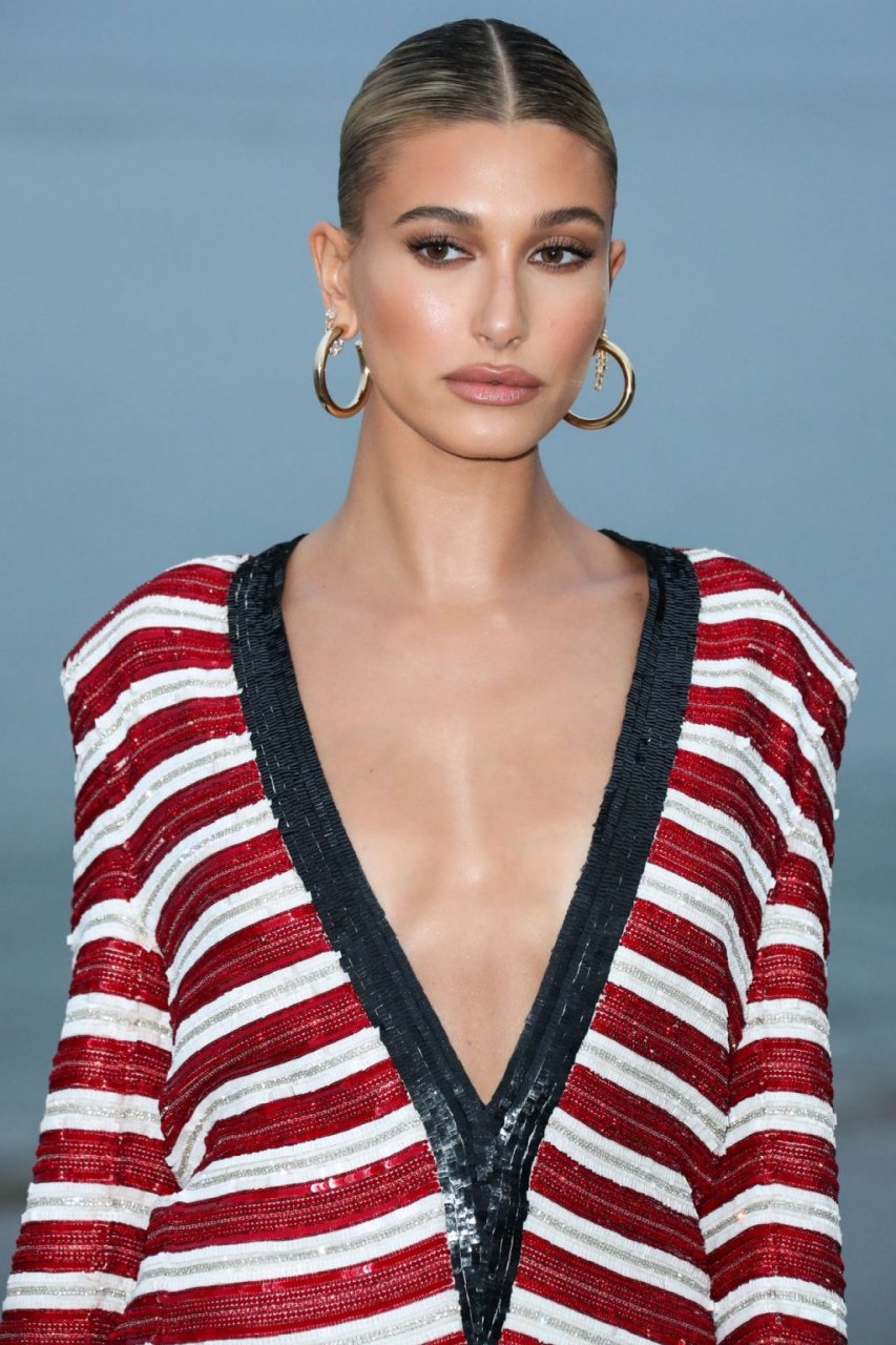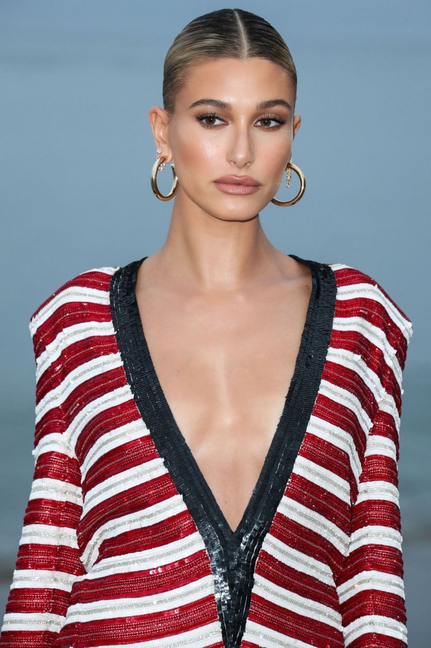 Хейли Роуд Болдуин Бибер прибывает на показ мужской коллекции Saint Laurent весна-лето 2020, который прошёл на пляже Парадайз Ков в Малибу, Лос-Анджелес, 06.06.2019.