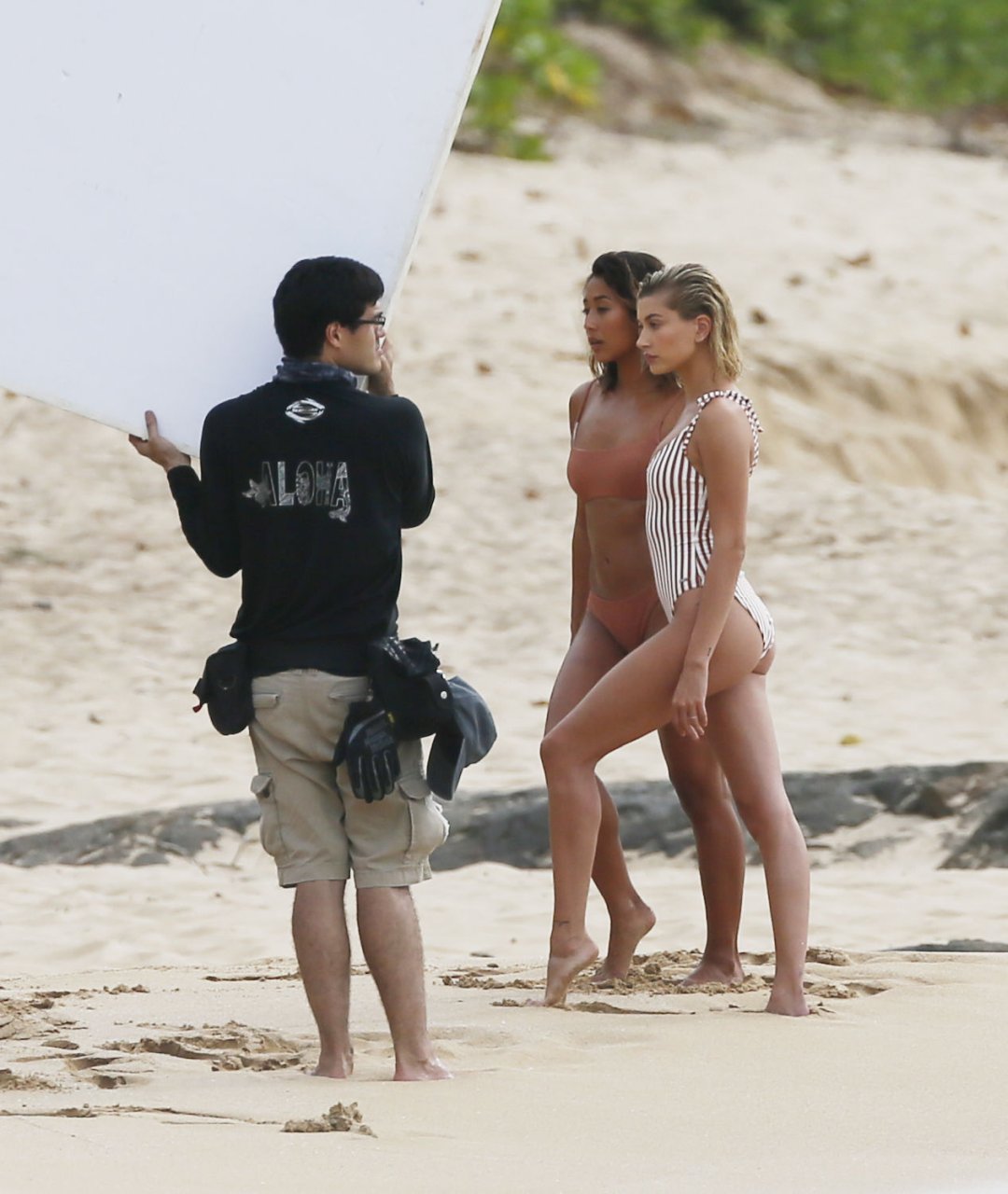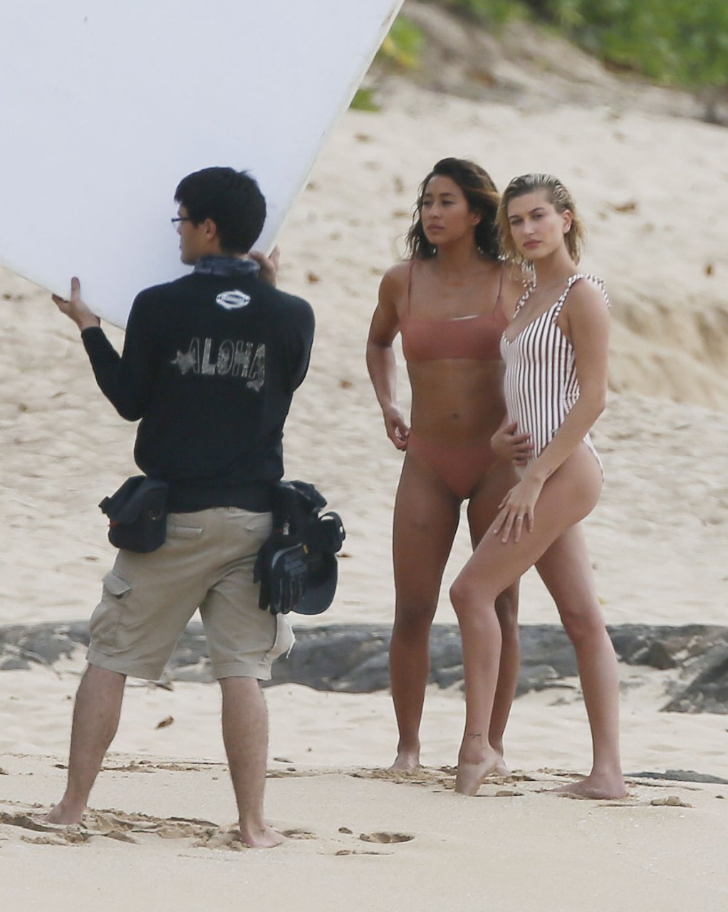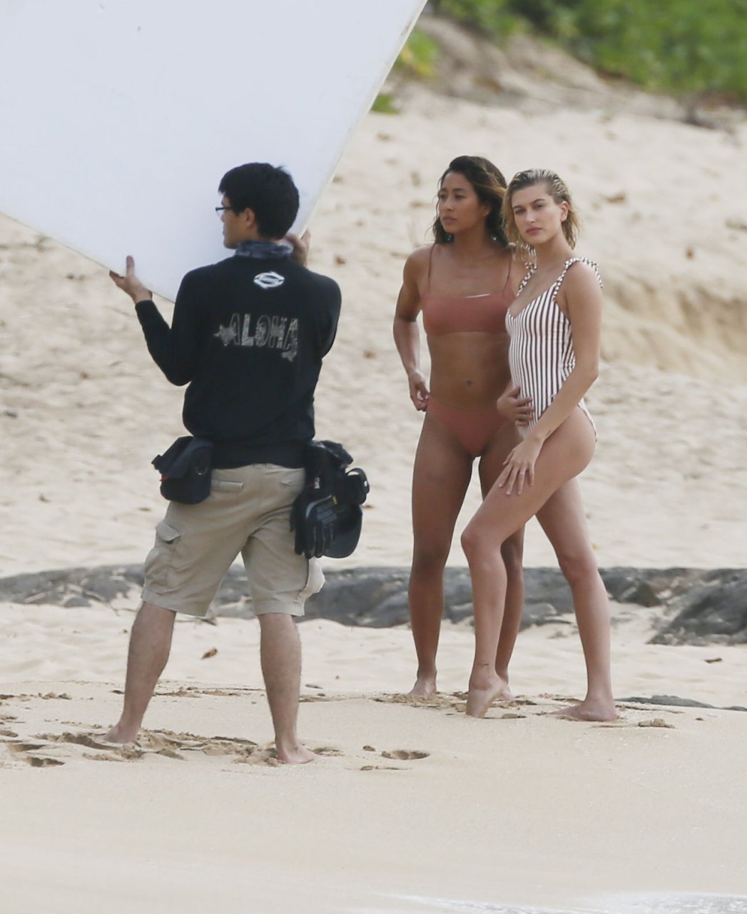 Хейли Болдуин поражает своей красотой на пляже на Гавайях, 31.05.2018. 21-летняя модель моды сменила полосатый цельный купальник на раздельный и в некоторых кадрах к ней присоединилась еще одна модель.