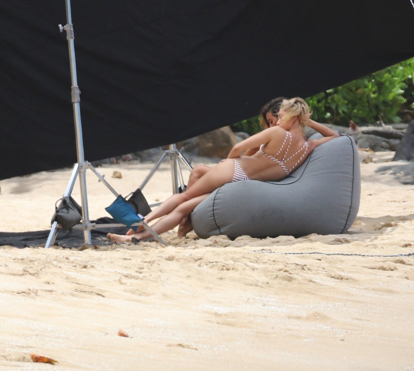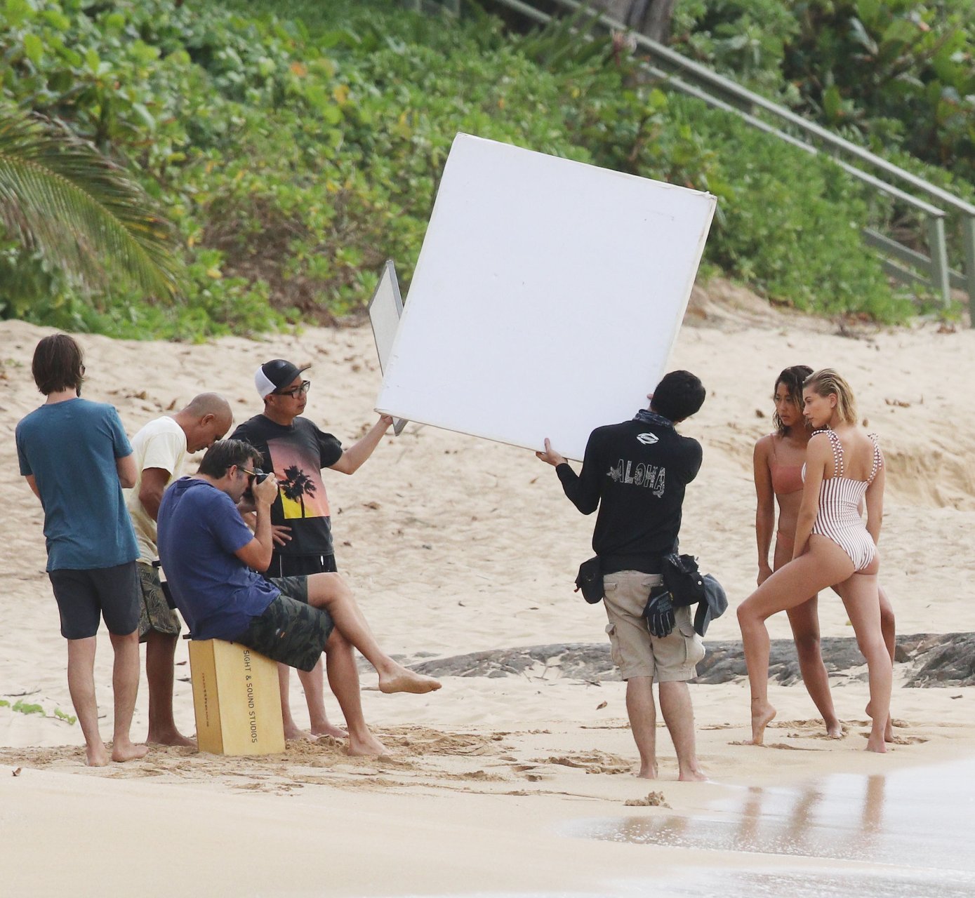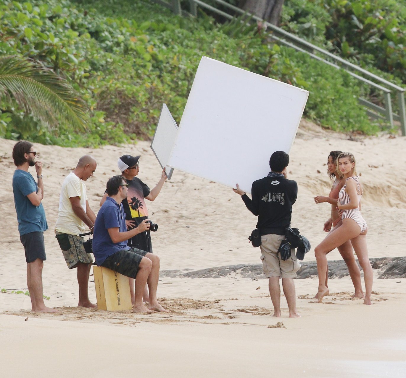 Хейли Болдуин поражает своей красотой на пляже на Гавайях, 31.05.2018. 21-летняя модель моды сменила полосатый цельный купальник на раздельный и в некоторых кадрах к ней присоединилась еще одна модель.