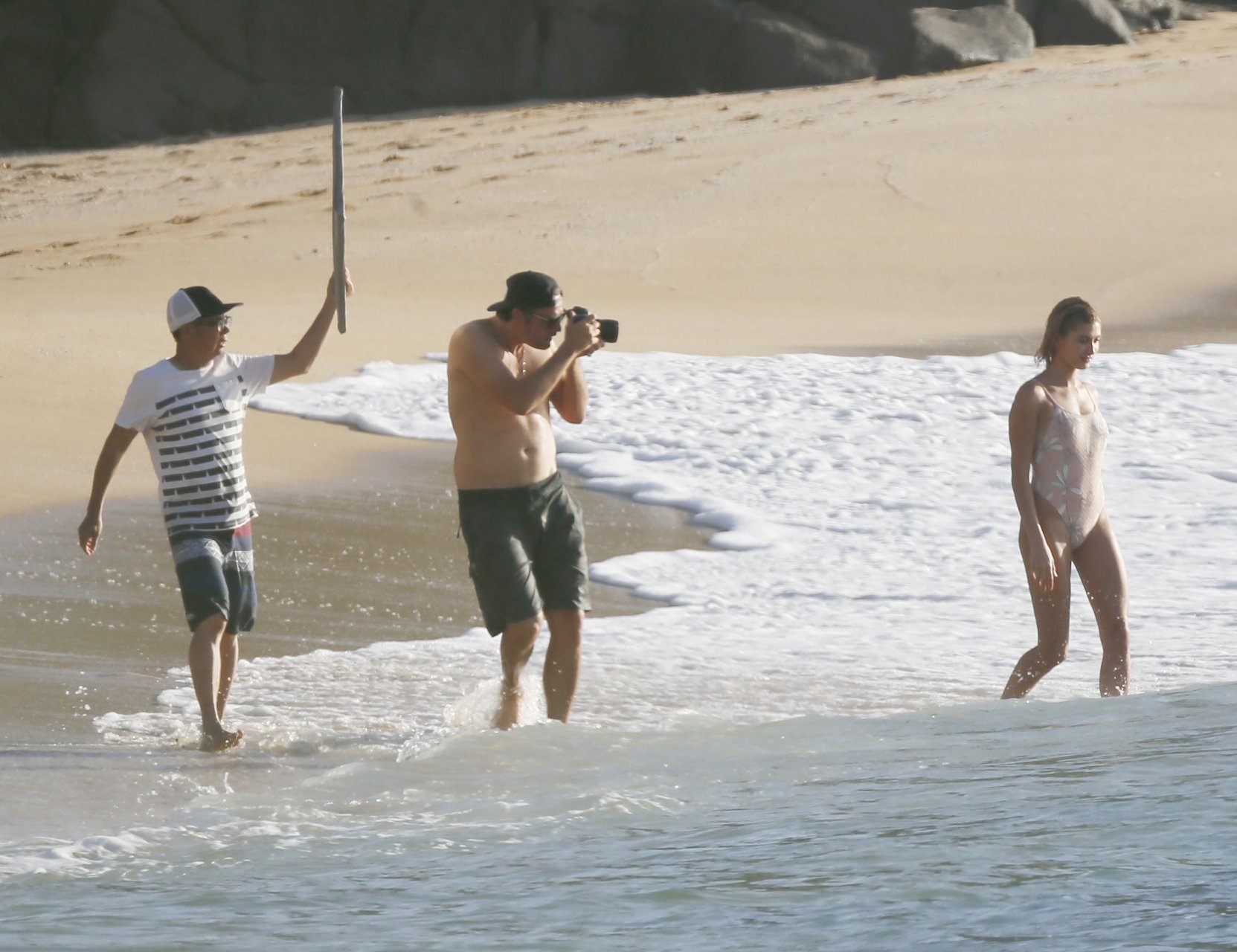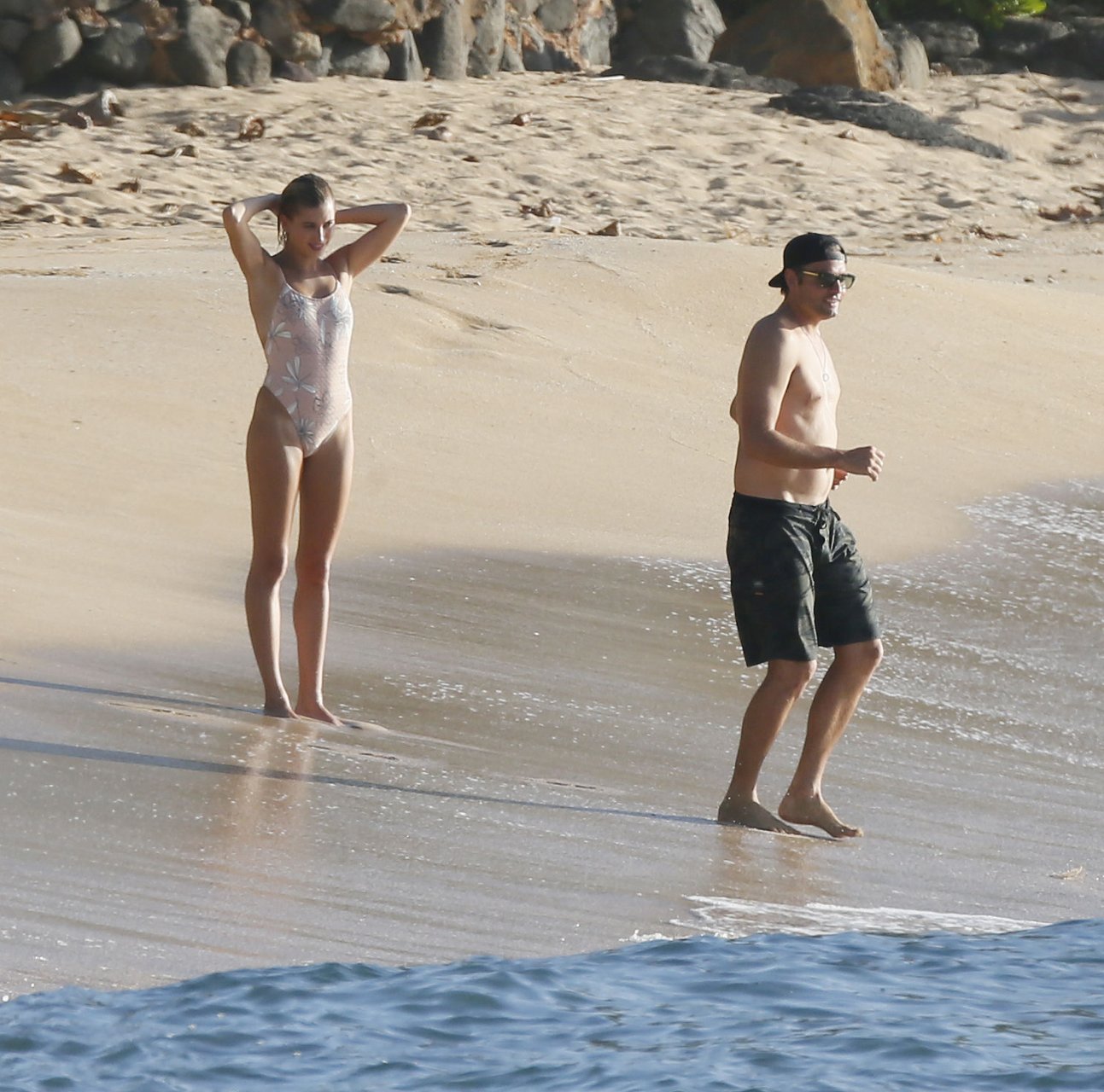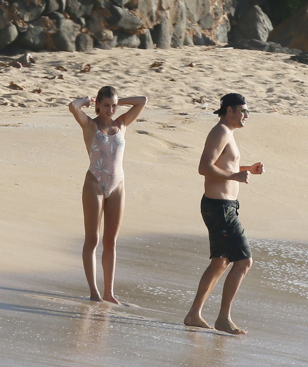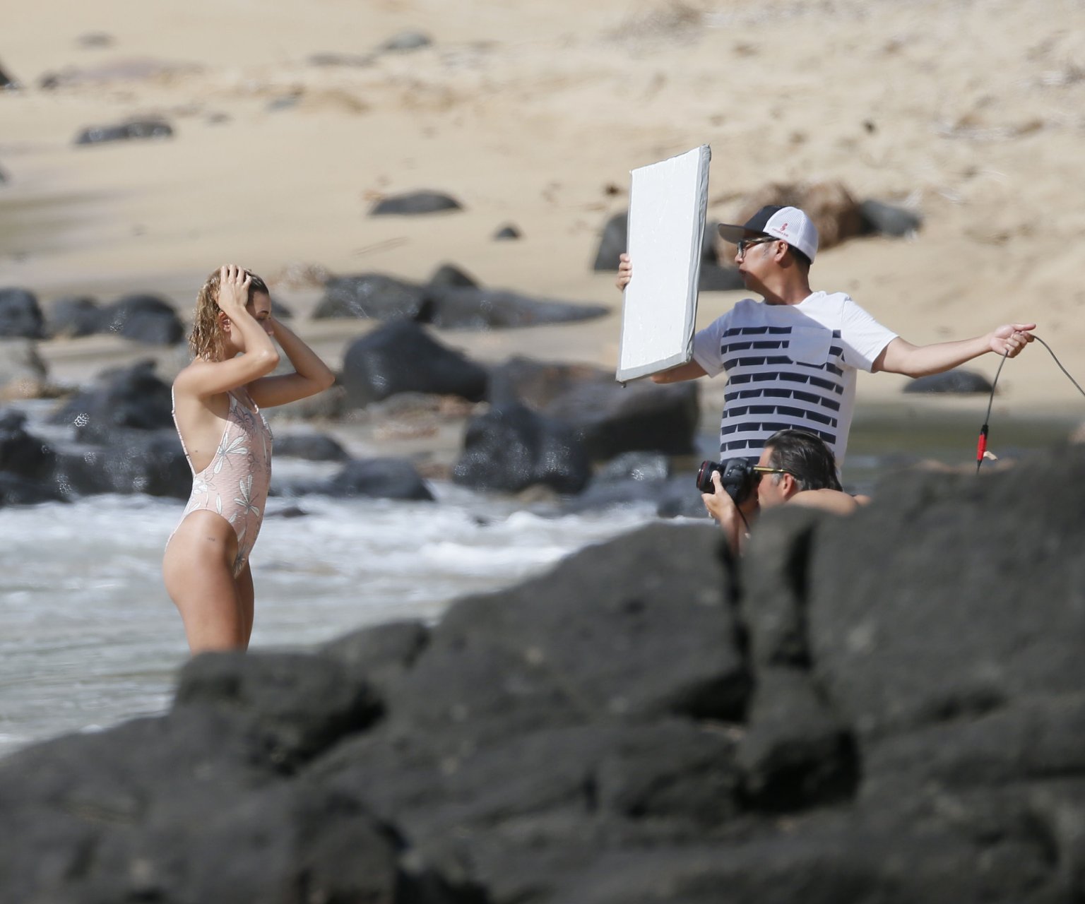 Хейли Болдуин отправилась на пляж на Гавайях для фотосессии, 30.05.2018. 21-летняя супермодель позировала в розовом слитном купальнике с цветочным принтом, резвясь в воде после съемок на пляже.