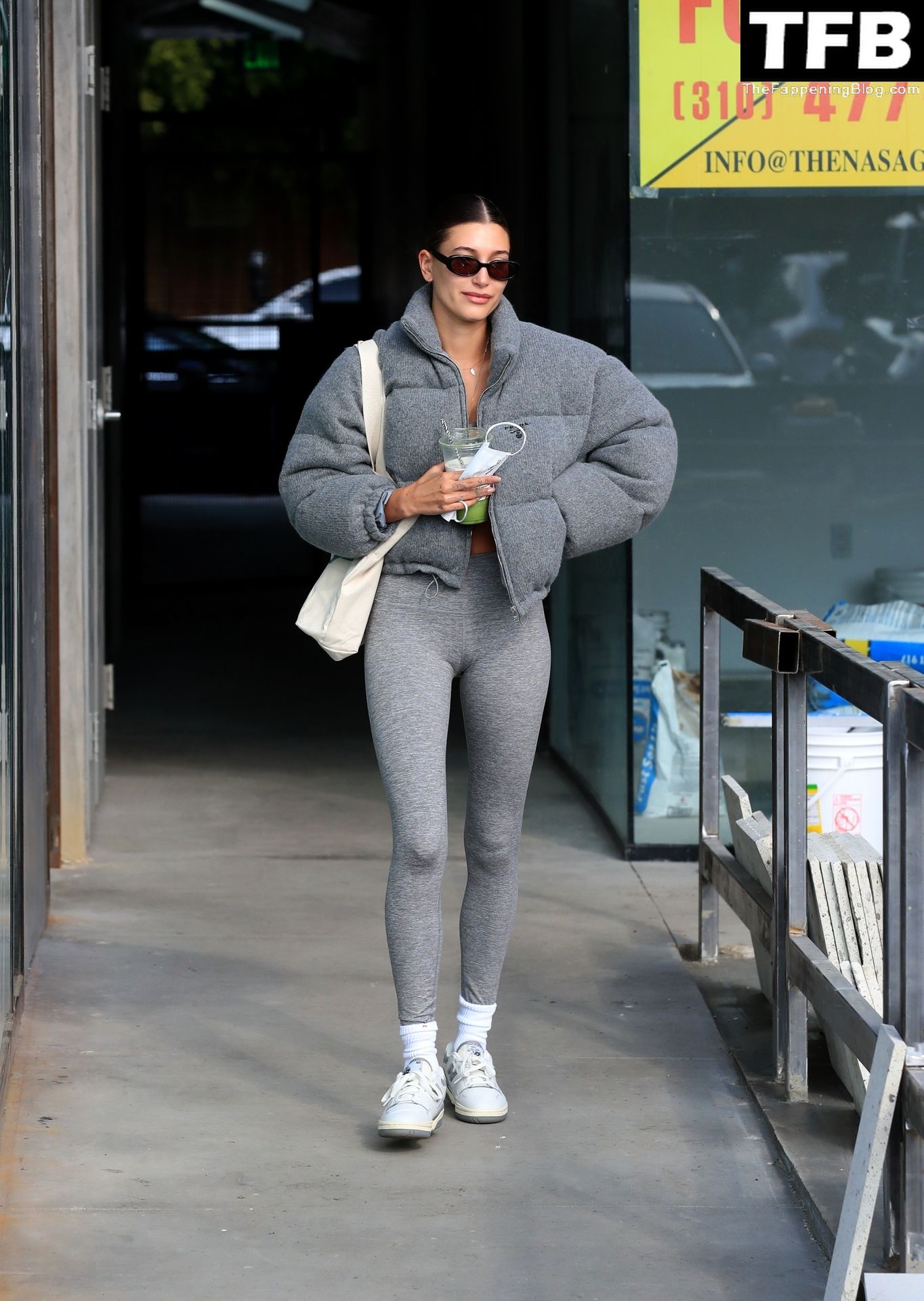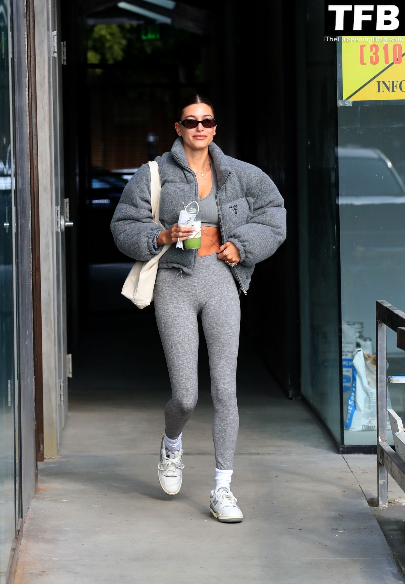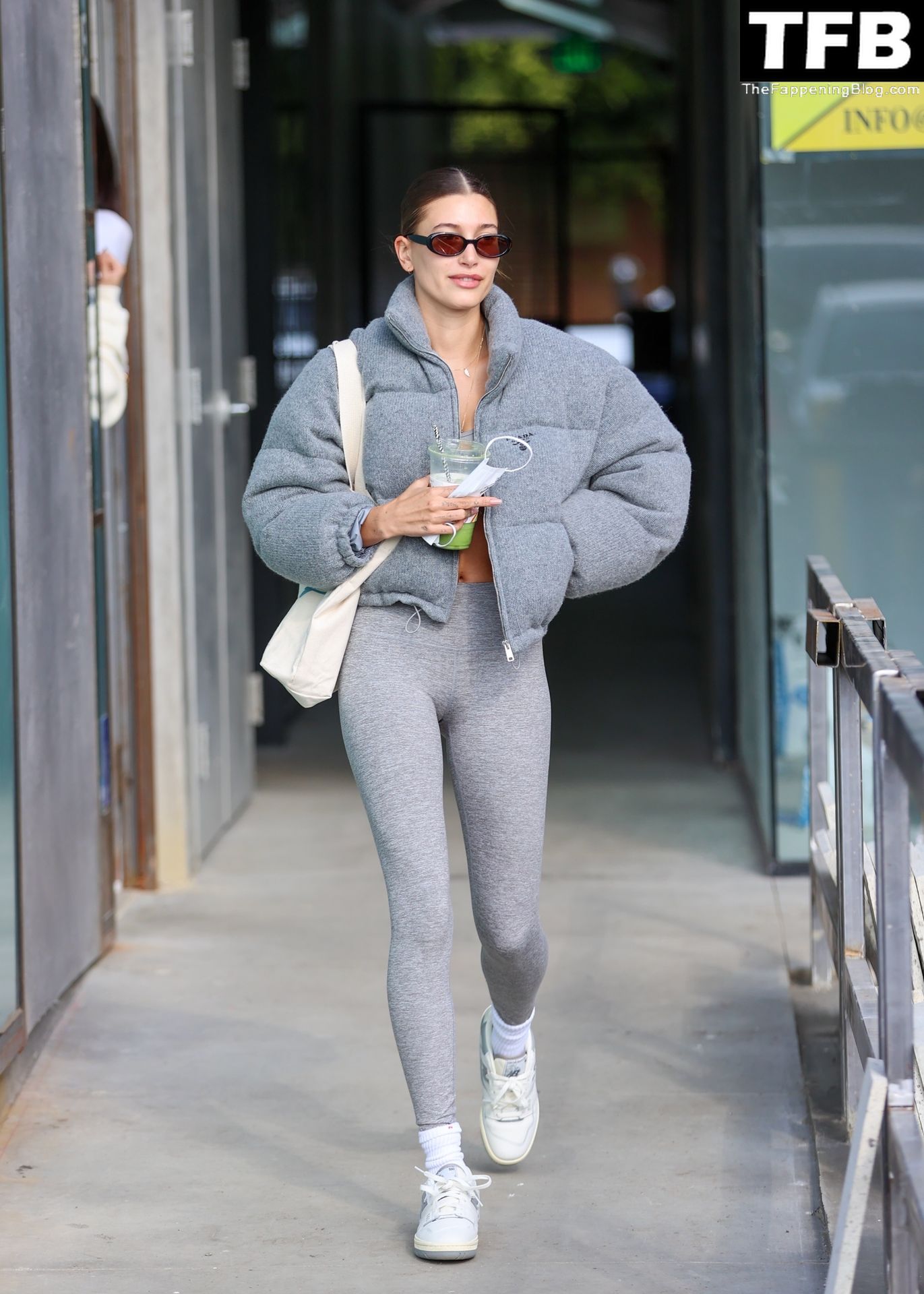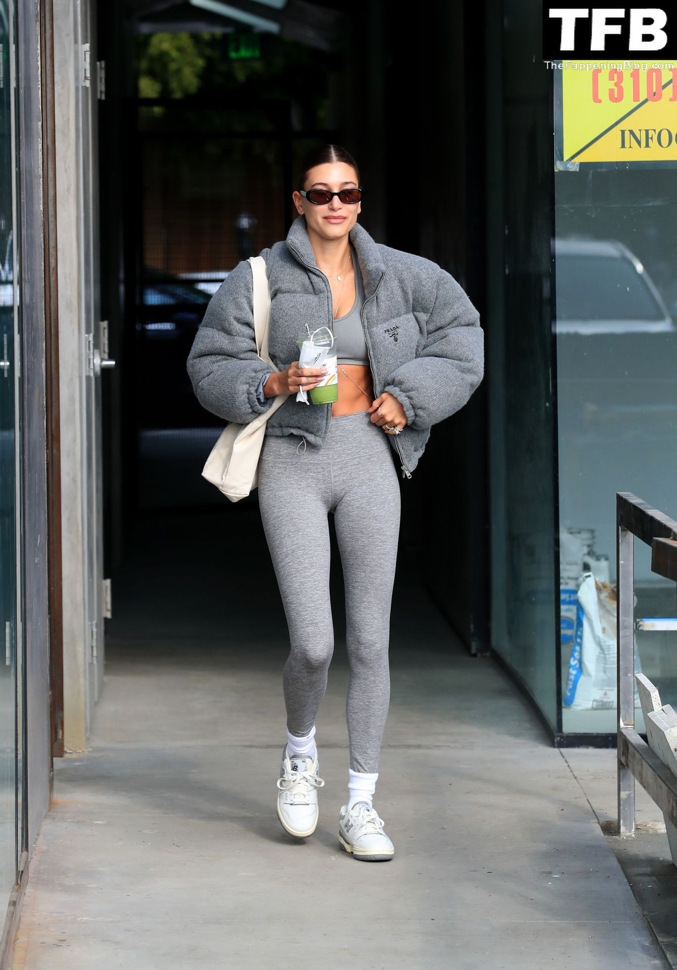 Молодая модель Хейли Бибер заканчивает занятие пилатесом в Лос-Анджелесе, 01.08.2022.